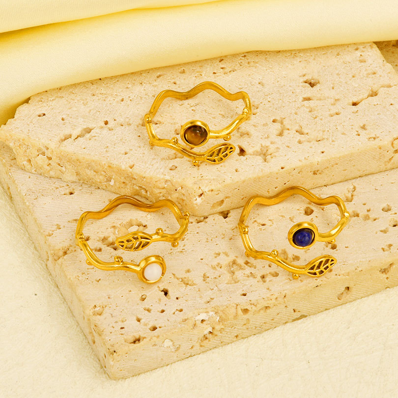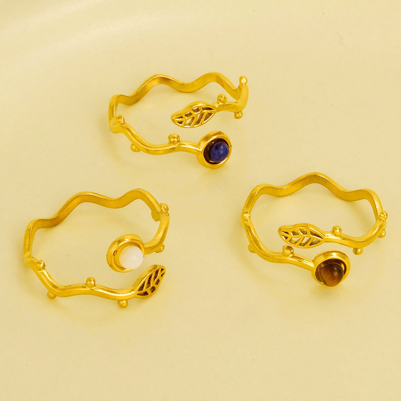 Pierre précieuse bague en acier inoxydable, Acier inoxydable 304, avec pierre gemme, Placage de couleur d'or, Réglable & pour femme, plus de couleurs à choisir, Vendu par PC