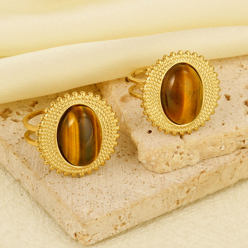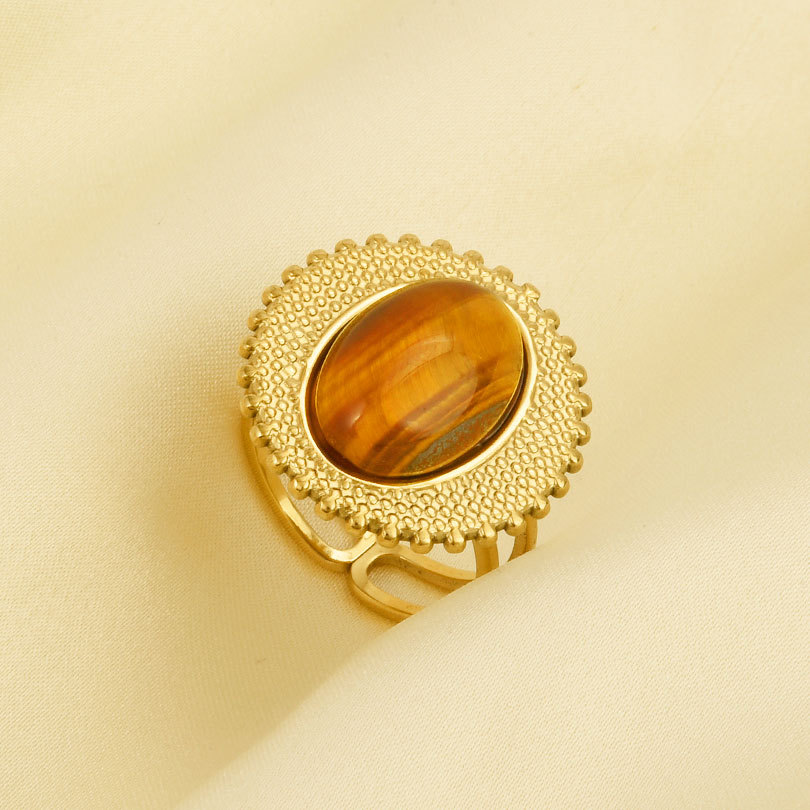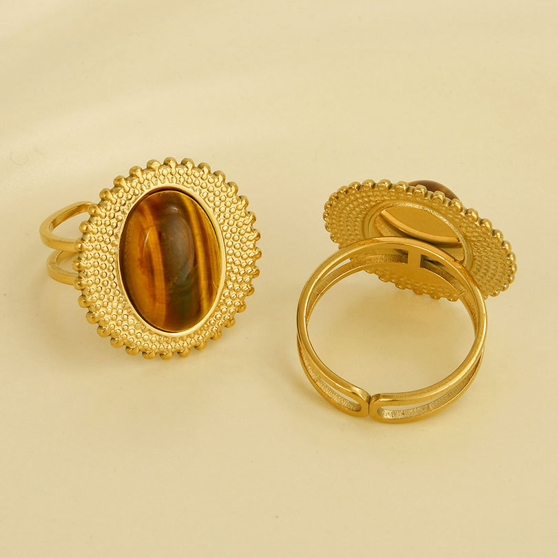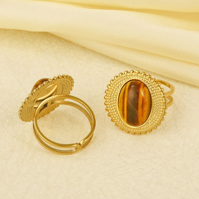Pierre précieuse bague en acier inoxydable, Acier inoxydable 304, avec pierre gemme, Placage de couleur d'or, Réglable & pour femme, Vendu par PC
