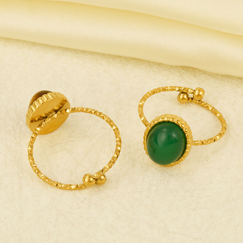 Pierre précieuse bague en acier inoxydable, Acier inoxydable 304, avec pierre gemme, Placage de couleur d'or, Réglable & pour femme, plus de couleurs à choisir, Vendu par PC