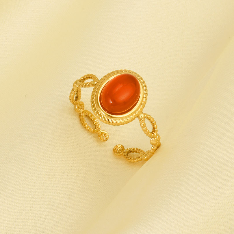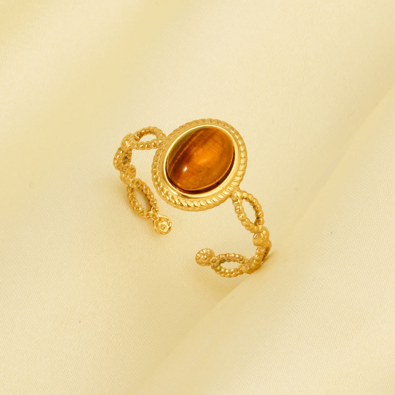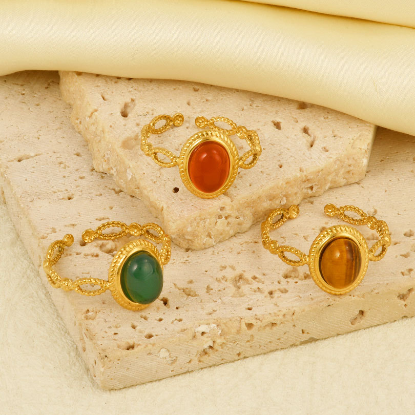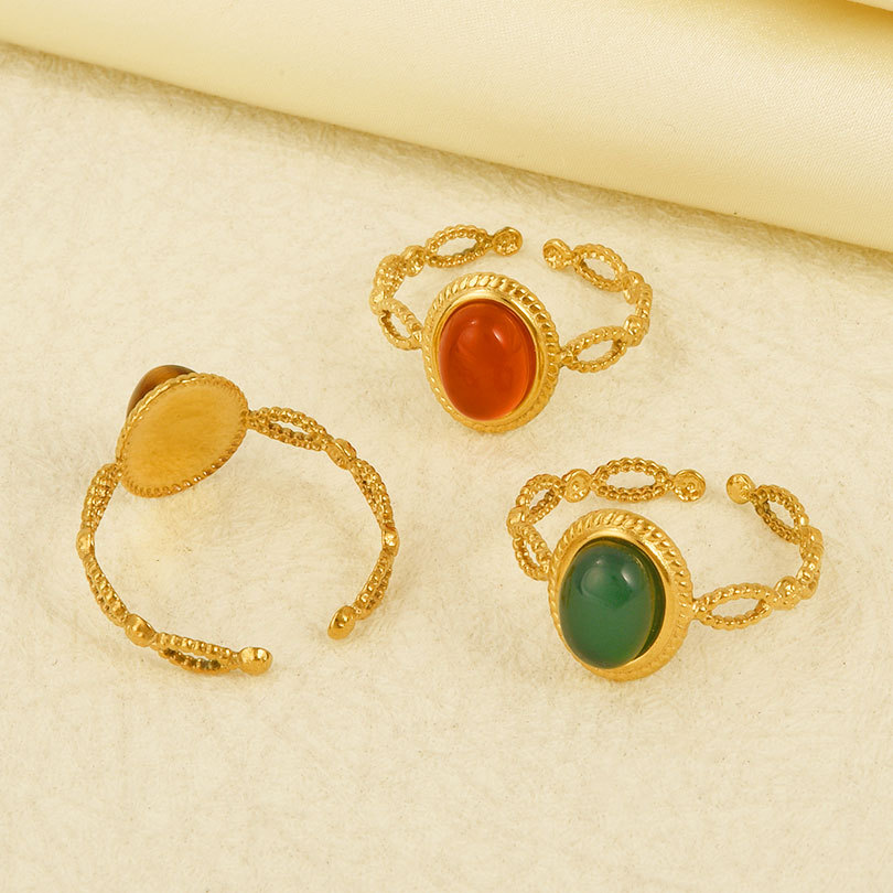 Pierre précieuse bague en acier inoxydable, Acier inoxydable 304, avec pierre gemme, Placage de couleur d'or, Réglable & pour femme, plus de couleurs à choisir, Vendu par PC