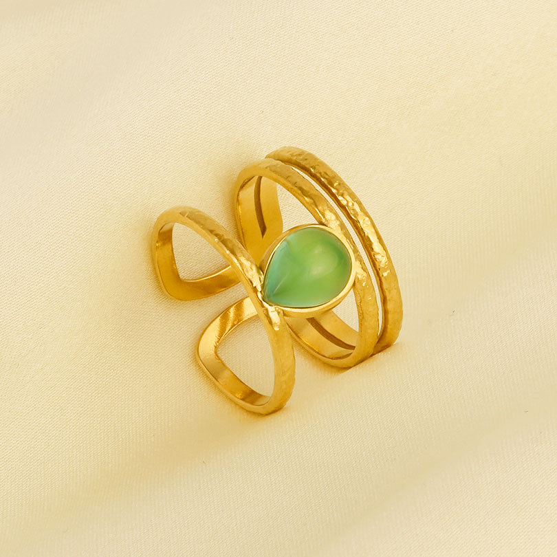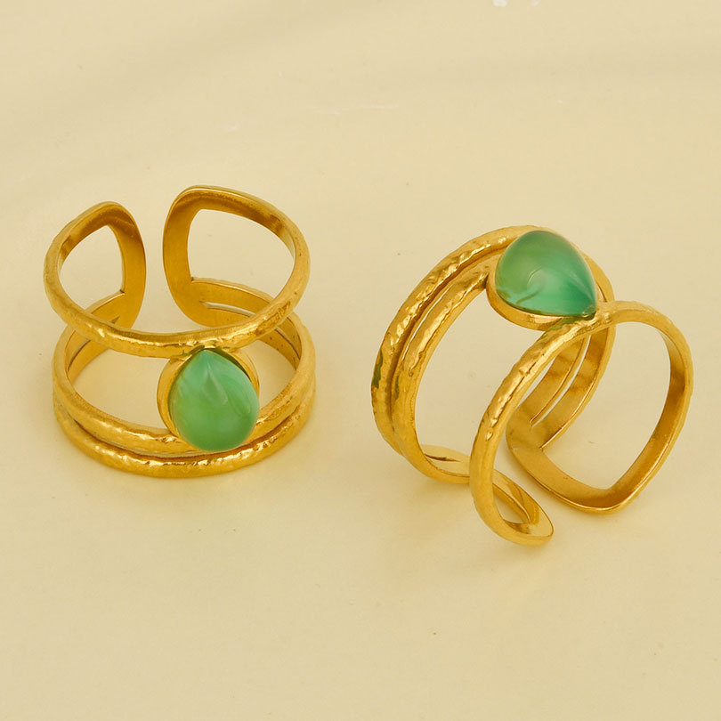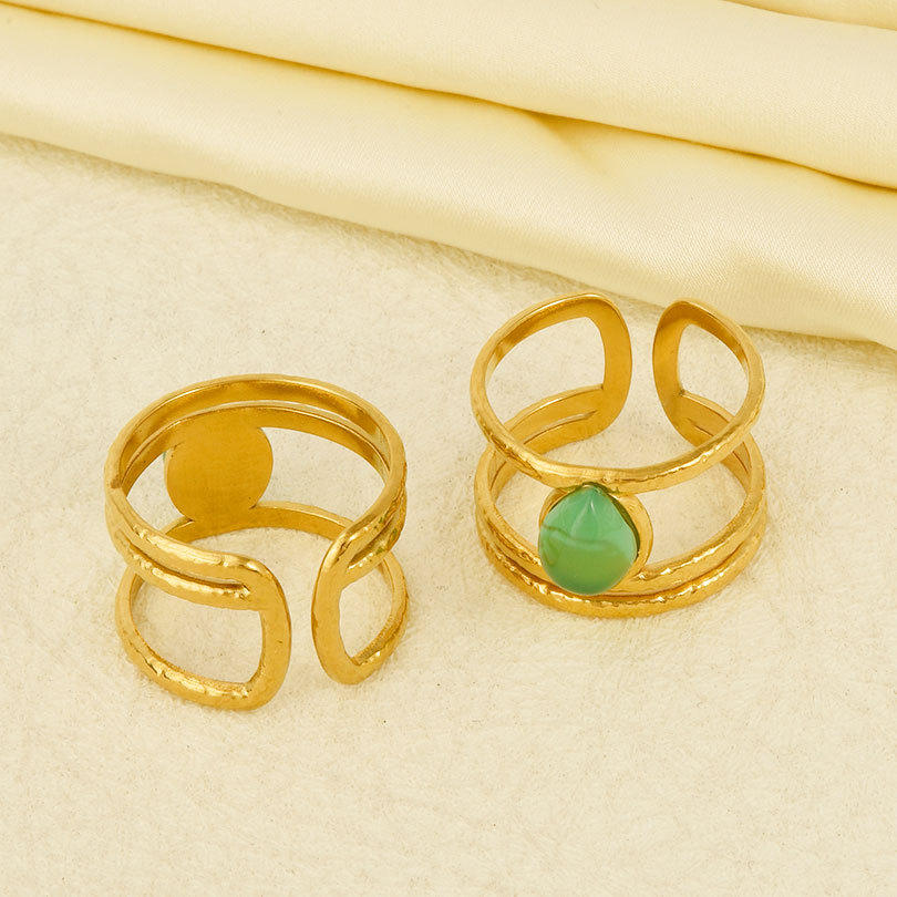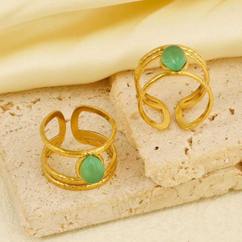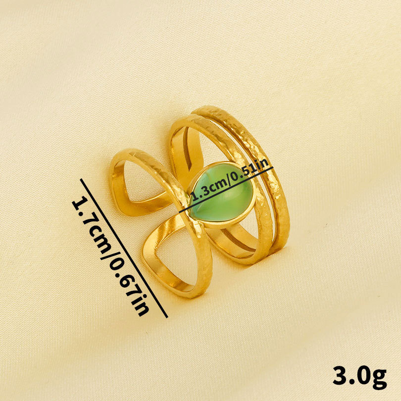 Pierre précieuse bague en acier inoxydable, Acier inoxydable 304, avec pierre gemme, Placage de couleur d'or, Réglable & pour femme, Vendu par PC