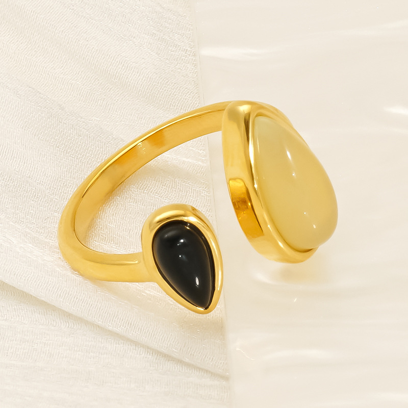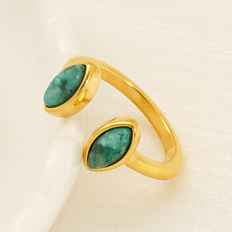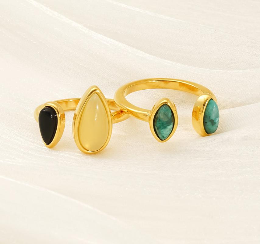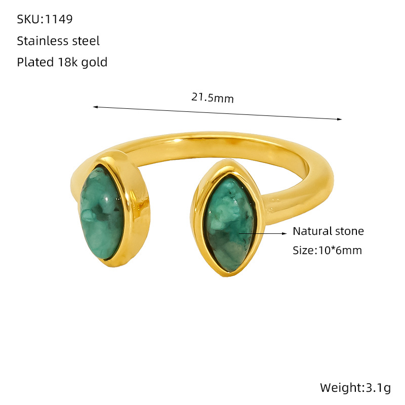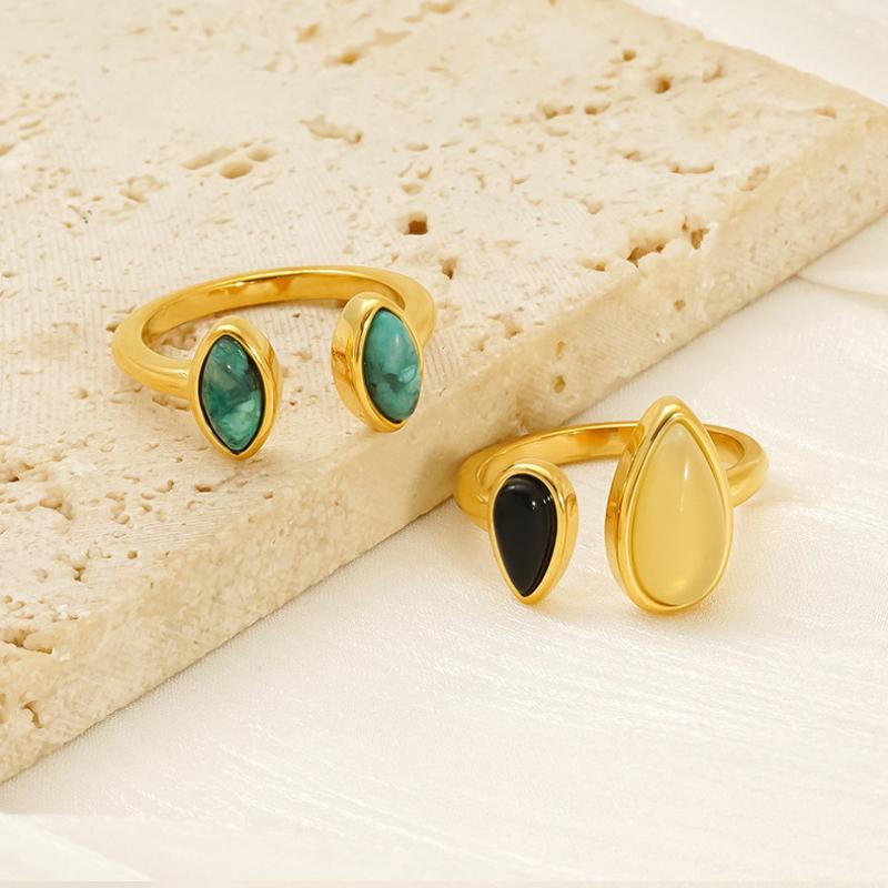 Pierre précieuse bague en acier inoxydable, Acier inoxydable 304, avec Pierre naturelle, Plaqué or 18K, bijoux de mode & styles différents pour le choix & pour femme, Vendu par PC