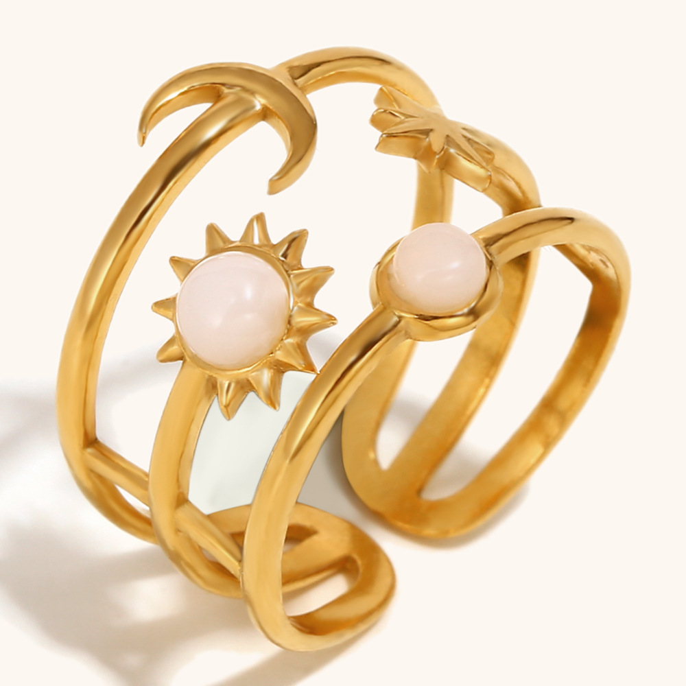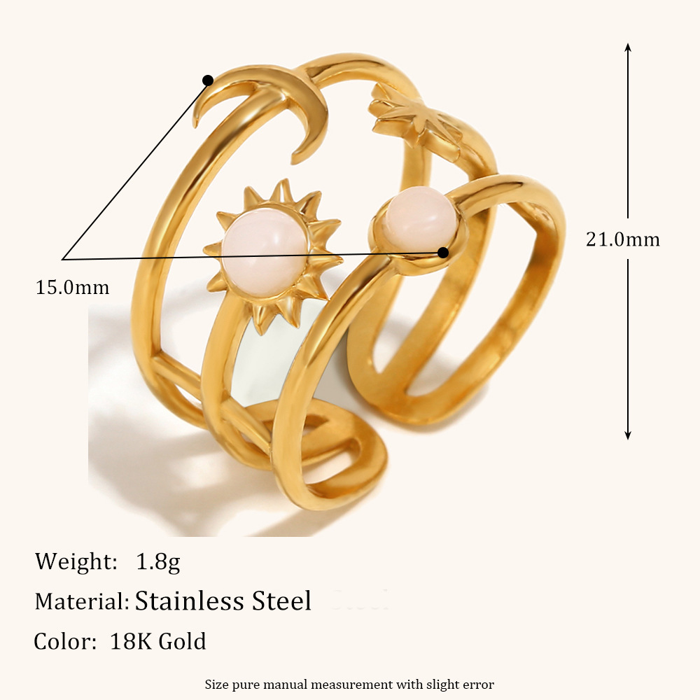 Pierre précieuse bague en acier inoxydable, Acier inoxydable 304, avec pierre gemme, Placage de couleur d'or, pour femme, Vendu par paire