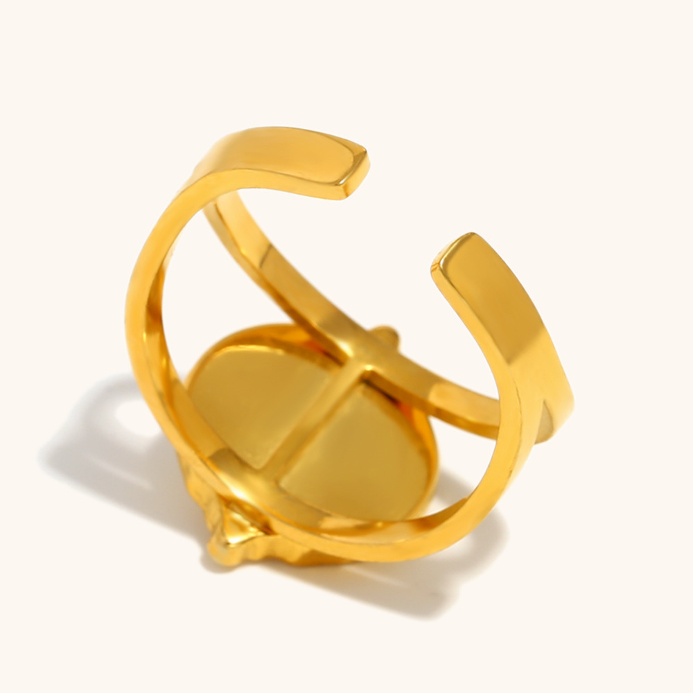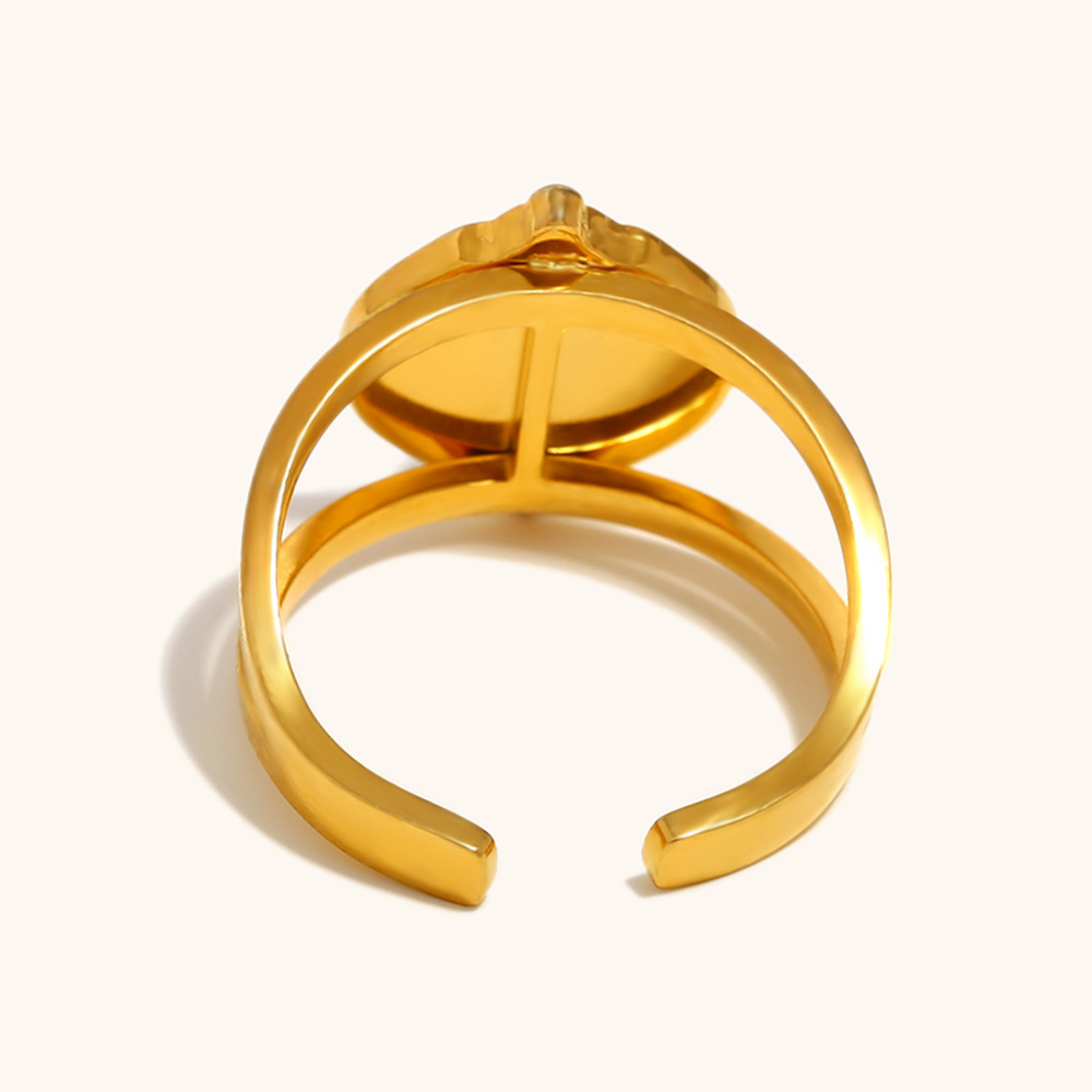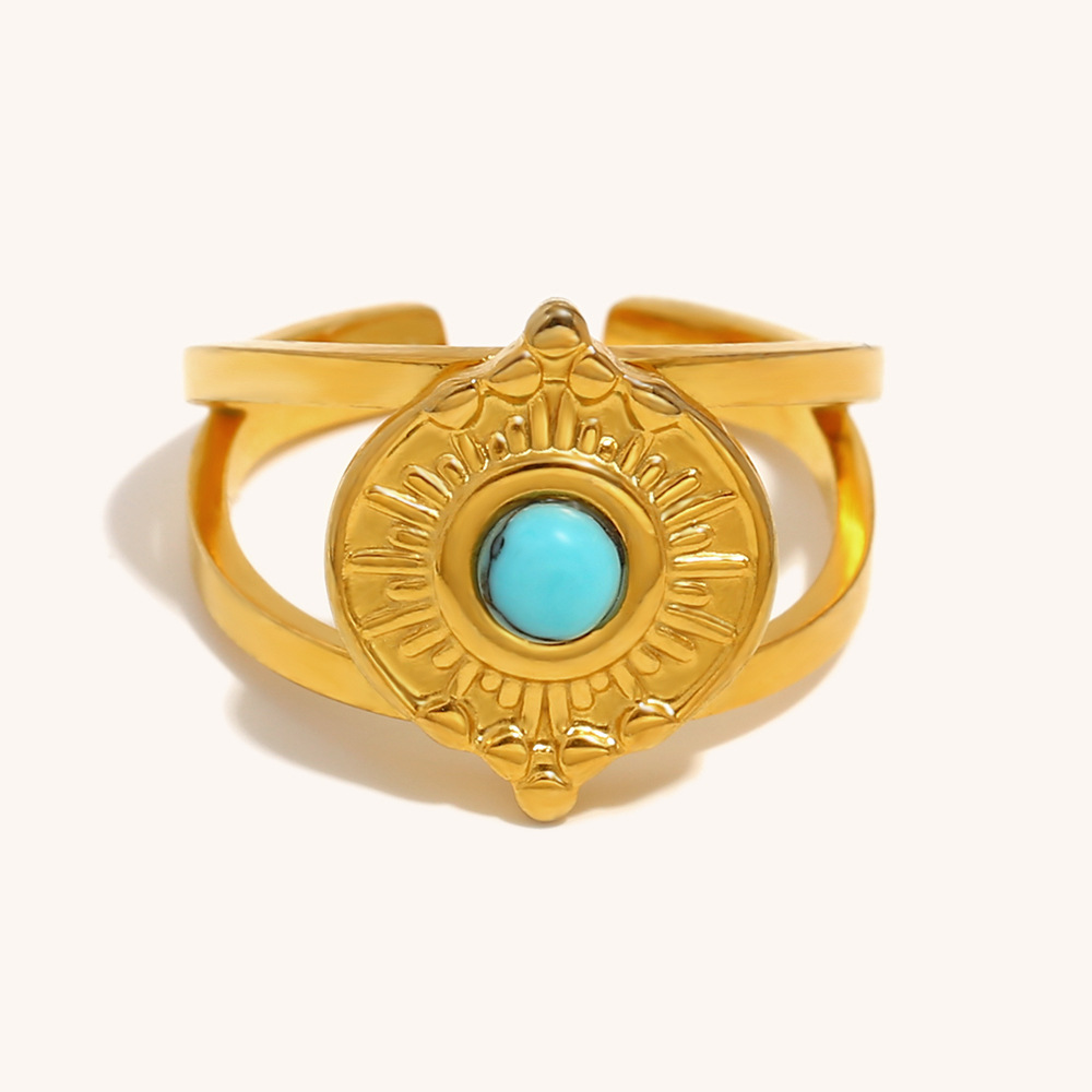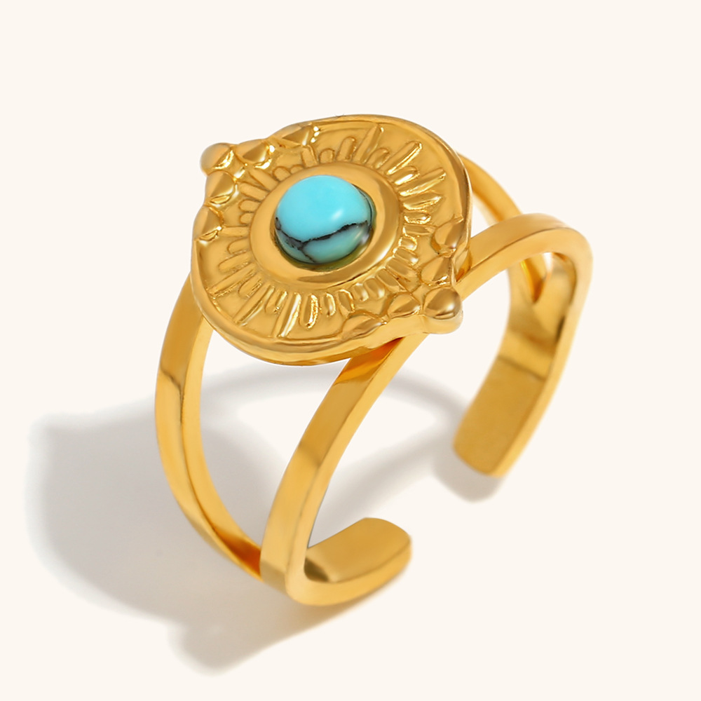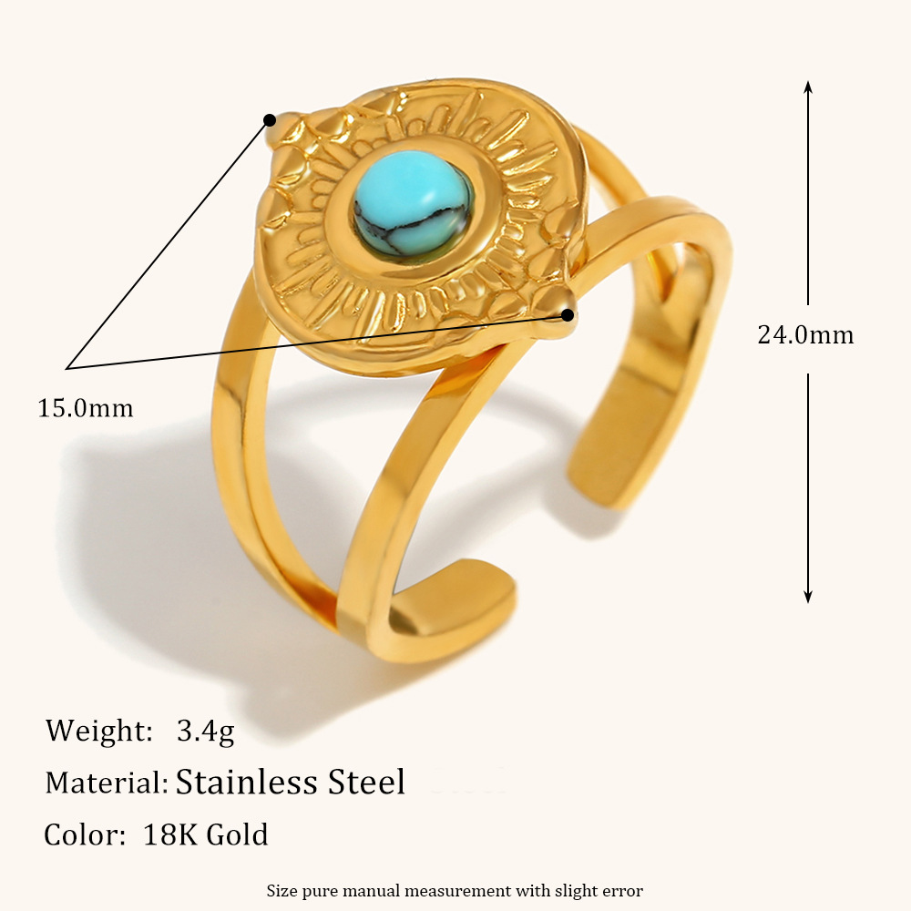Pierre précieuse bague en acier inoxydable, Acier inoxydable 304, avec turquoise, Placage de couleur d'or, pour femme, Vendu par PC