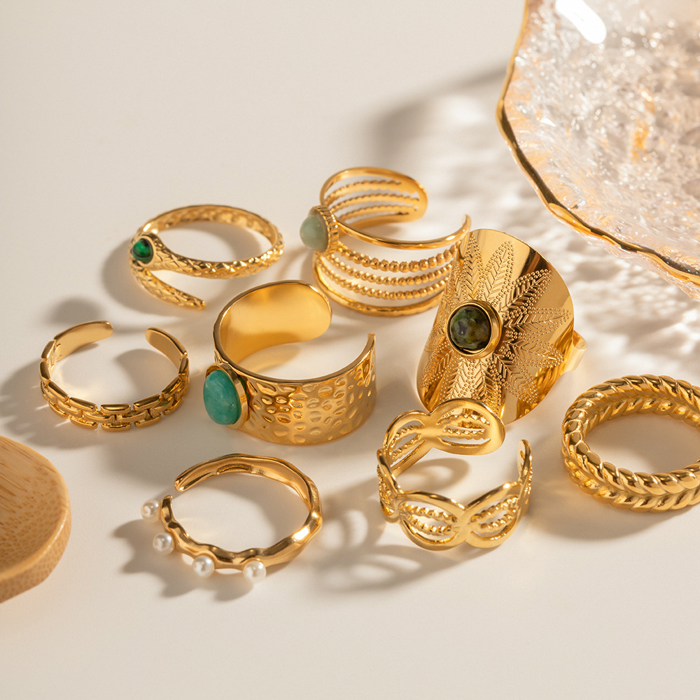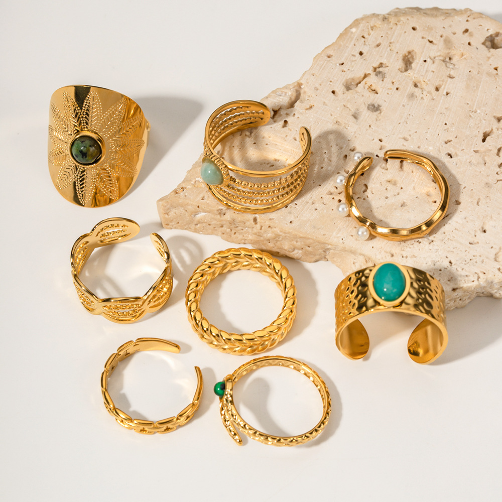 Pierre précieuse bague en acier inoxydable, Acier inoxydable 304, avec Pierre naturelle, Plaqué or 18K, bijoux de mode & styles différents pour le choix & pour femme, Vendu par PC