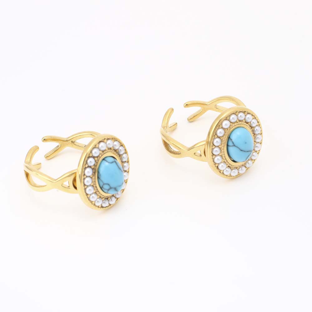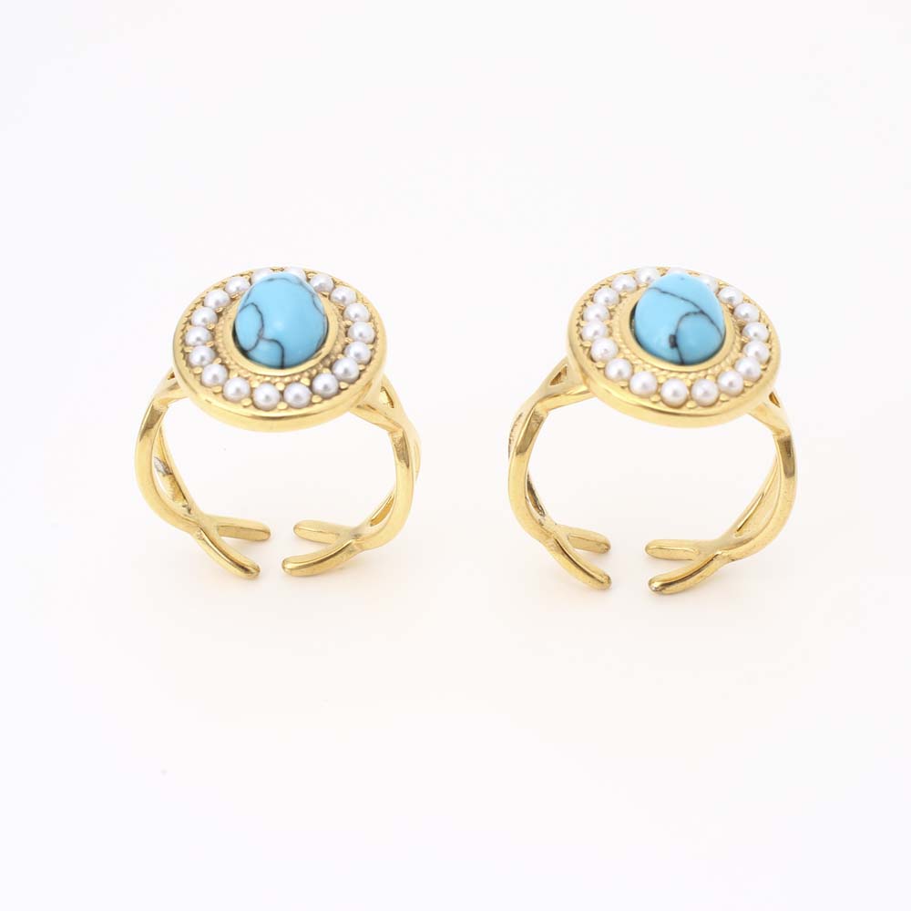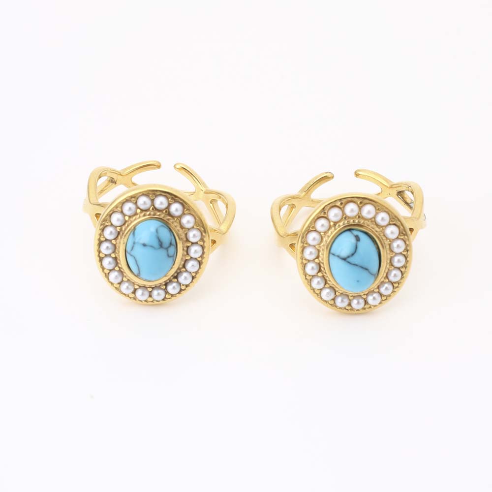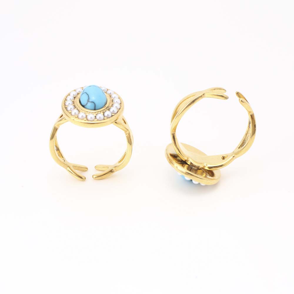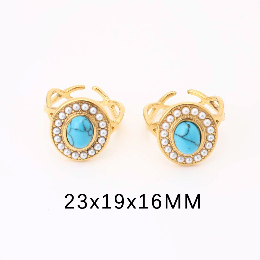 Pierre précieuse bague en acier inoxydable, Acier inoxydable 304, avec turquoise & perle de plastique, bijoux de mode & pour femme, doré, Diamètre intérieur:Environ 17mm, Vendu par PC