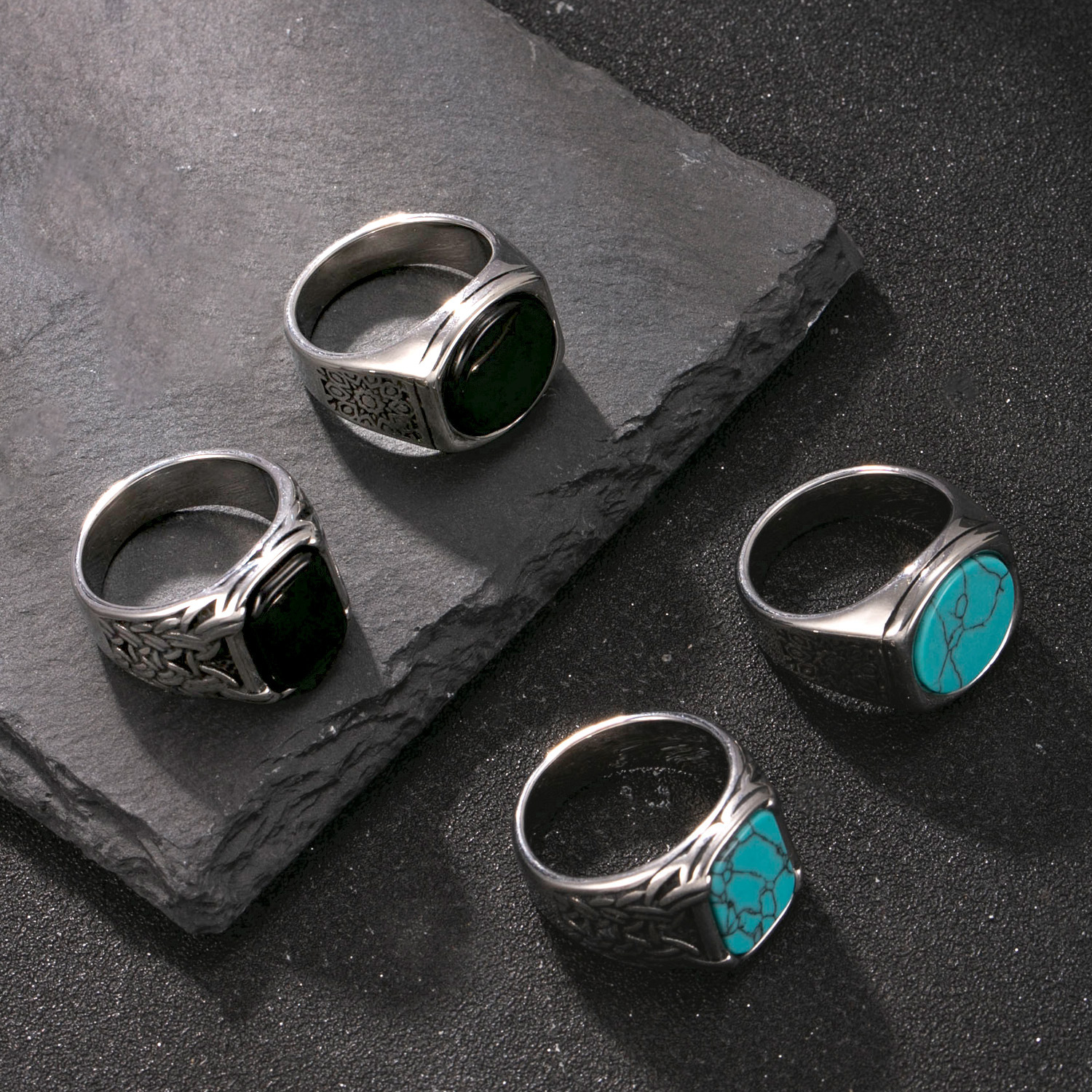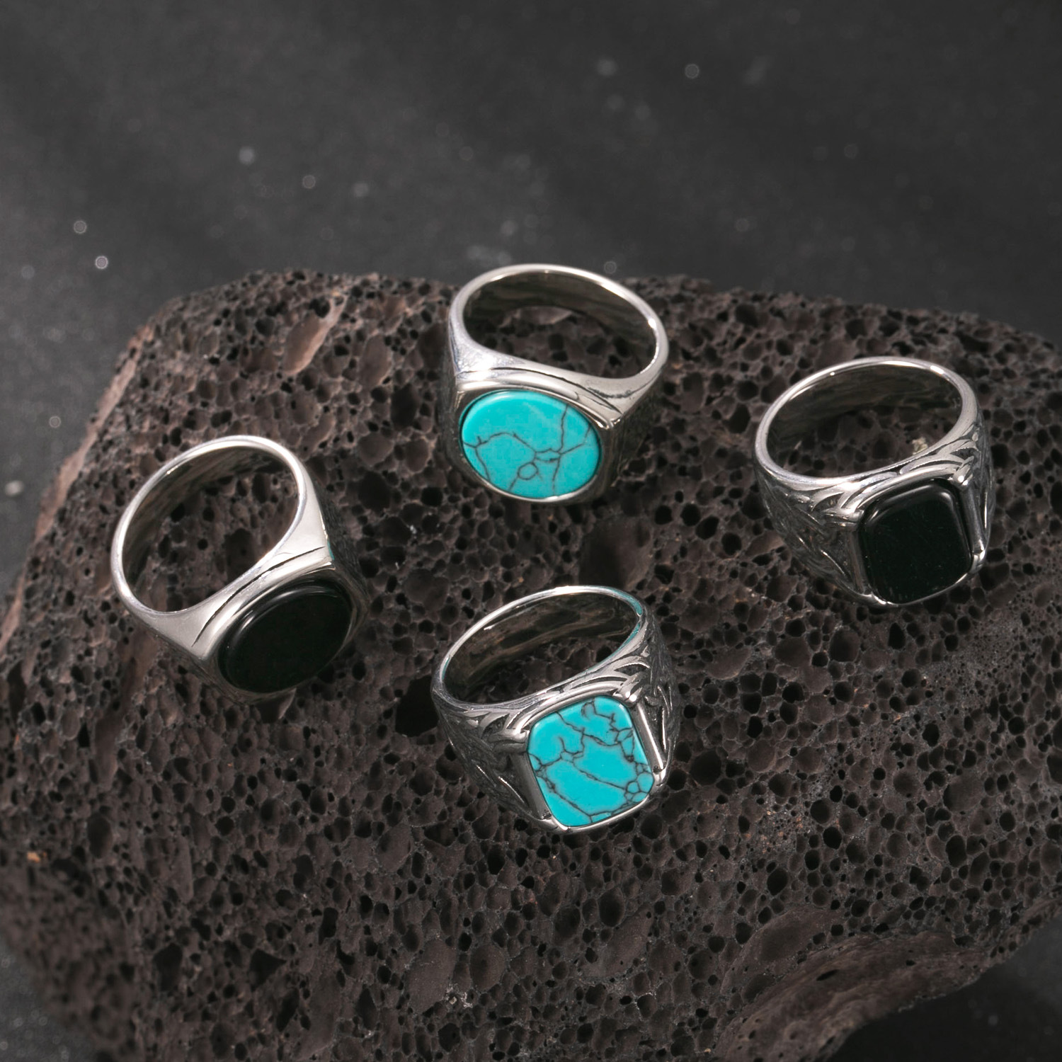 Pierre précieuse bague en acier inoxydable, Acier inoxydable 304, avec turquoise, Placage, différents matériaux pour le choix & normes différentes pour le choix & styles différents pour le choix & pour homme, Vendu par PC