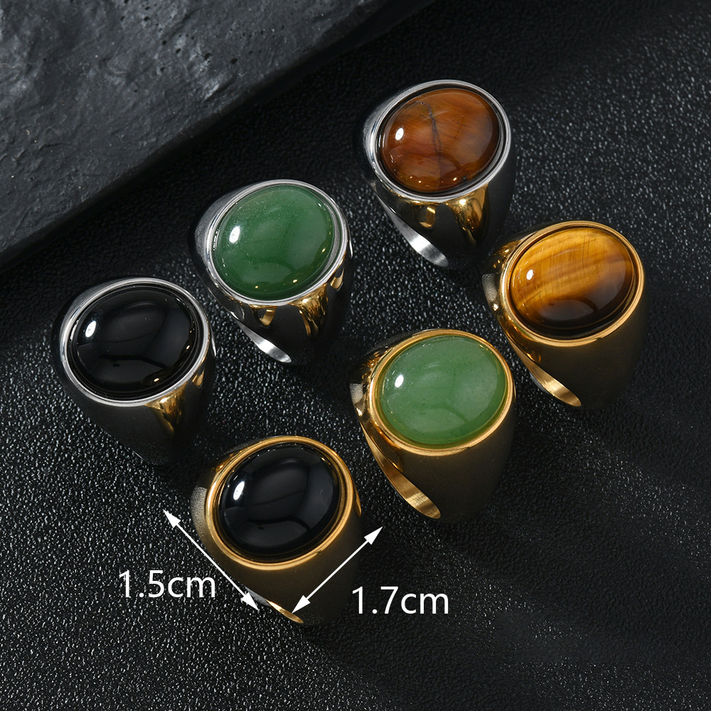 Pierre précieuse bague en acier inoxydable, Acier inoxydable 304, avec Pierre naturelle, Placage, différents matériaux pour le choix & unisexe & normes différentes pour le choix, plus de couleurs à choisir, Vendu par PC