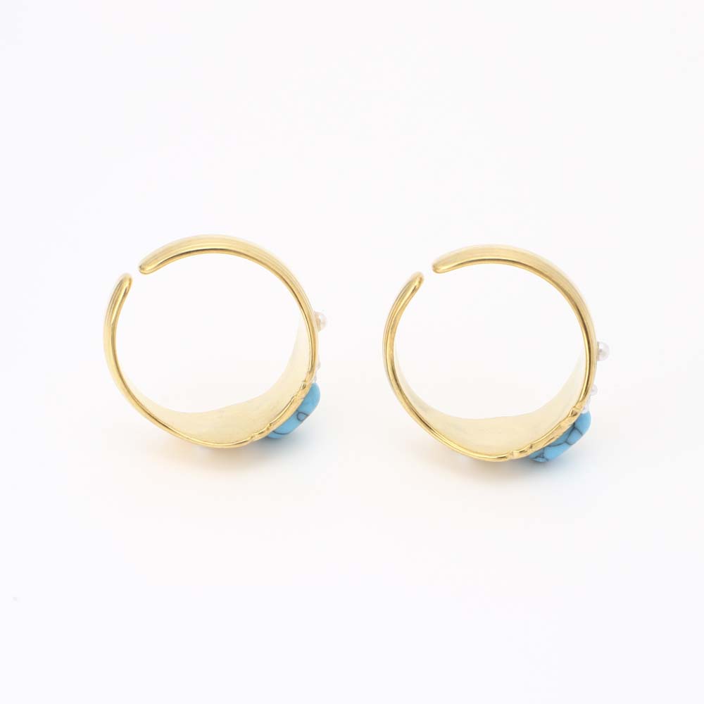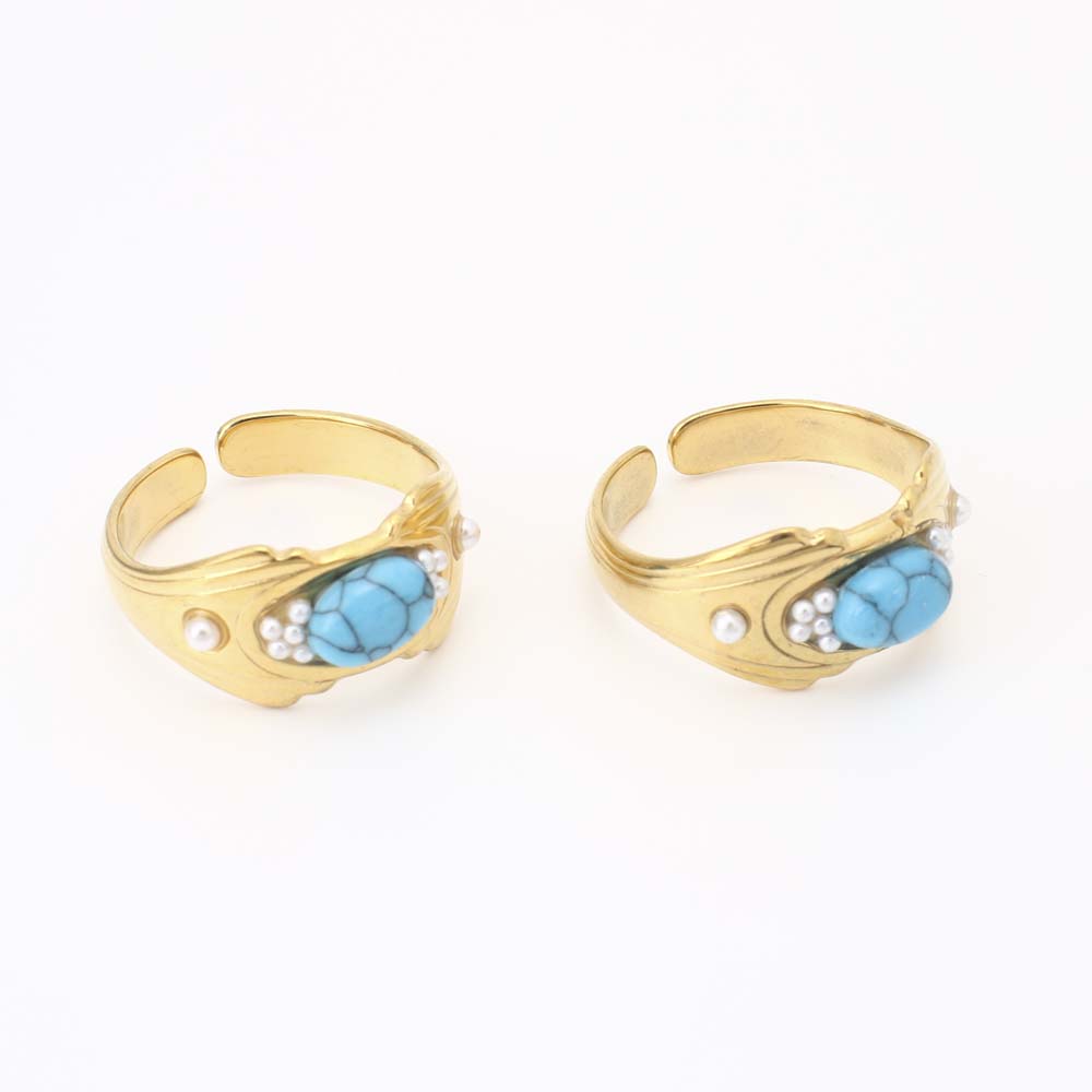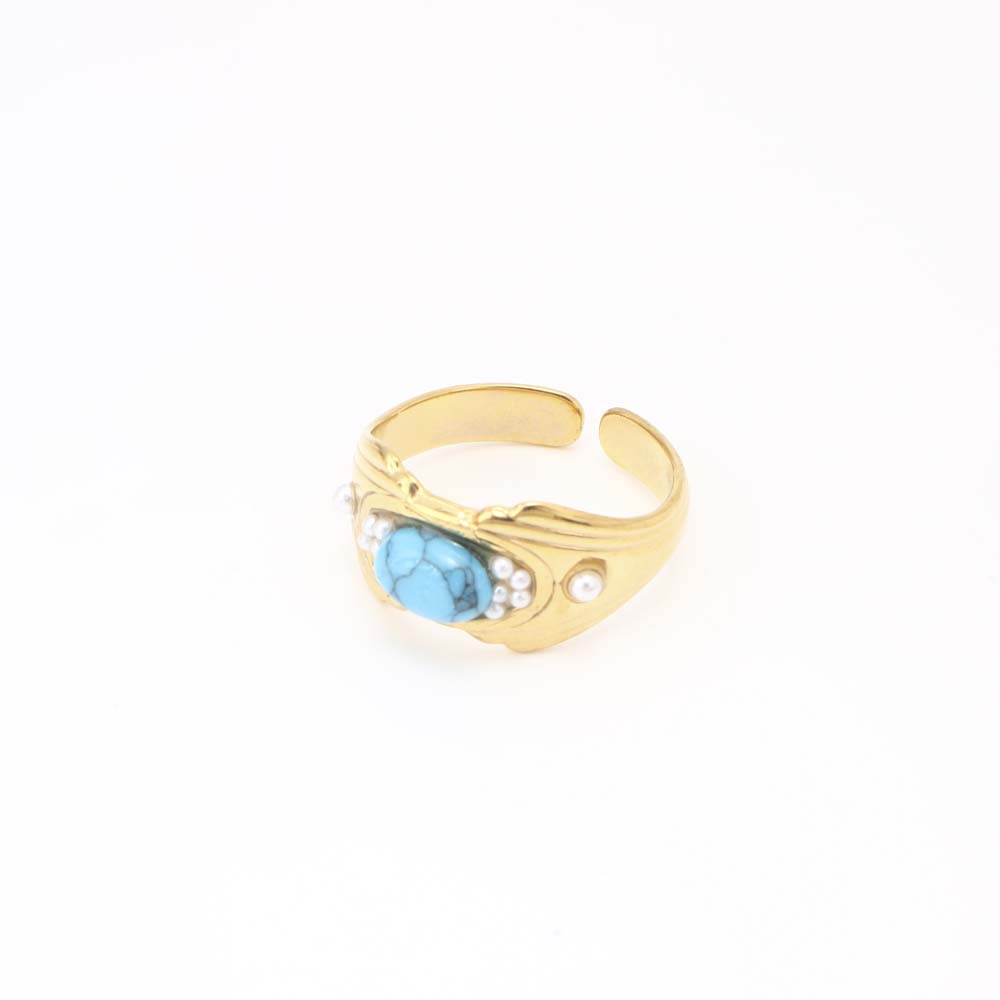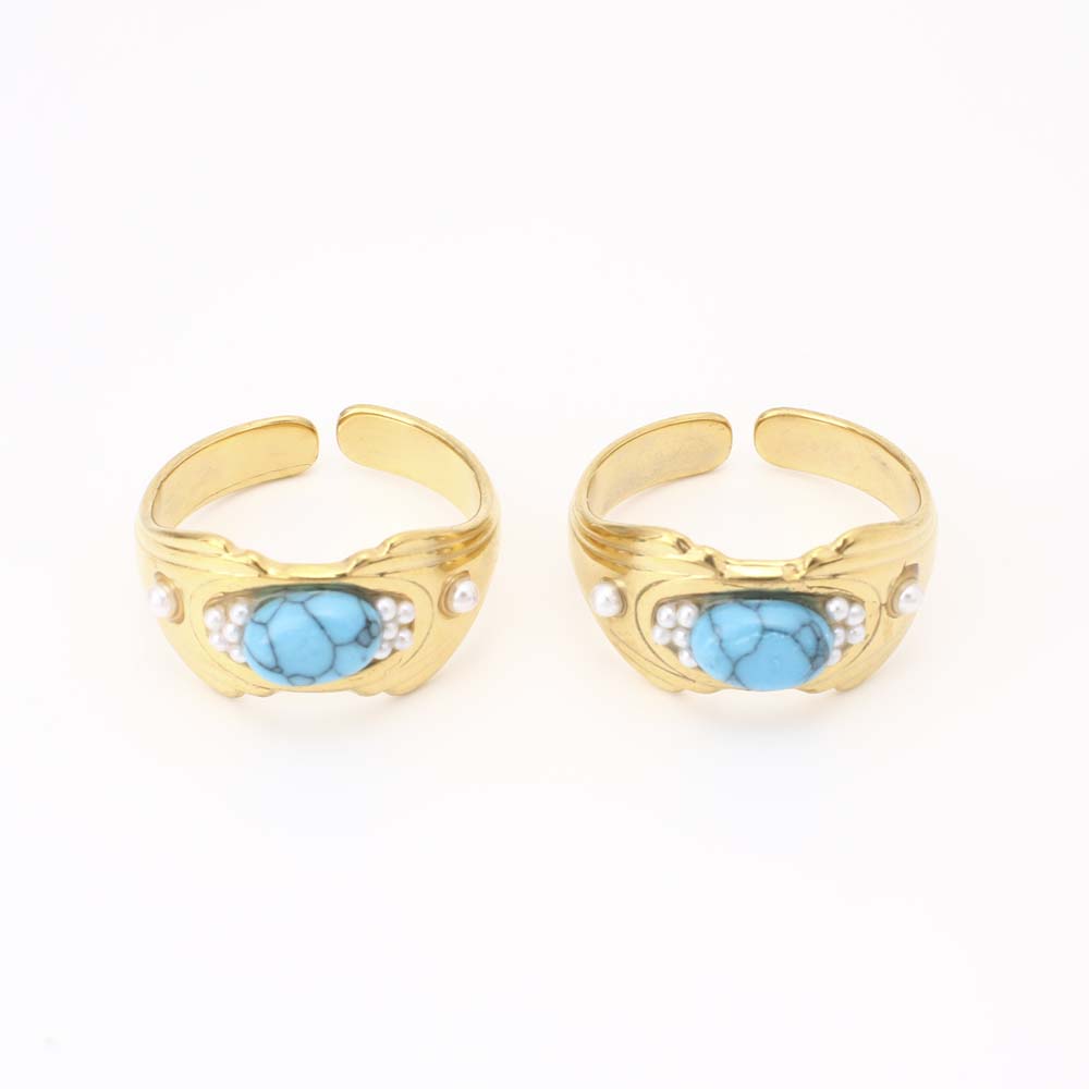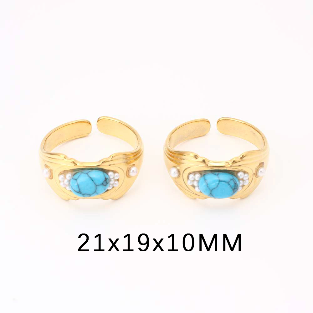 Pierre précieuse bague en acier inoxydable, Acier inoxydable 304, avec turquoise & perle de plastique, bijoux de mode & pour femme, doré, Diamètre intérieur:Environ 17mm, Vendu par PC