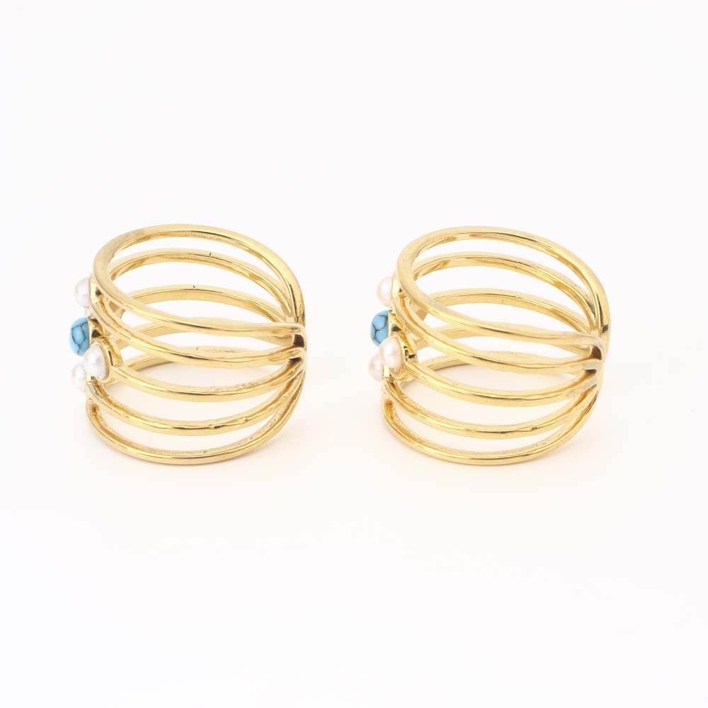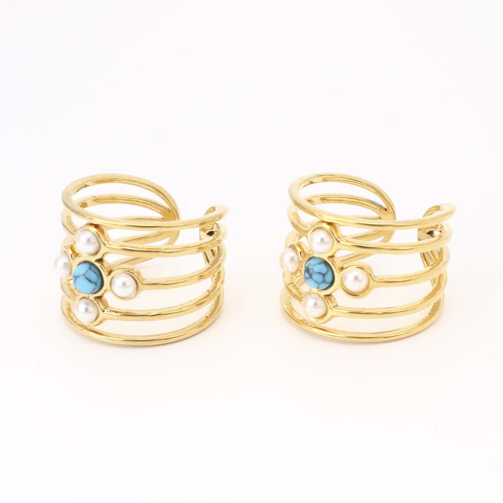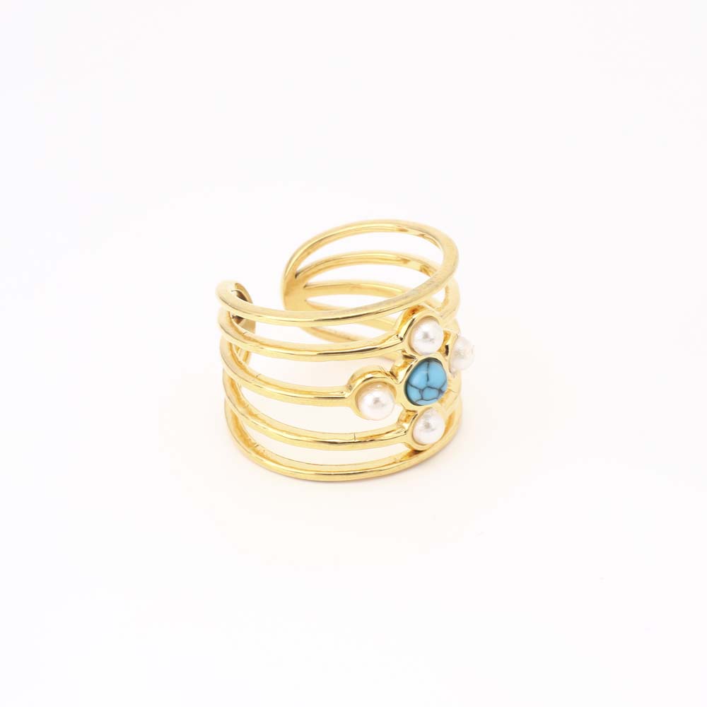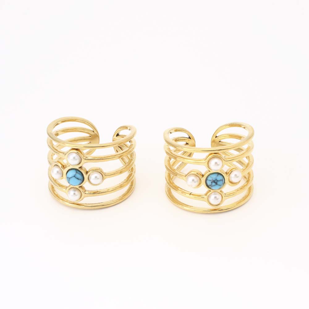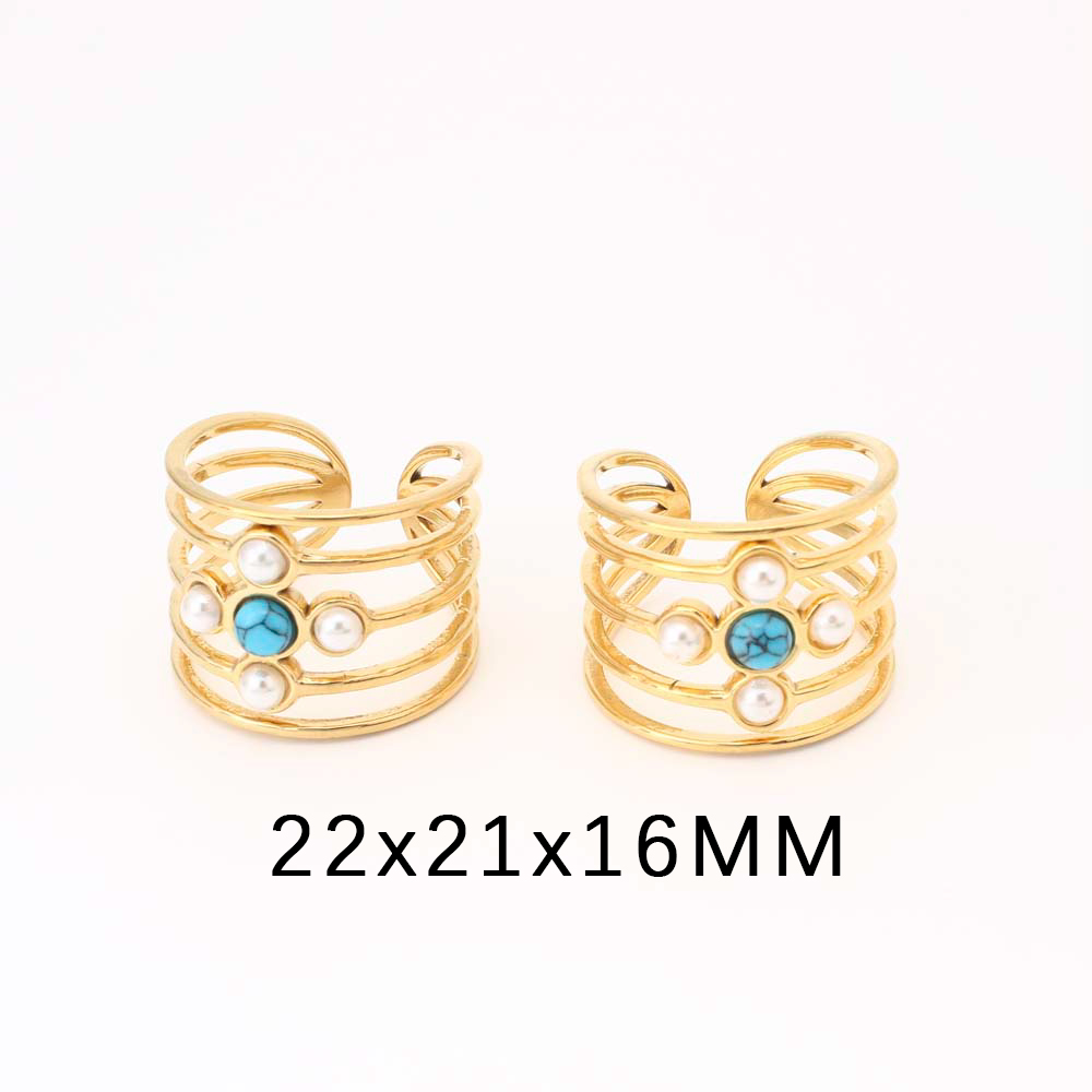 Pierre précieuse bague en acier inoxydable, Acier inoxydable 304, avec turquoise & perle de plastique, bijoux de mode & pour femme, doré, Diamètre intérieur:Environ 19mm, Vendu par PC