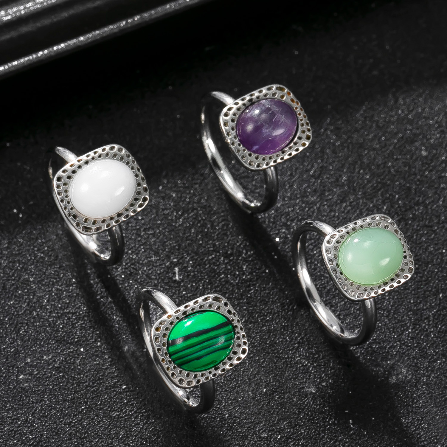 Pierre précieuse bague en acier inoxydable, Acier inoxydable 304, avec Pierre naturelle, Placage, bijoux de mode & unisexe & normes différentes pour le choix, plus de couleurs à choisir, Vendu par PC