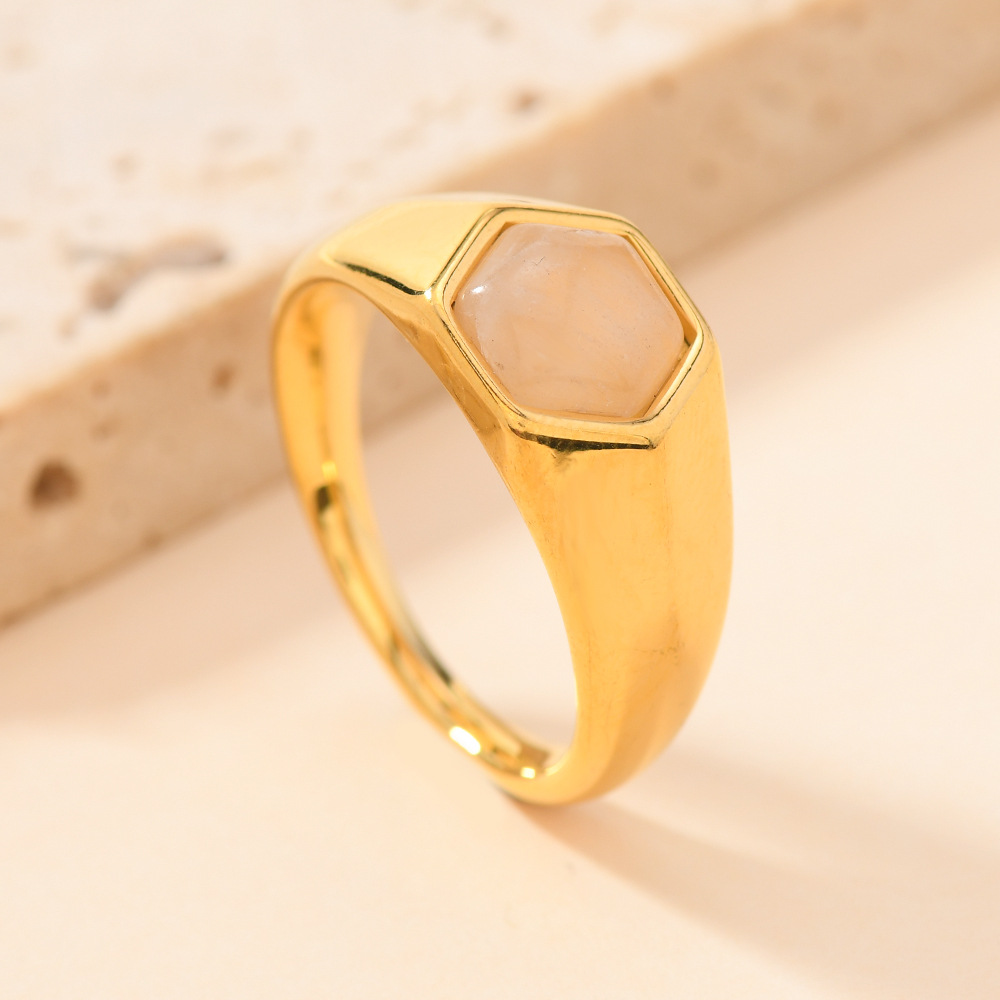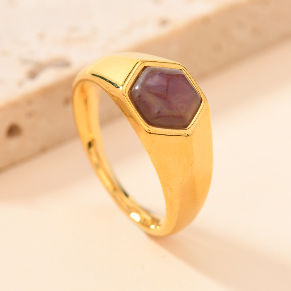Pierre précieuse bague en acier inoxydable, Acier inoxydable 304, avec Pierre naturelle, Placage de couleur d'or, différents matériaux pour le choix & unisexe & normes différentes pour le choix, plus de couleurs à choisir, Vendu par PC