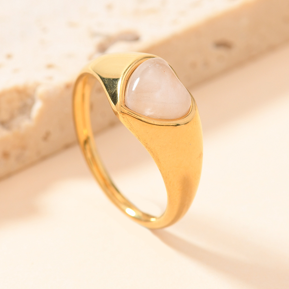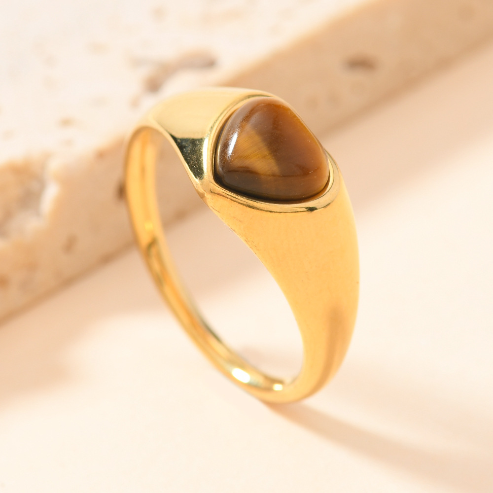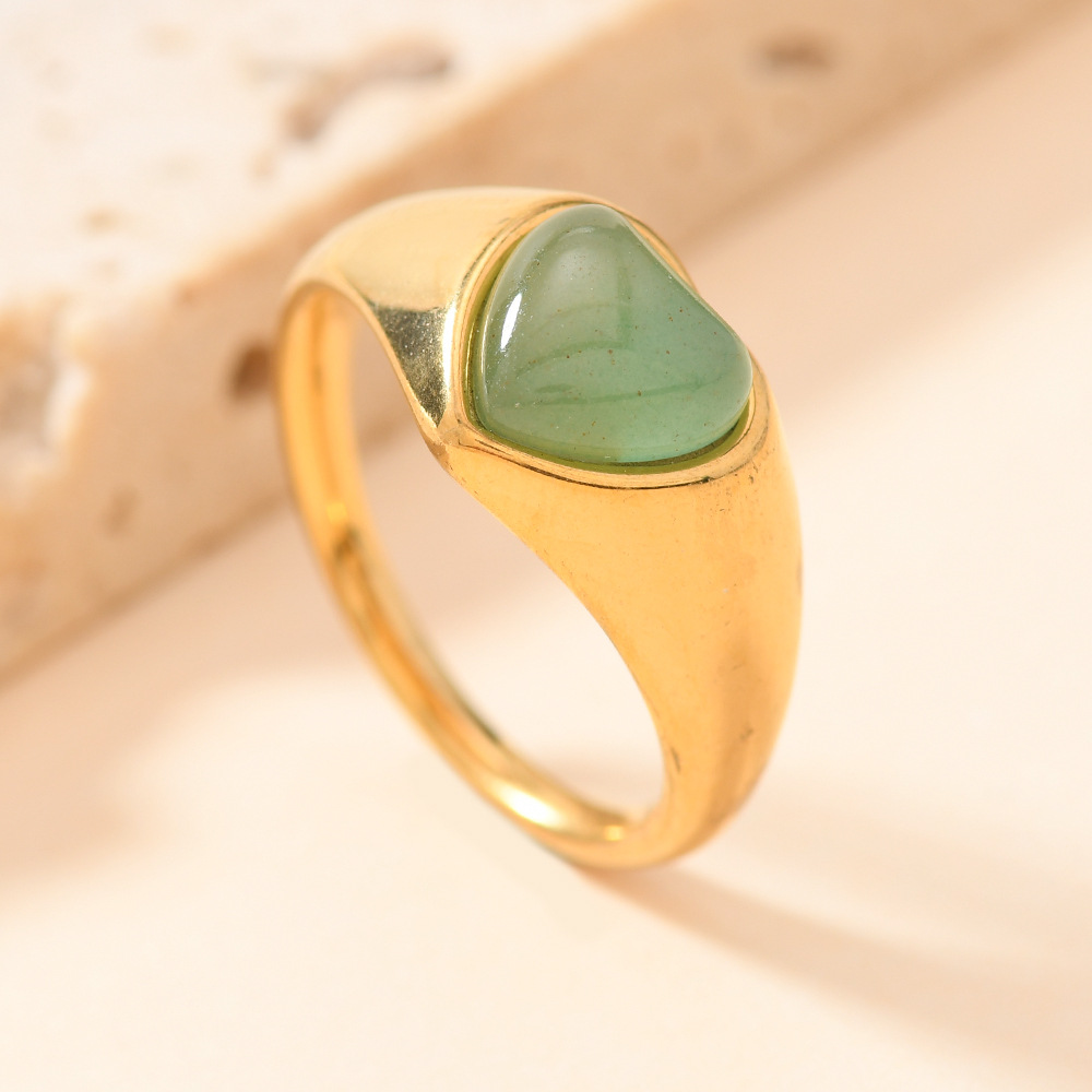 Pierre précieuse bague en acier inoxydable, Acier inoxydable 304, avec Pierre naturelle, Placage de couleur d'or, différents matériaux pour le choix & normes différentes pour le choix & pour femme, plus de couleurs à choisir, Vendu par PC