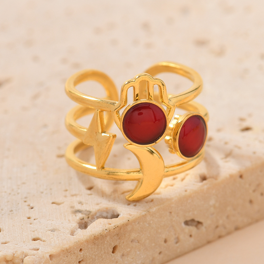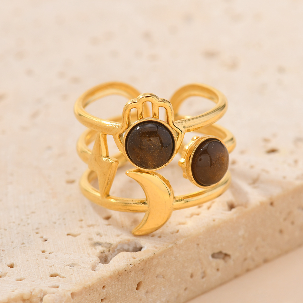 Pierre précieuse bague en acier inoxydable, Acier inoxydable 304, avec Pierre naturelle, Placage de couleur d'or, bijoux de mode & unisexe & creux, plus de couleurs à choisir, Taille:8, Vendu par PC