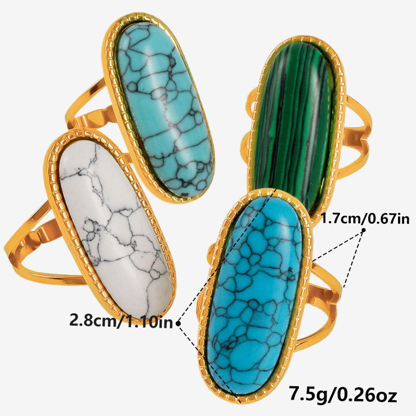 Pierre précieuse bague en acier inoxydable, Acier inoxydable 304, avec Synthétique-Malachite & turquoise synthétique, Placage, différents matériaux pour le choix & unisexe & creux, plus de couleurs à choisir, Vendu par PC