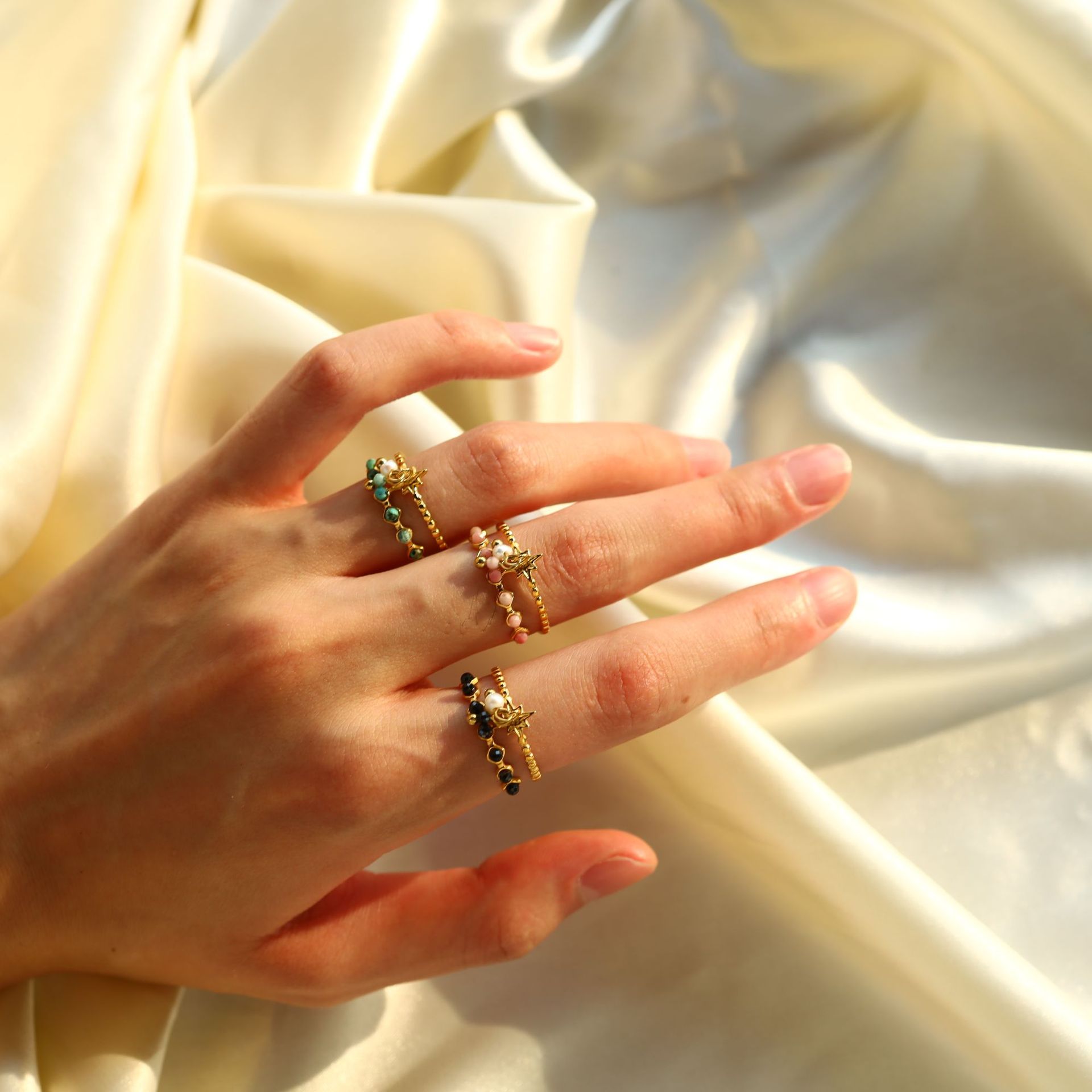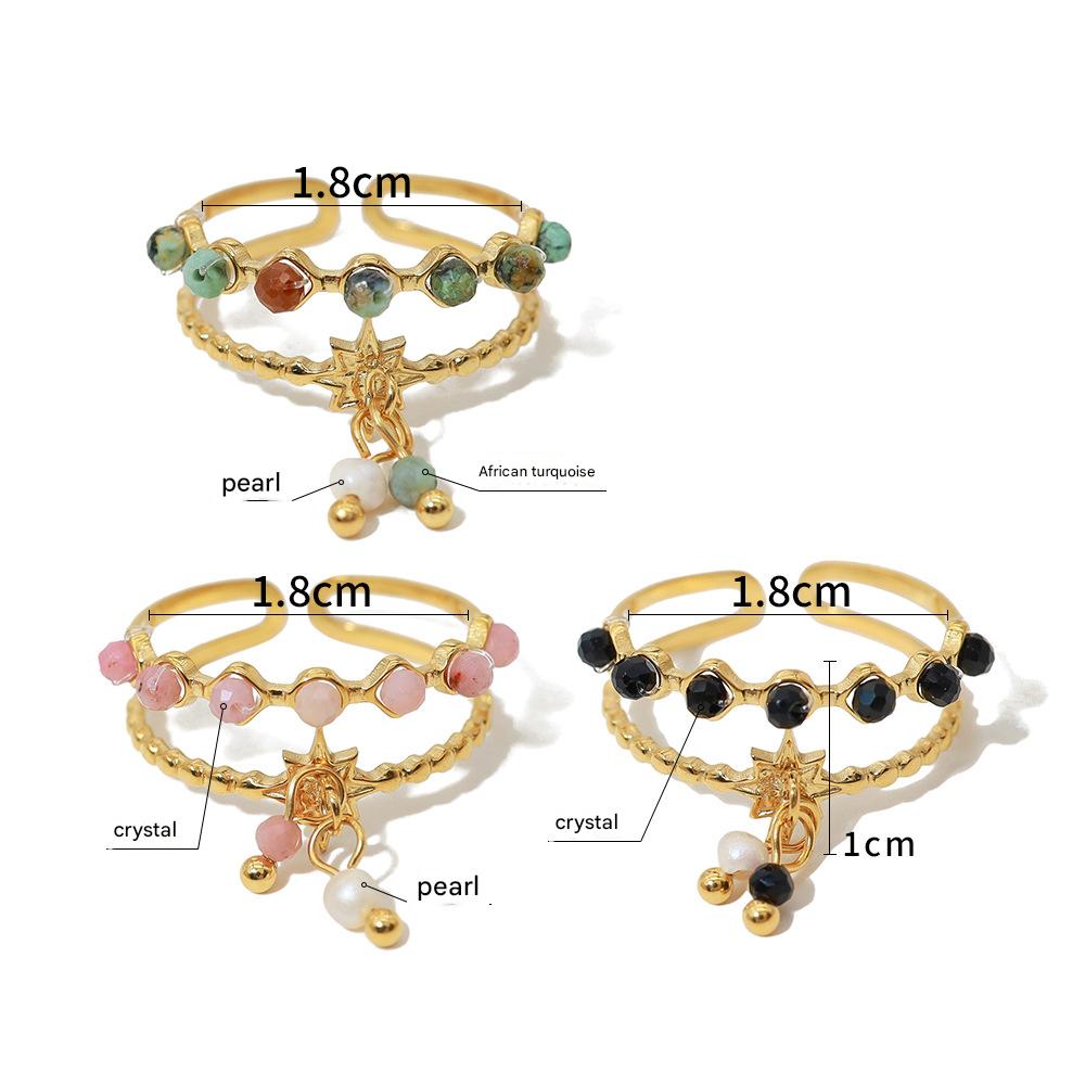 Pierre précieuse bague en acier inoxydable, Acier titane, avec Pierre naturelle & perle de plastique, Plaqué or 18K, différents matériaux pour le choix & pour femme & creux, Vendu par PC