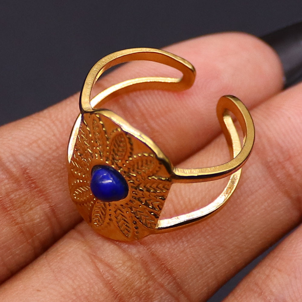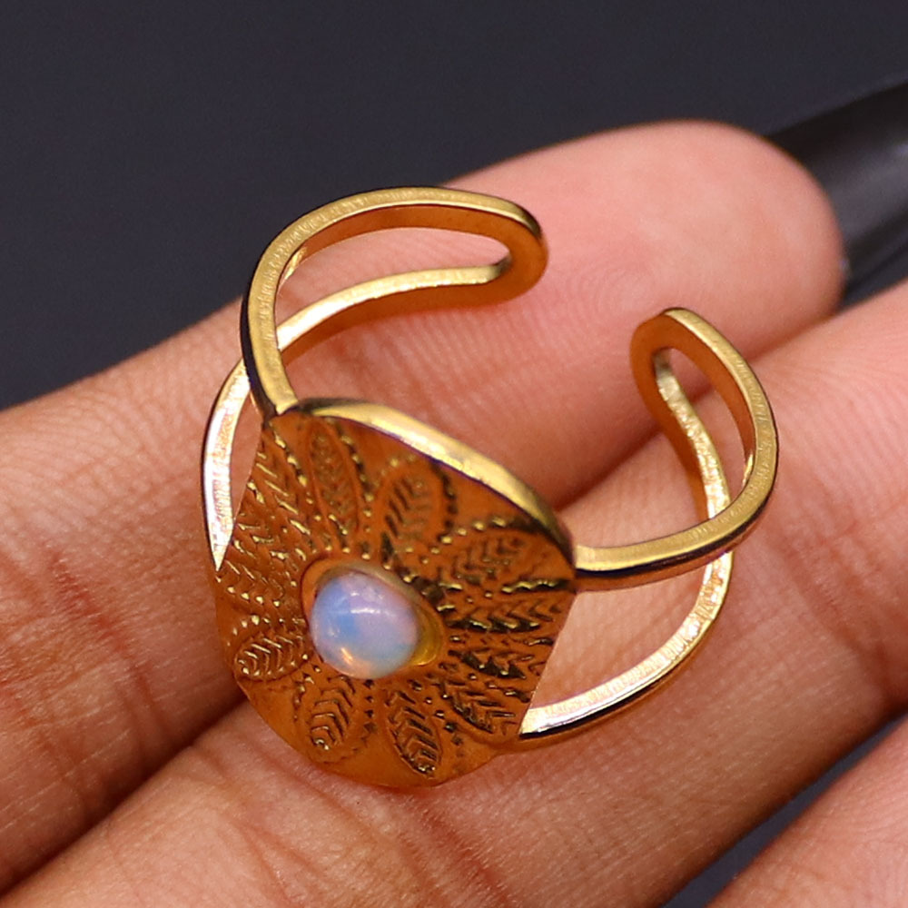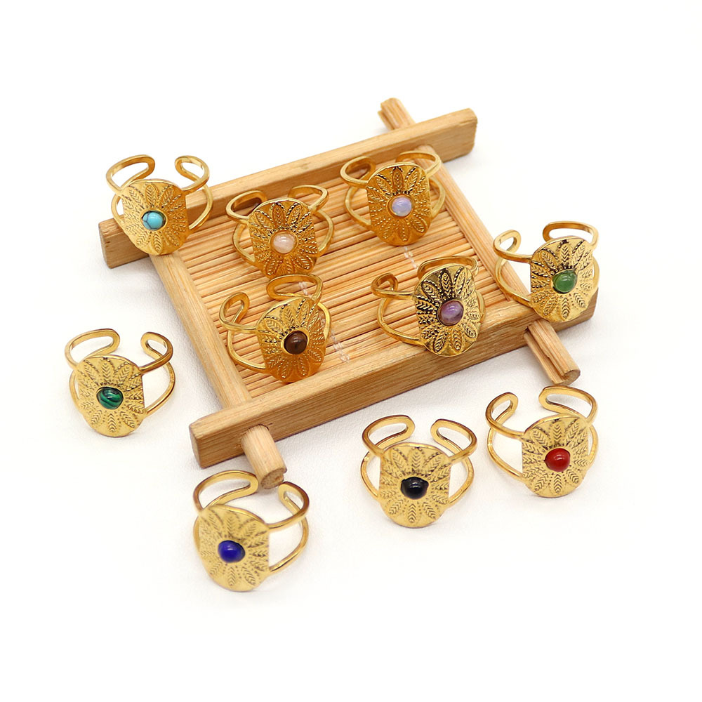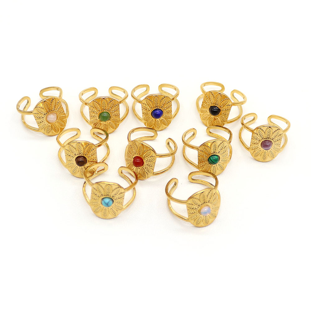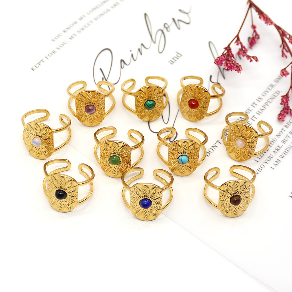 Pierre précieuse bague en acier inoxydable, Acier inoxydable 304, avec Pierre naturelle, Placage de couleur d'or, bijoux de mode, plus de couleurs à choisir, 21x18mm, Vendu par PC