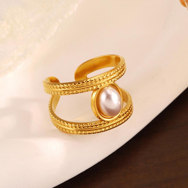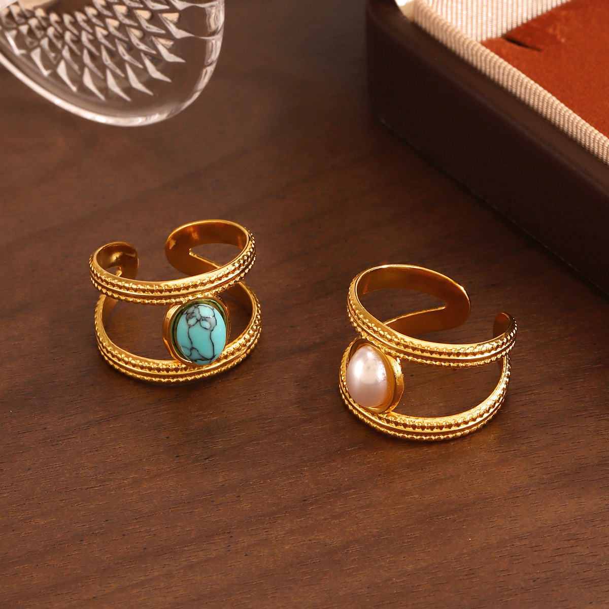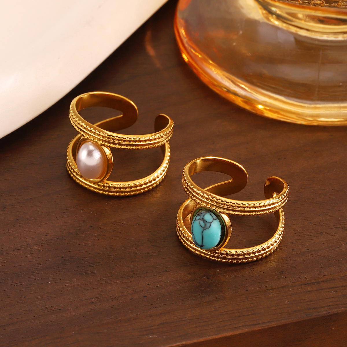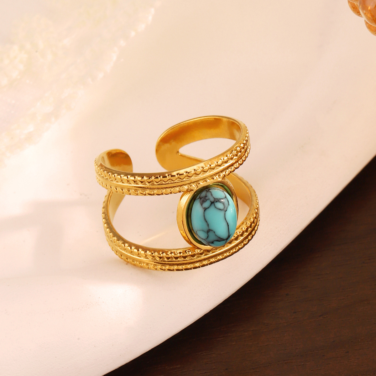 Pierre précieuse bague en acier inoxydable, Acier inoxydable 304, avec turquoise, Placage, différents matériaux pour le choix & pour femme & creux, doré, Vendu par PC