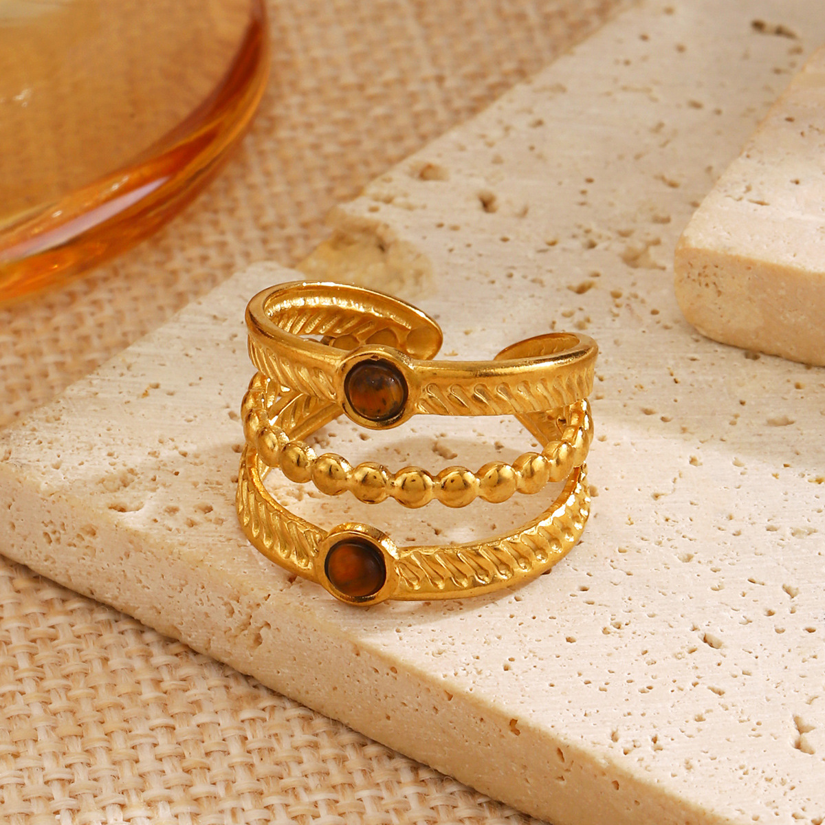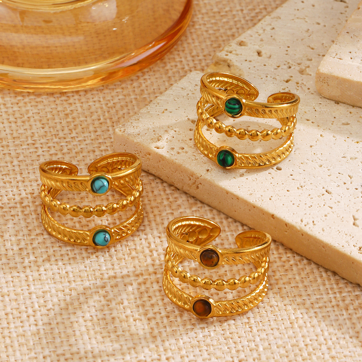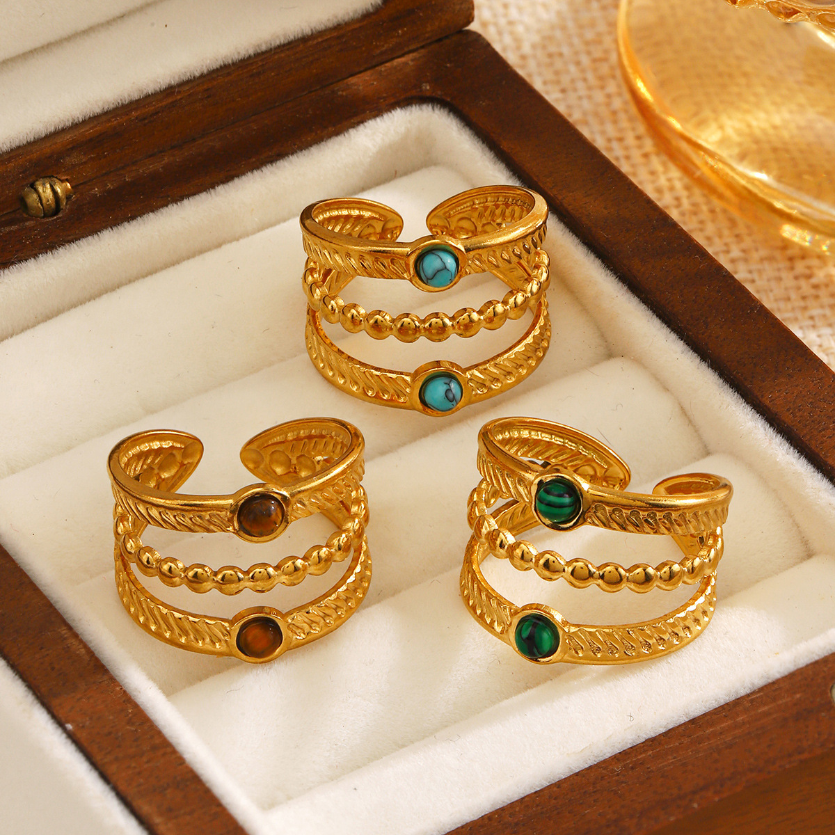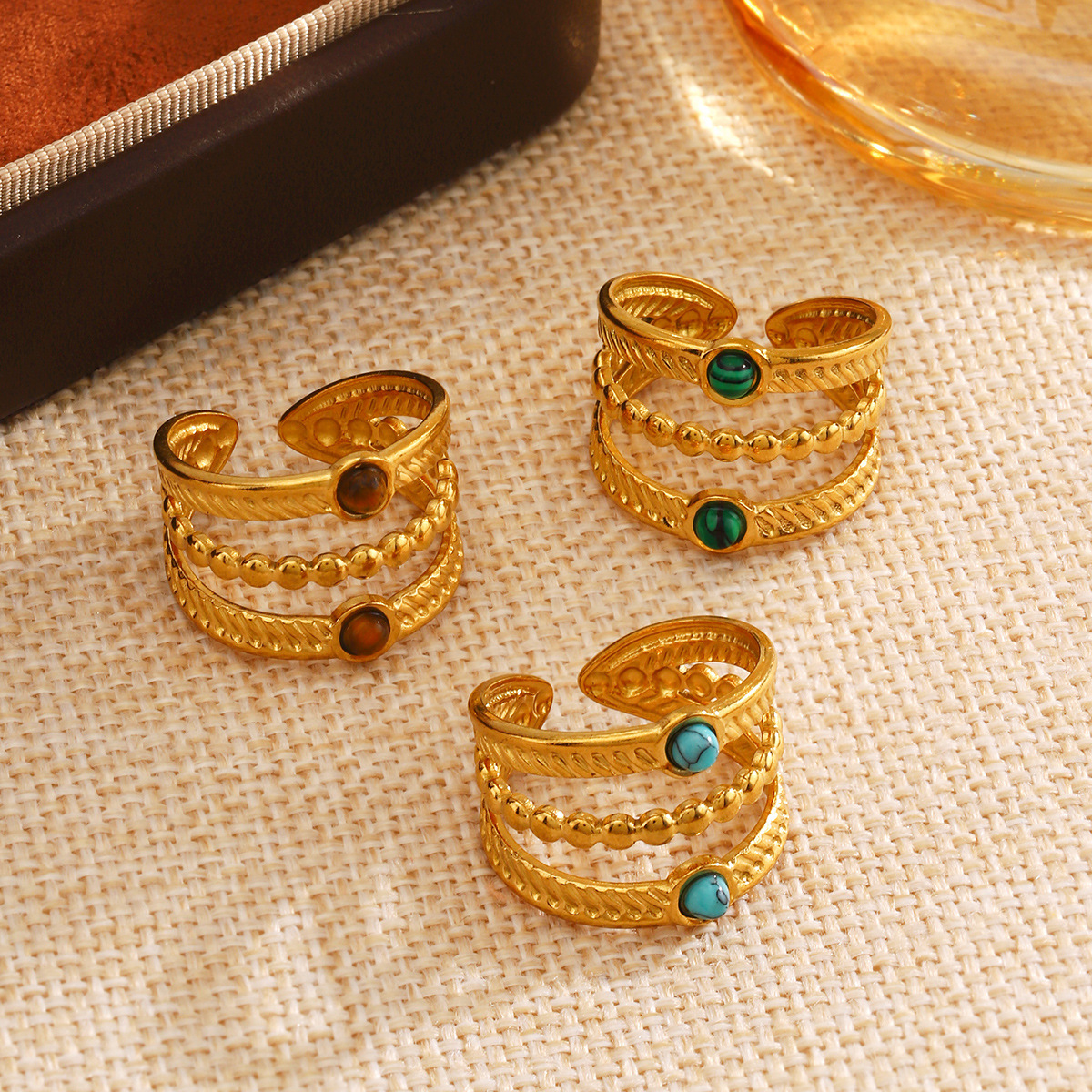 Pierre précieuse bague en acier inoxydable, Acier inoxydable 304, avec Pierre naturelle, Plaqué or 18K, trois couches & différents matériaux pour le choix & pour femme, Vendu par PC