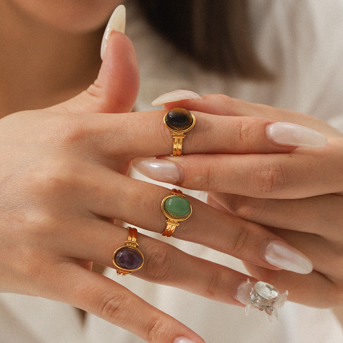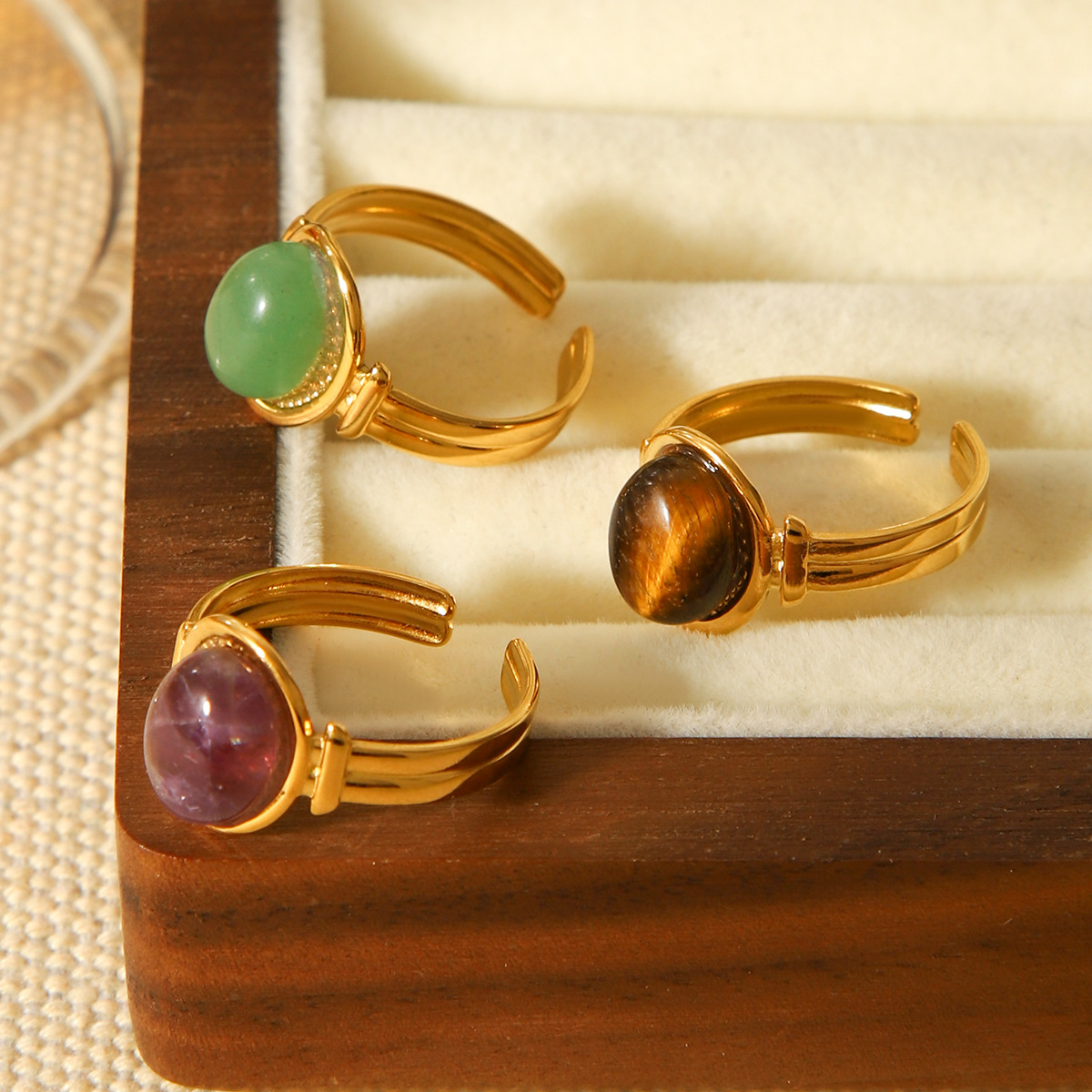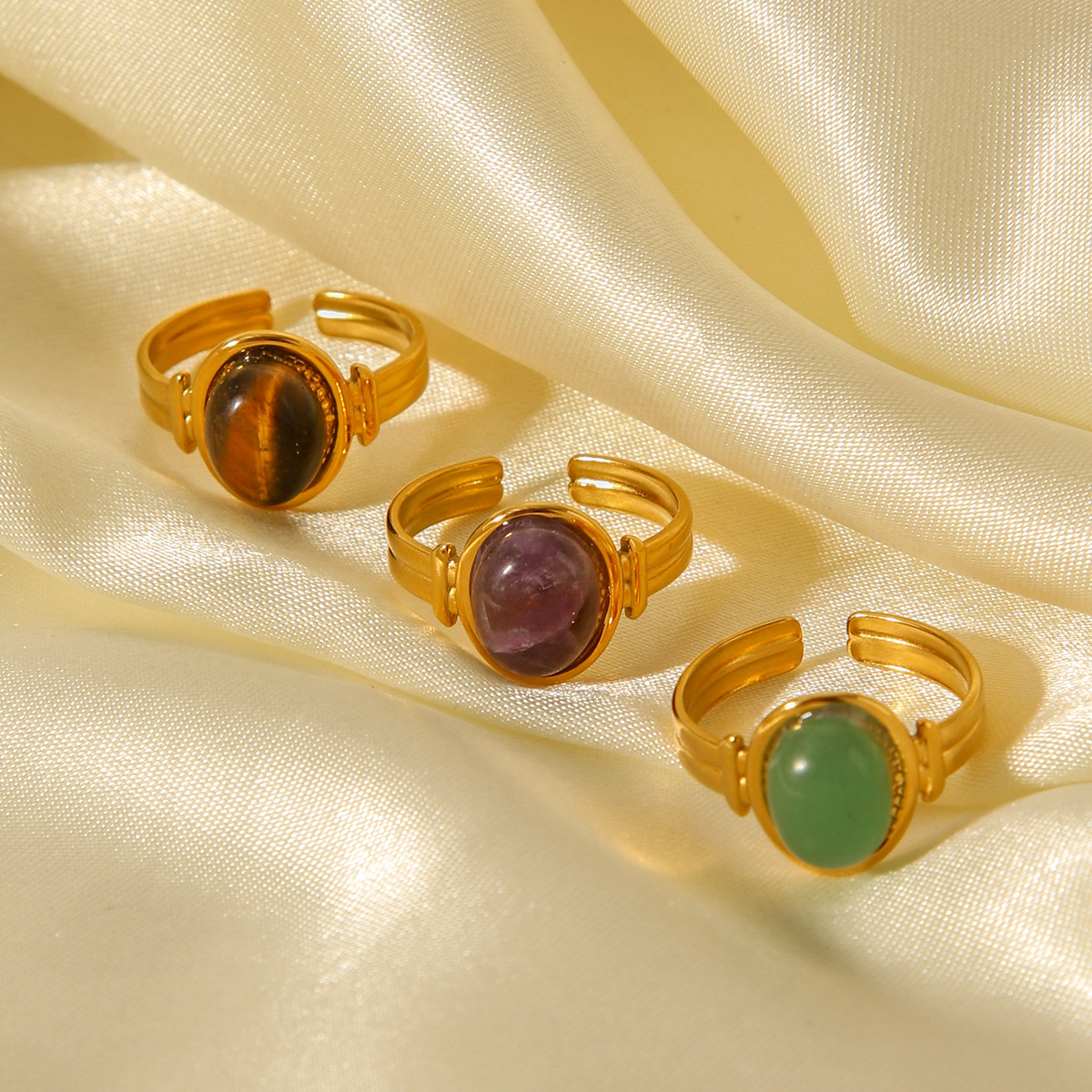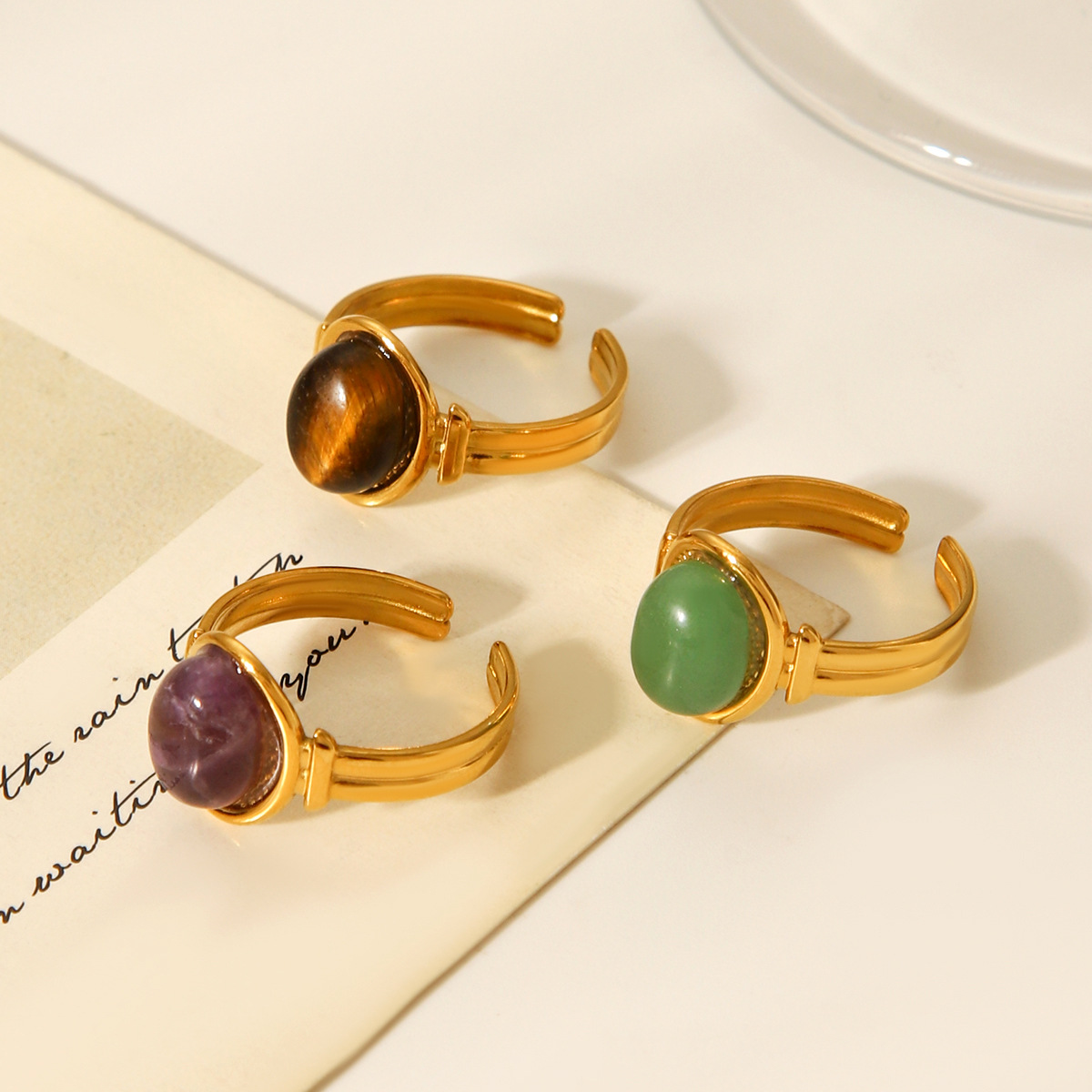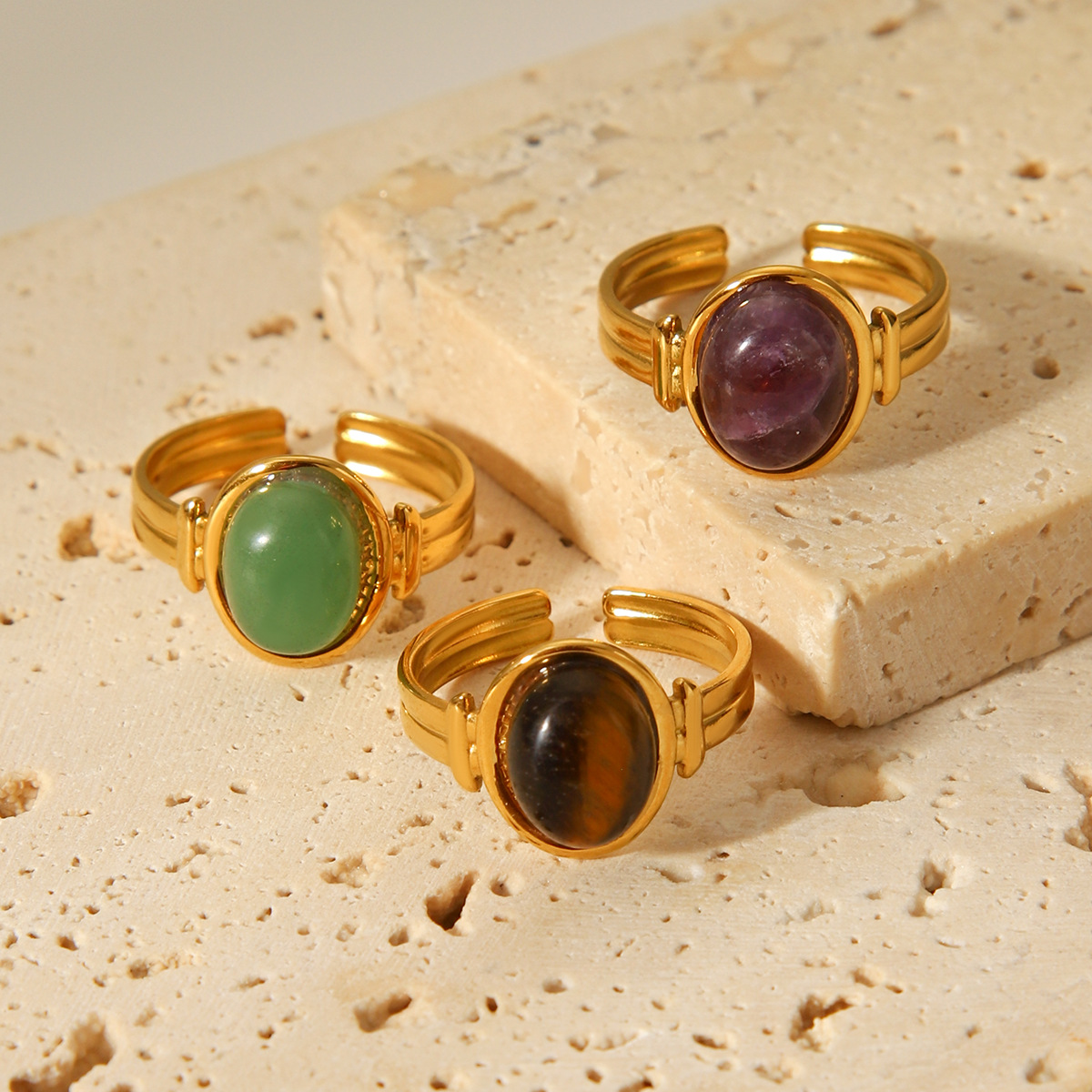 Pierre précieuse bague en acier inoxydable, Acier inoxydable 304, avec Pierre naturelle, Plaqué or 18K, bijoux de mode & différents matériaux pour le choix & pour femme, Vendu par PC