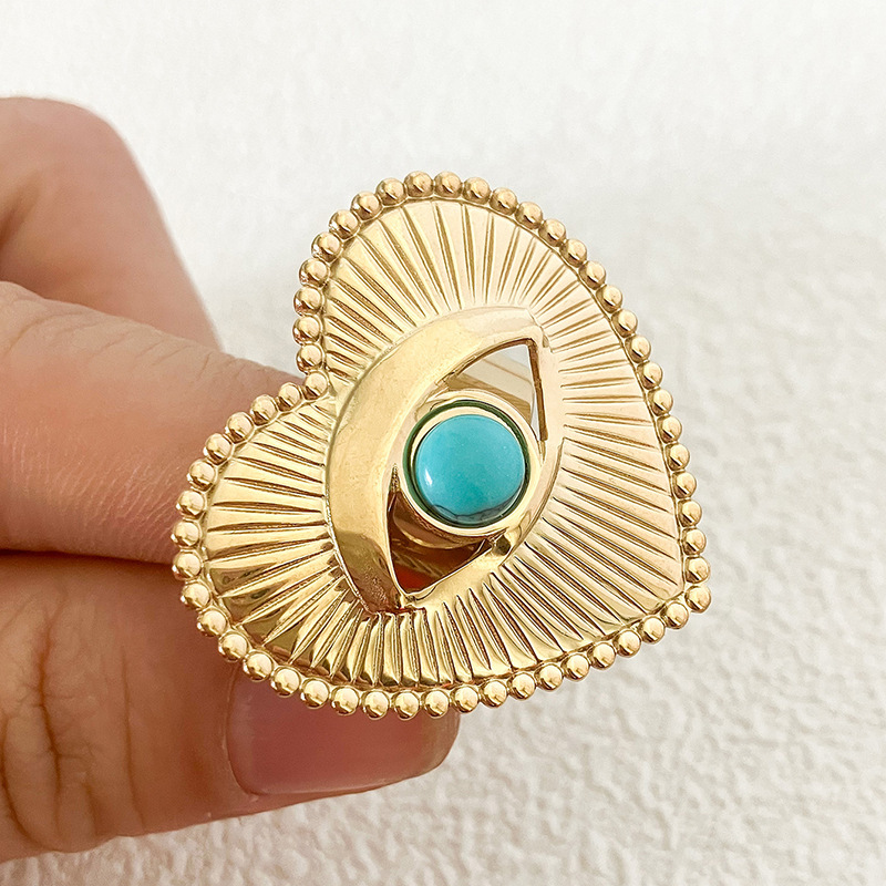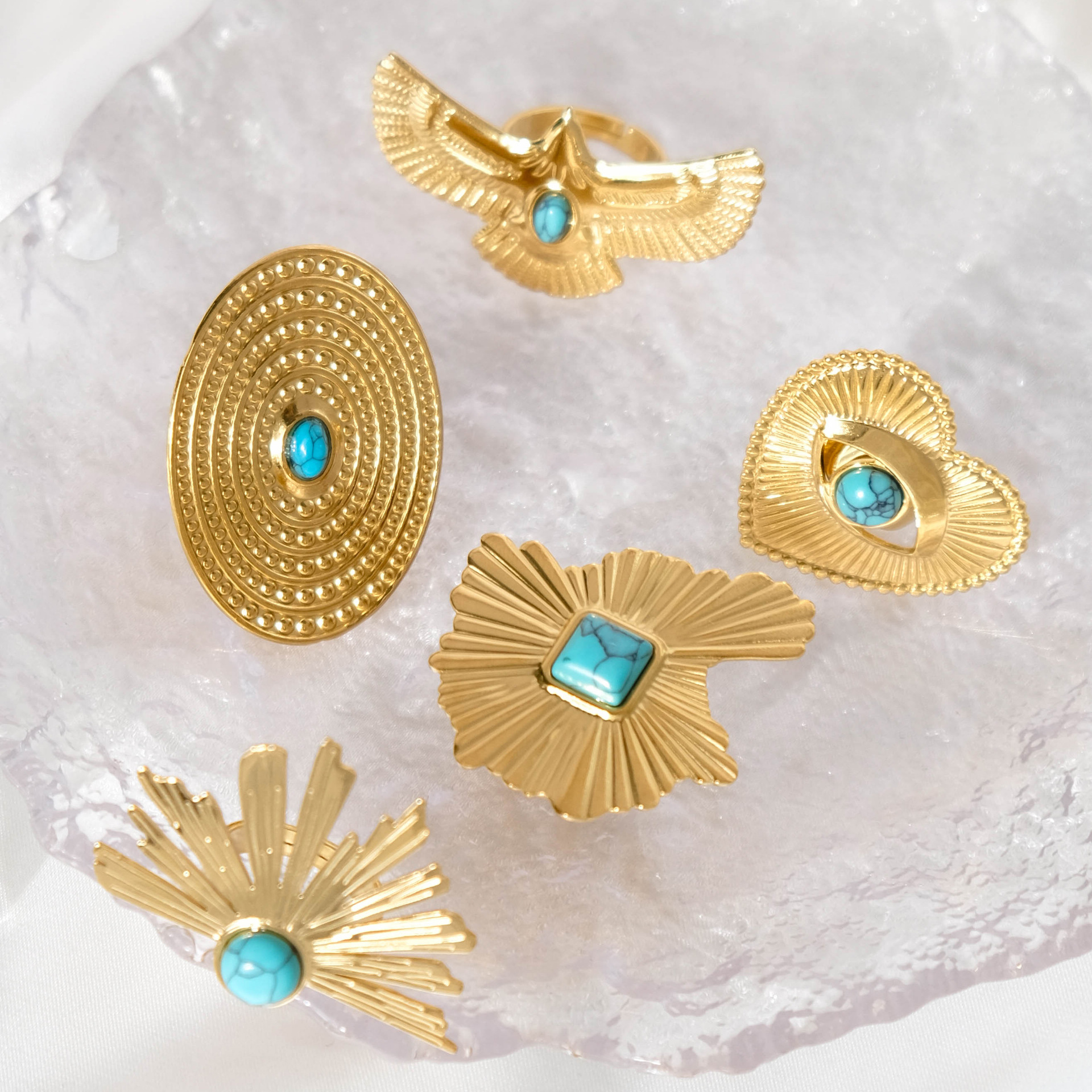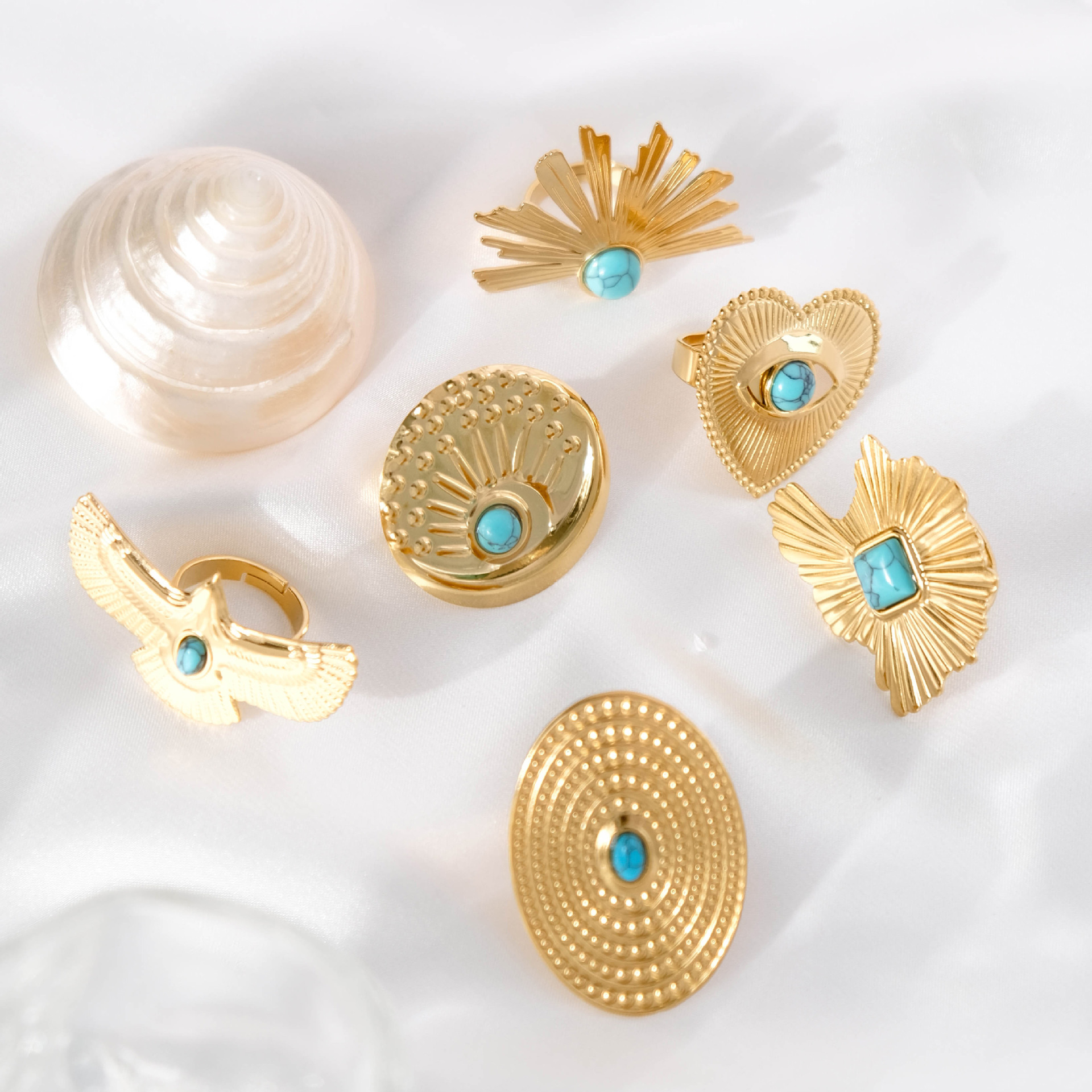 Pierre précieuse bague en acier inoxydable, Acier inoxydable 304, avec turquoise, Placage, bijoux de mode & styles différents pour le choix & pour femme, doré, Vendu par PC