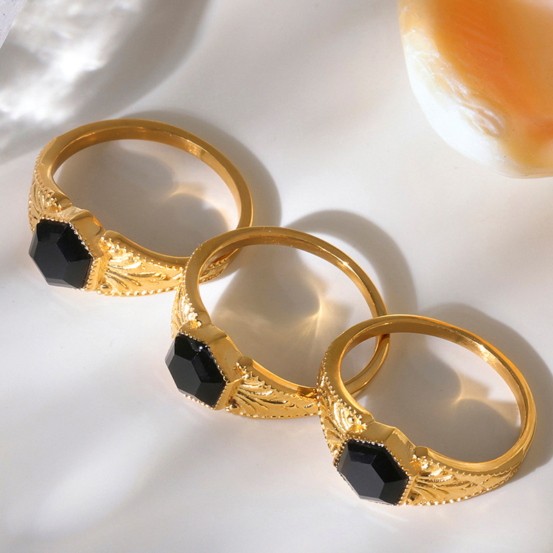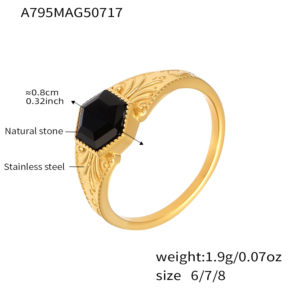 Pierre précieuse bague en acier inoxydable, Acier inoxydable 304, avec Pierre naturelle, Placage de couleur d'or, bijoux de mode, plus de couleurs à choisir, Vendu par PC