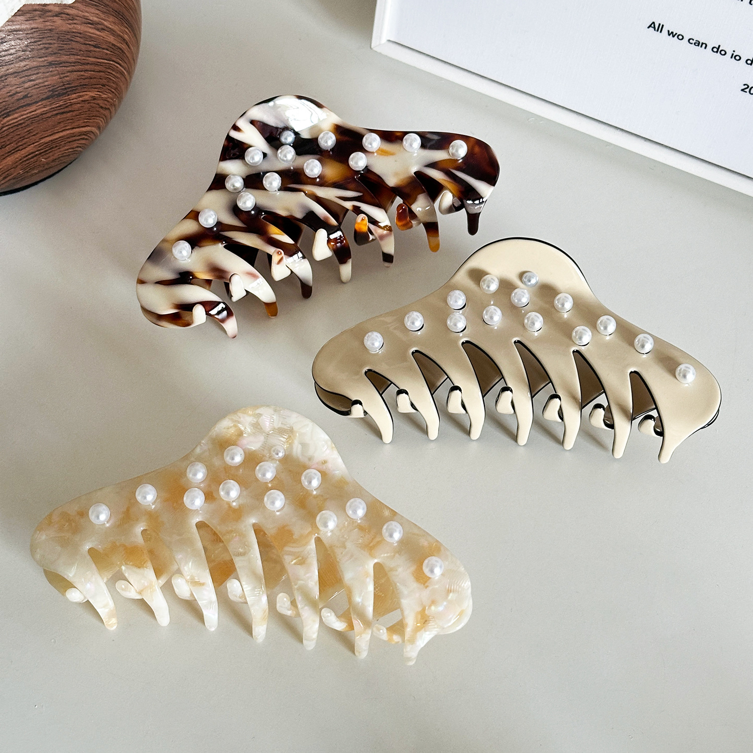 Pinces à cheveux griffes , Feuille d'acétate, avec perle de plastique, bijoux de mode, plus de couleurs à choisir, 123x56x41mm, Vendu par PC
