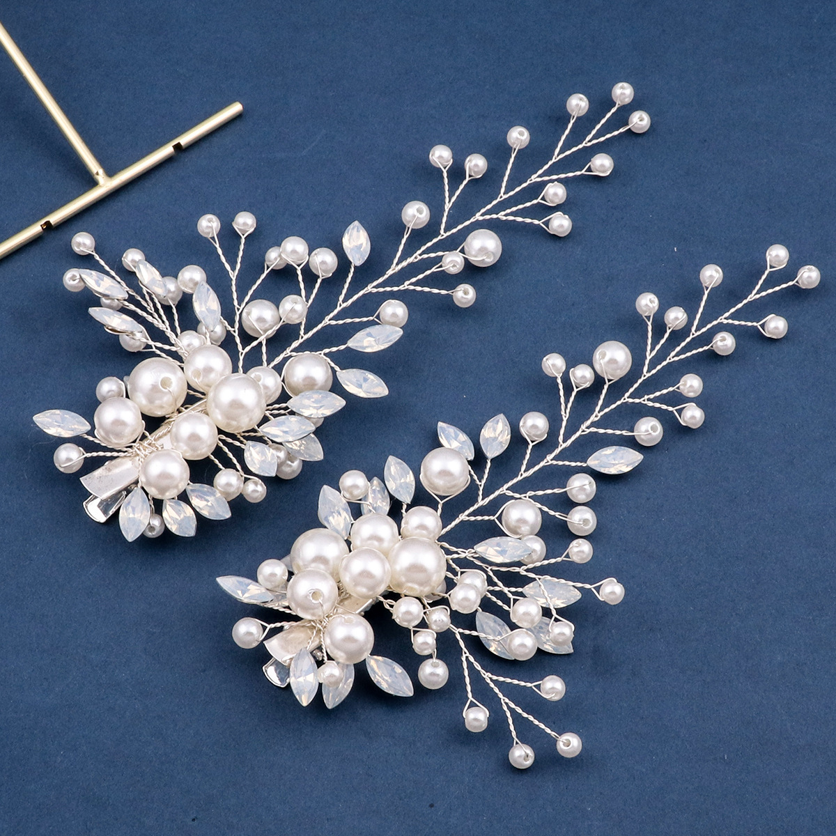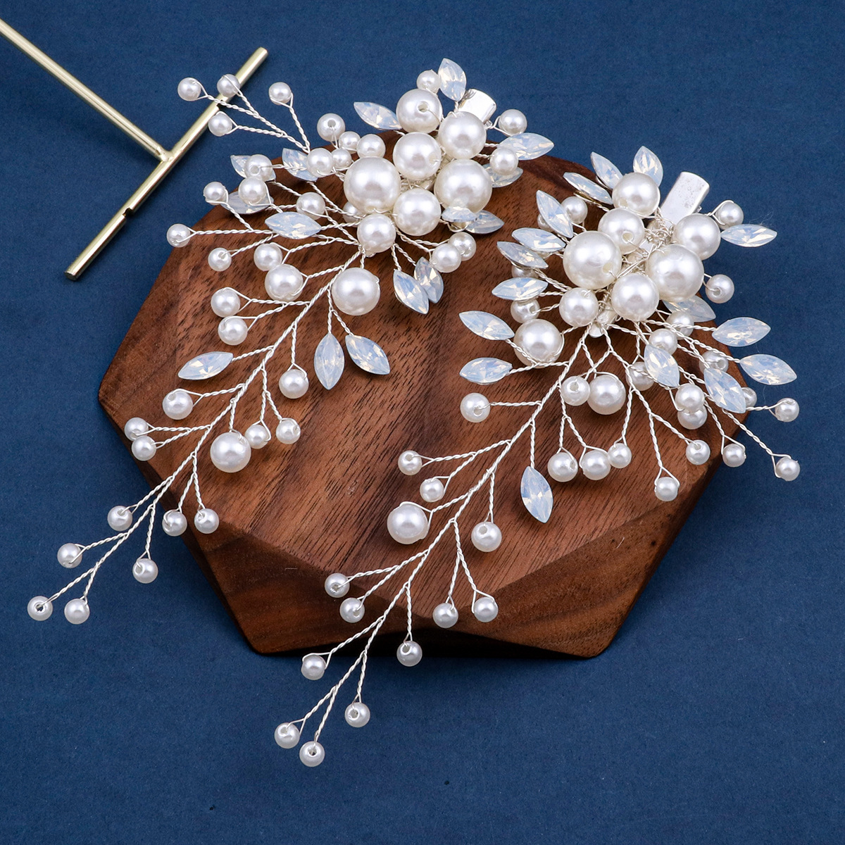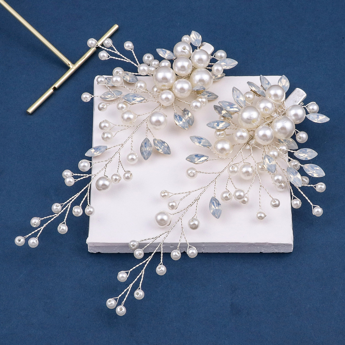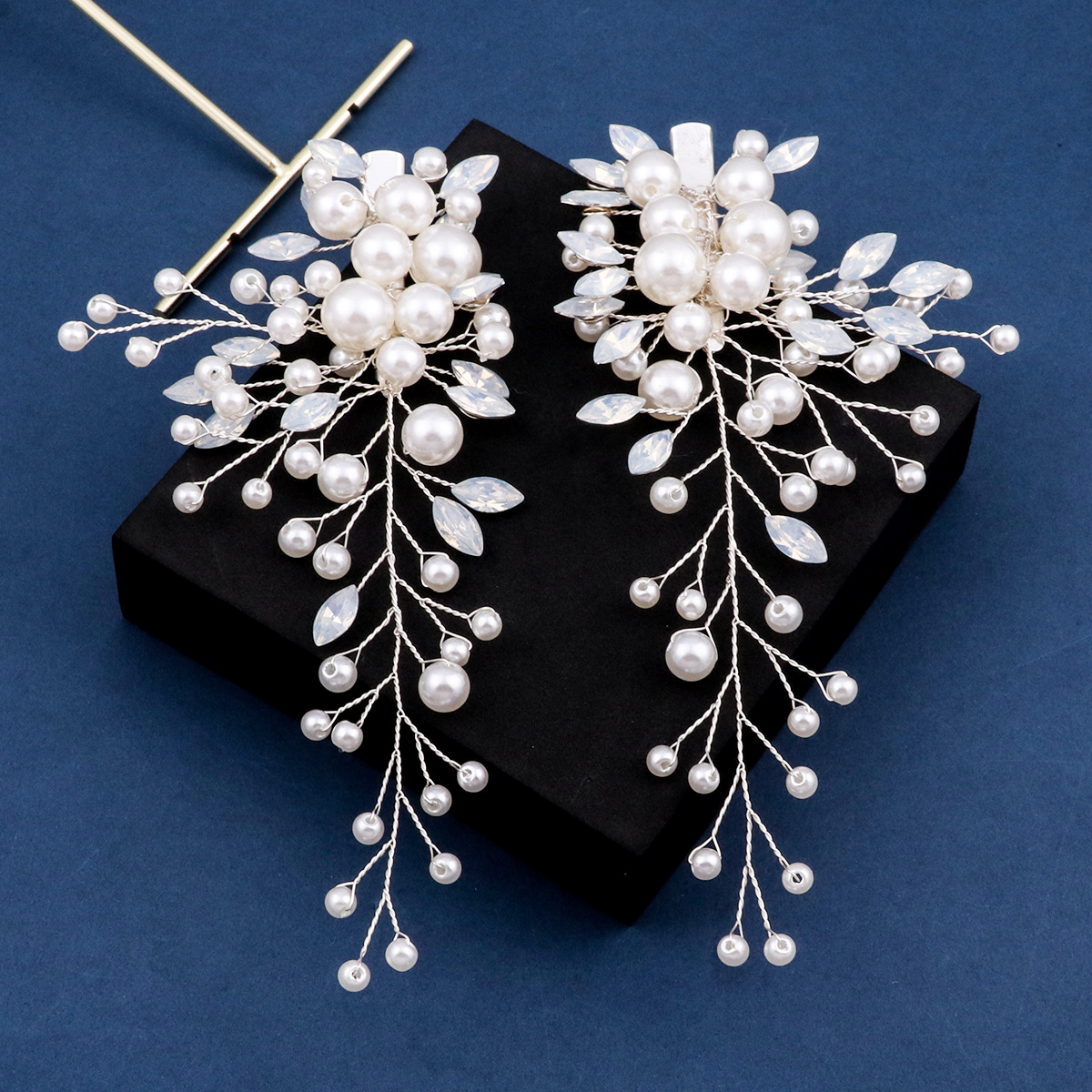 Pinces bec, alliage de zinc, avec fil en laiton & cristal & perle de plastique, fait à la main, bijoux de mode & pour femme, blanc, Vendu par paire