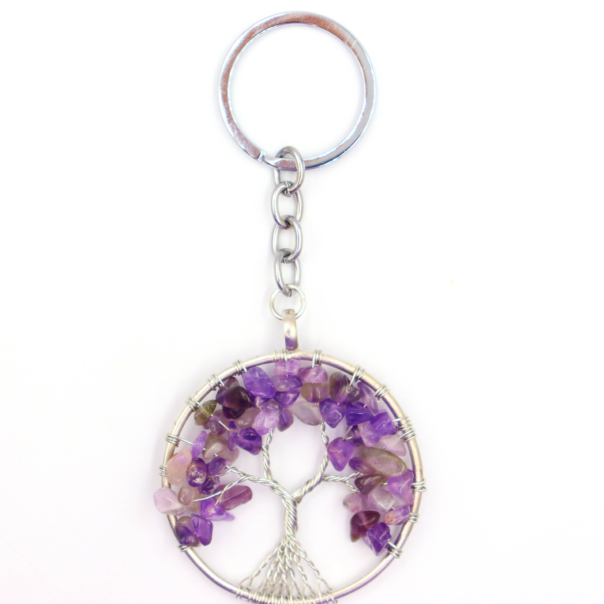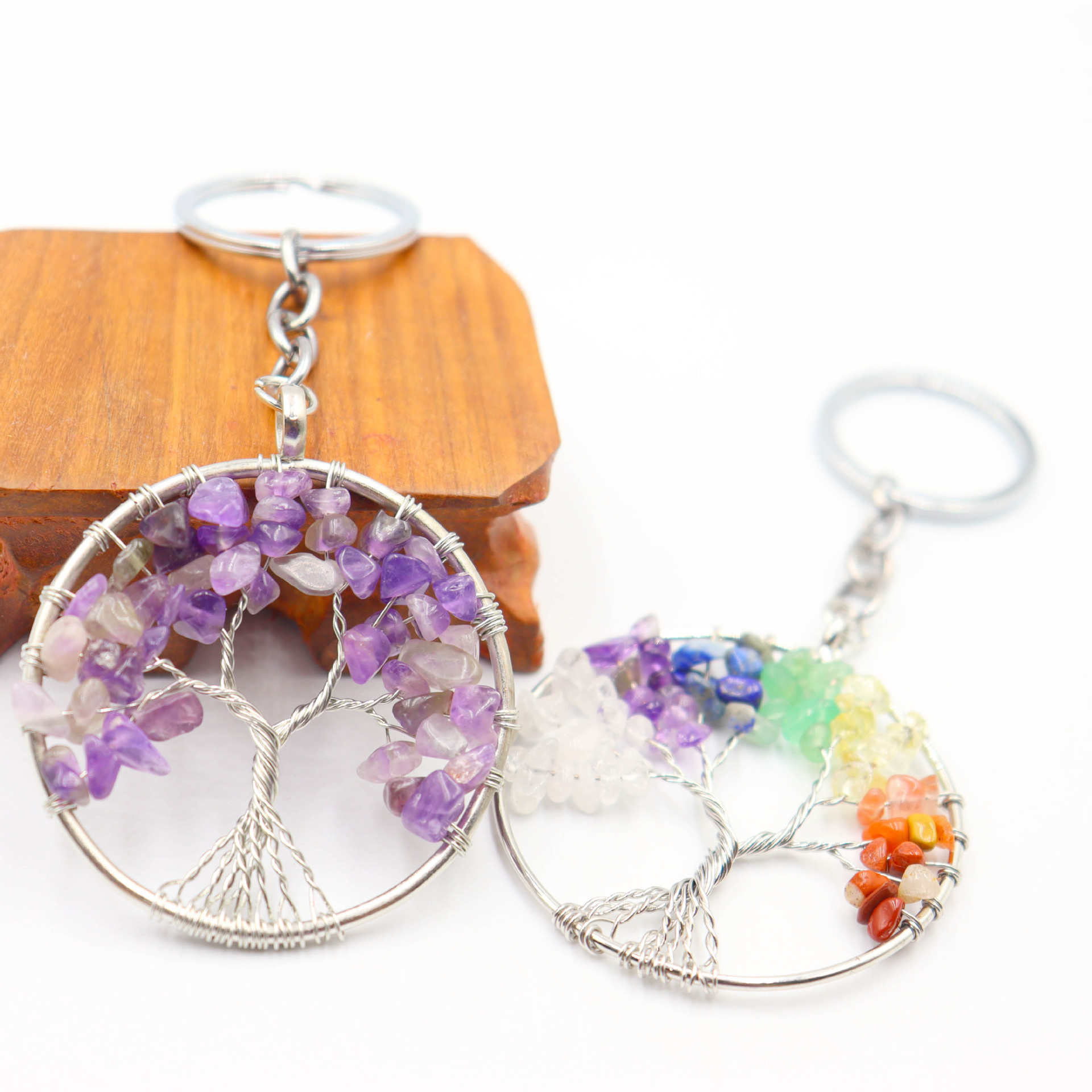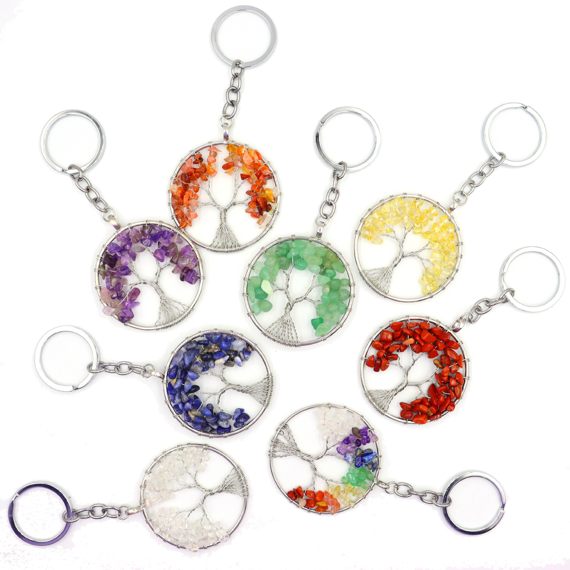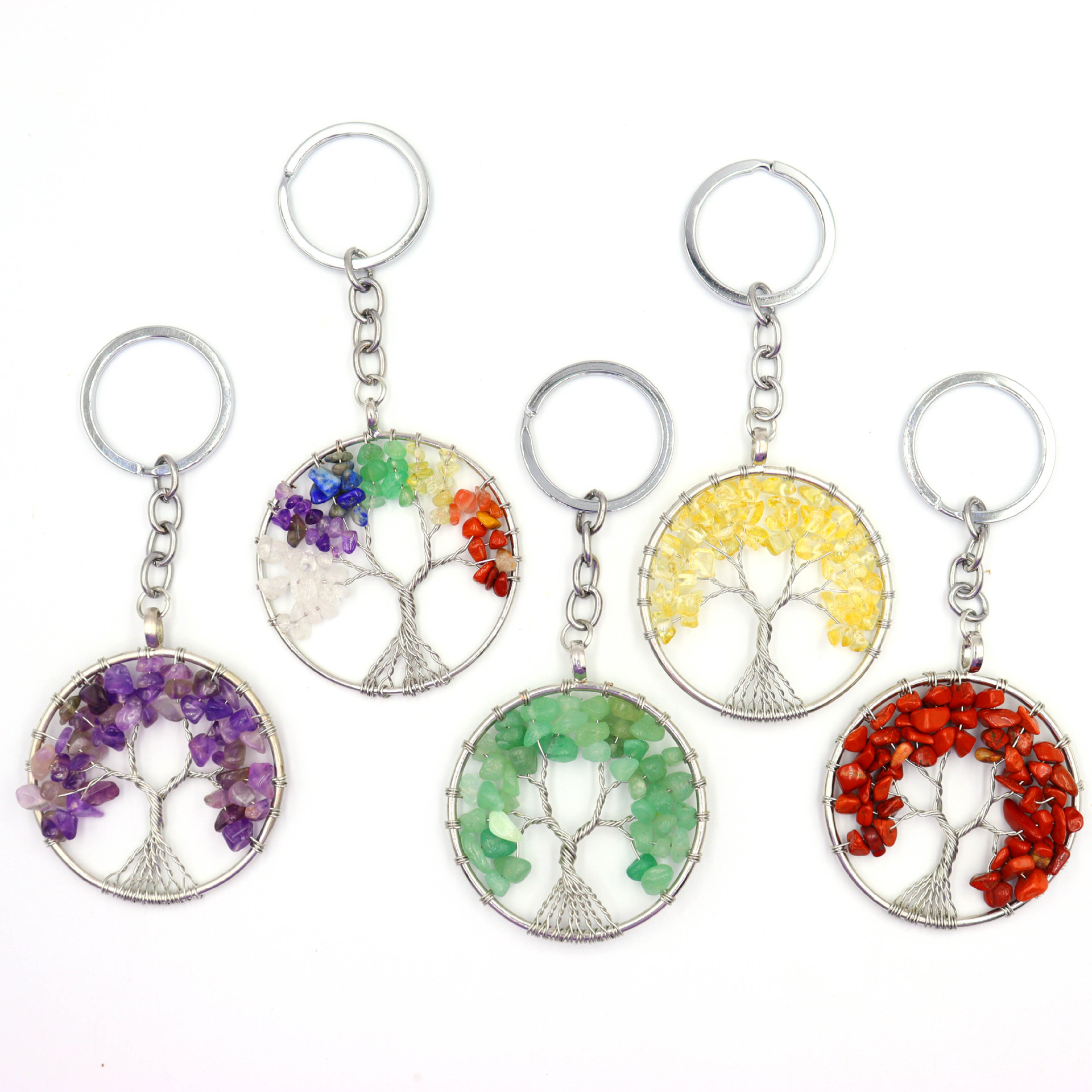 Porte-clé de cuivre, laiton, avec Pierre naturelle, Rond, Placage de couleur argentée, différents matériaux pour le choix, plus de couleurs à choisir, 50mm, Vendu par PC