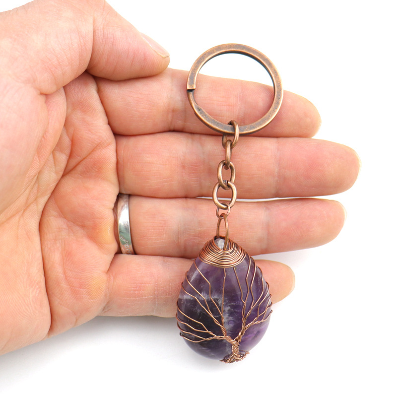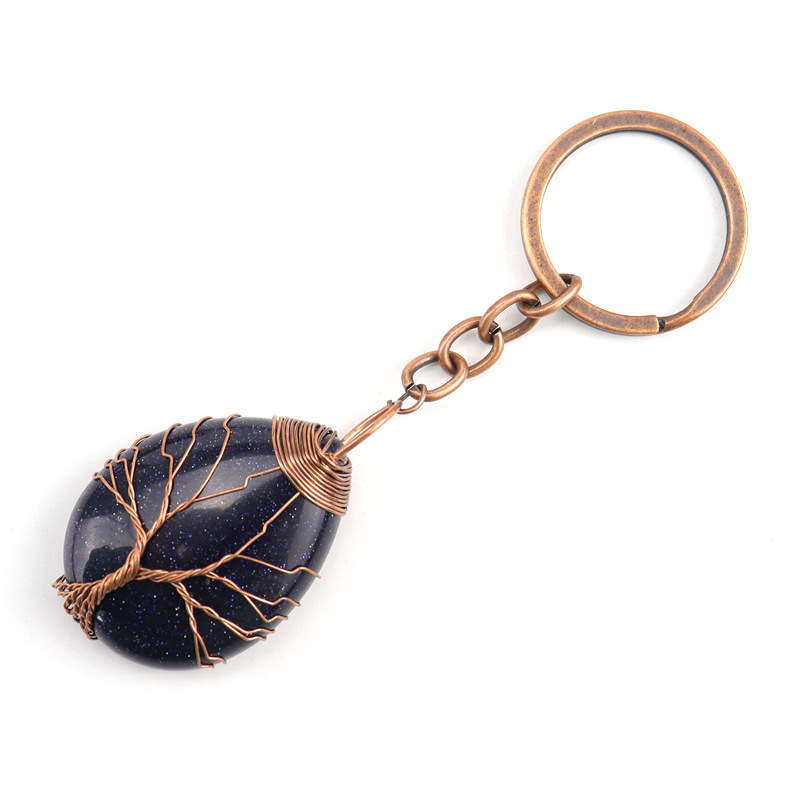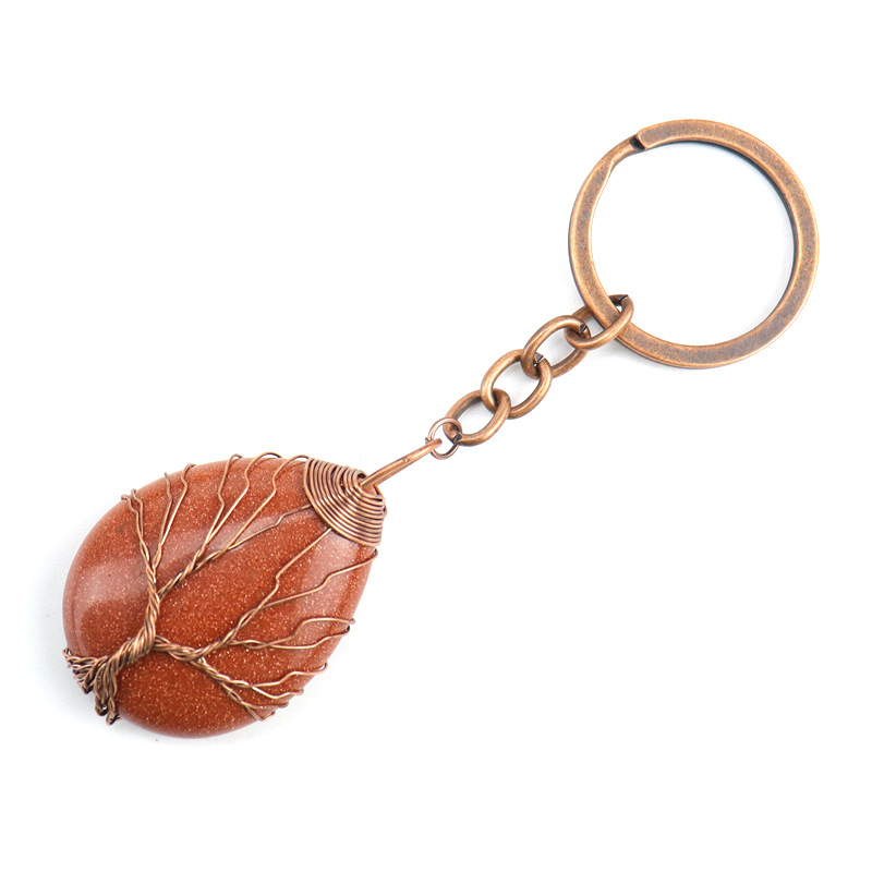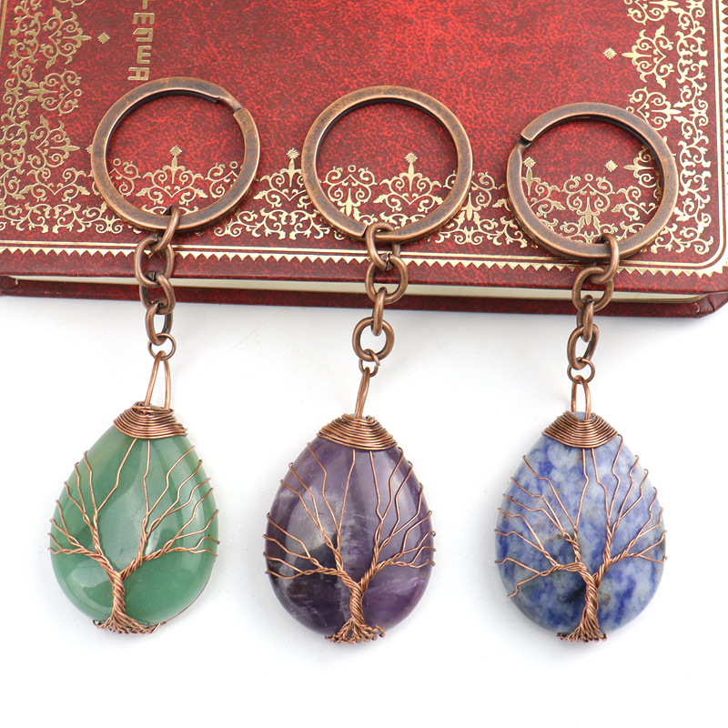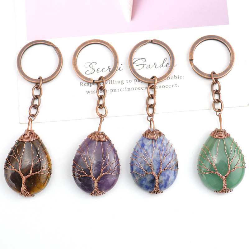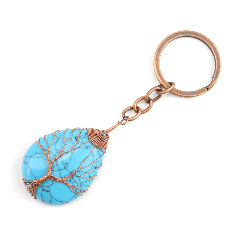 Porte-clé de cuivre, laiton, avec Pierre naturelle, larme, Placage, différents matériaux pour le choix, plus de couleurs à choisir, 30x40mm, Vendu par PC
