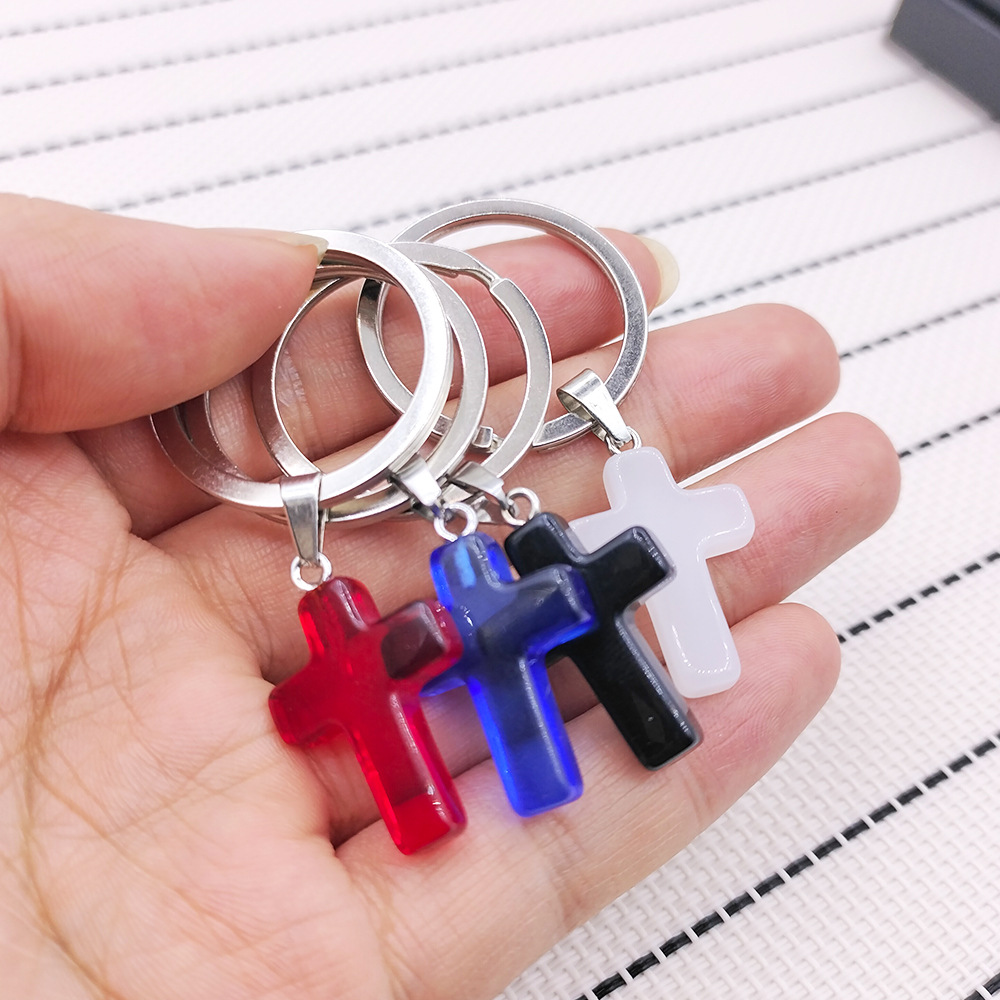 Porte-clés acrylique, alliage de zinc, avec Acrylique, croix, Placage de couleur d'or, bijoux de mode, plus de couleurs à choisir, Vendu par PC