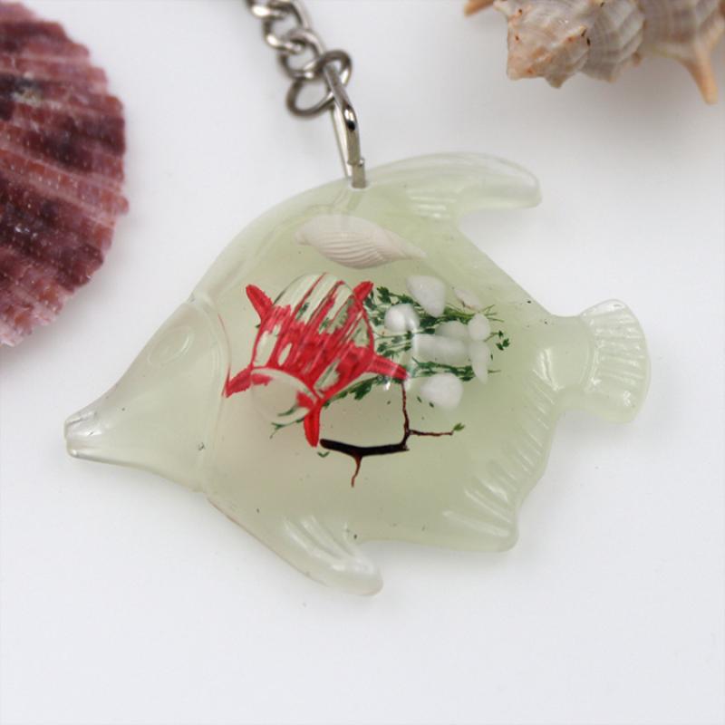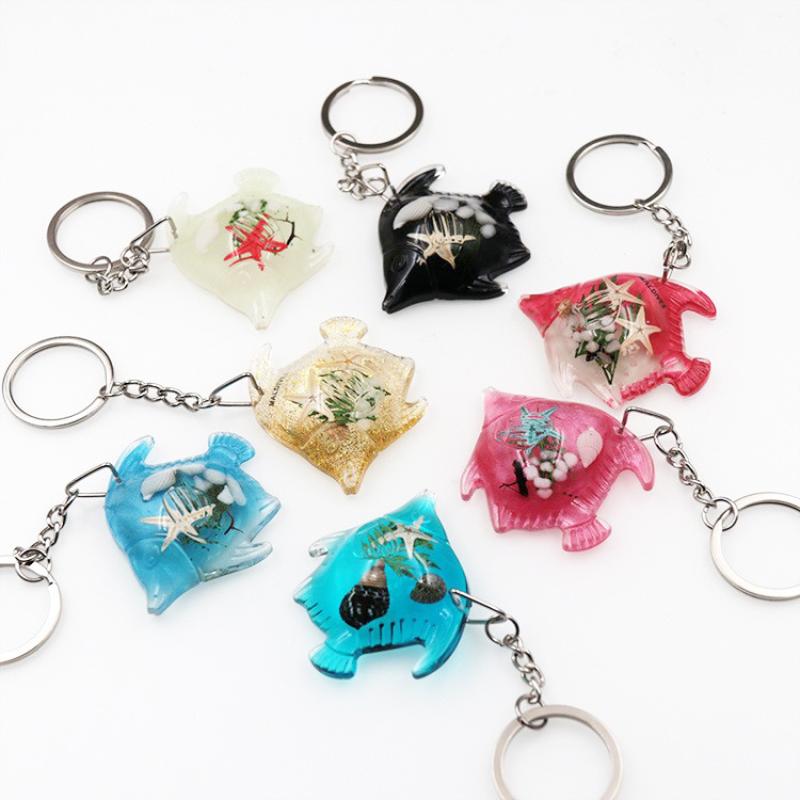 Porte-clés de résine, avec alliage de zinc, poisson, goutté d'époxy, unisexe, plus de couleurs à choisir, 54x44x17mm, Vendu par PC