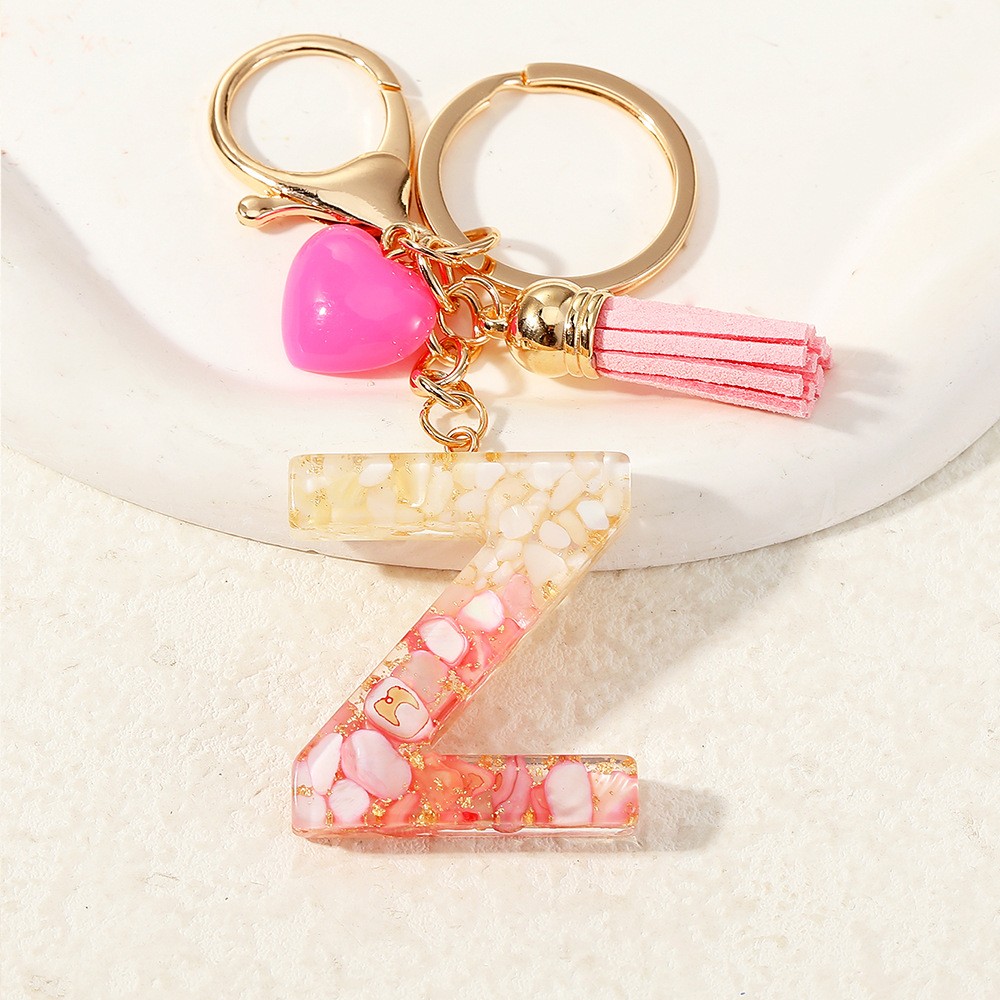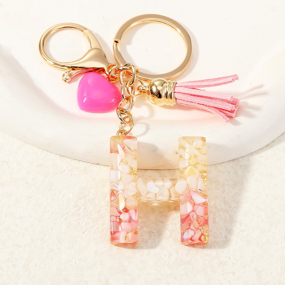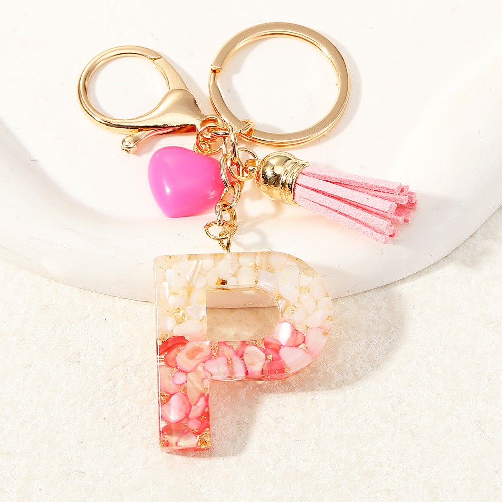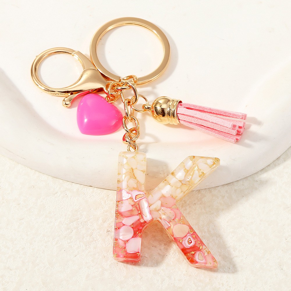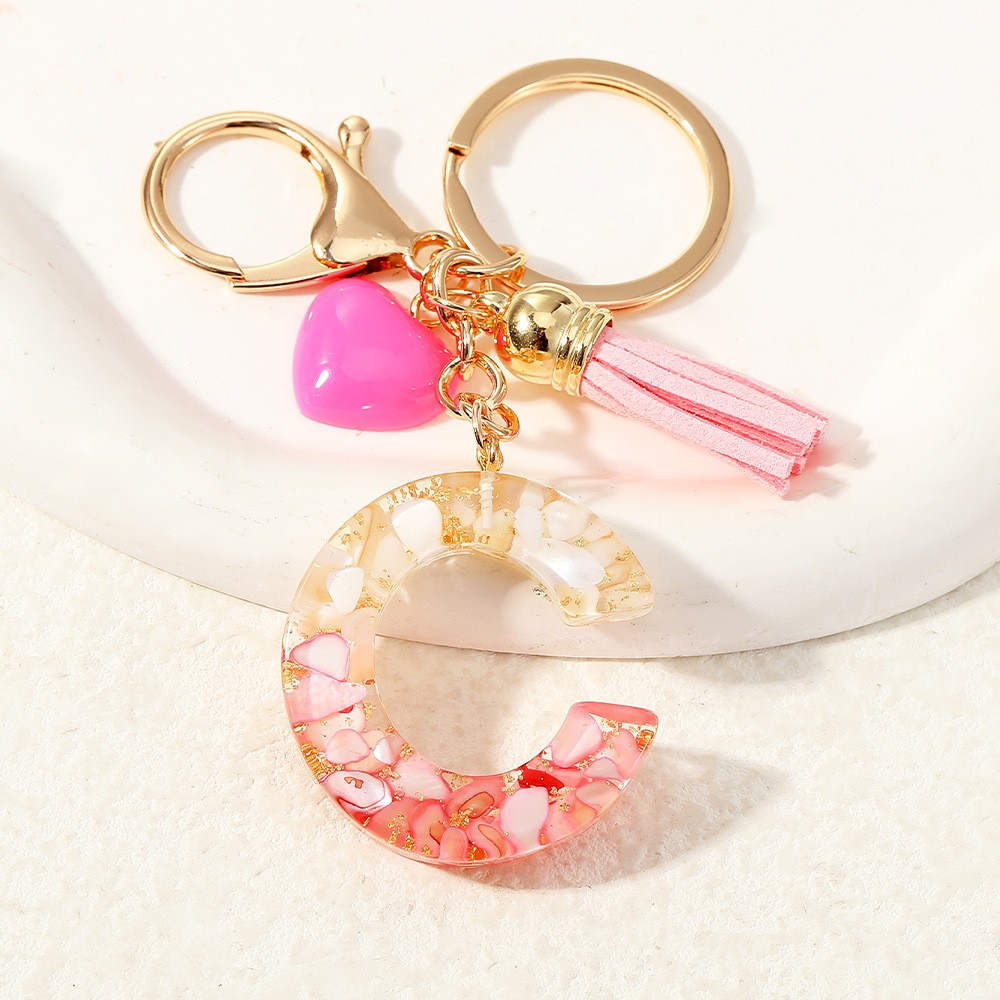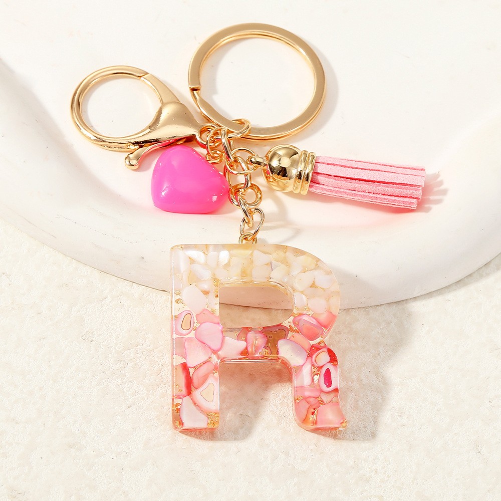 Porte-clés de résine, alliage de zinc, avec résine, Lettre d’alphabet, goutté d'époxy, multifonctionnel & unisexe & modèles différents pour le choix, rose, Vendu par PC