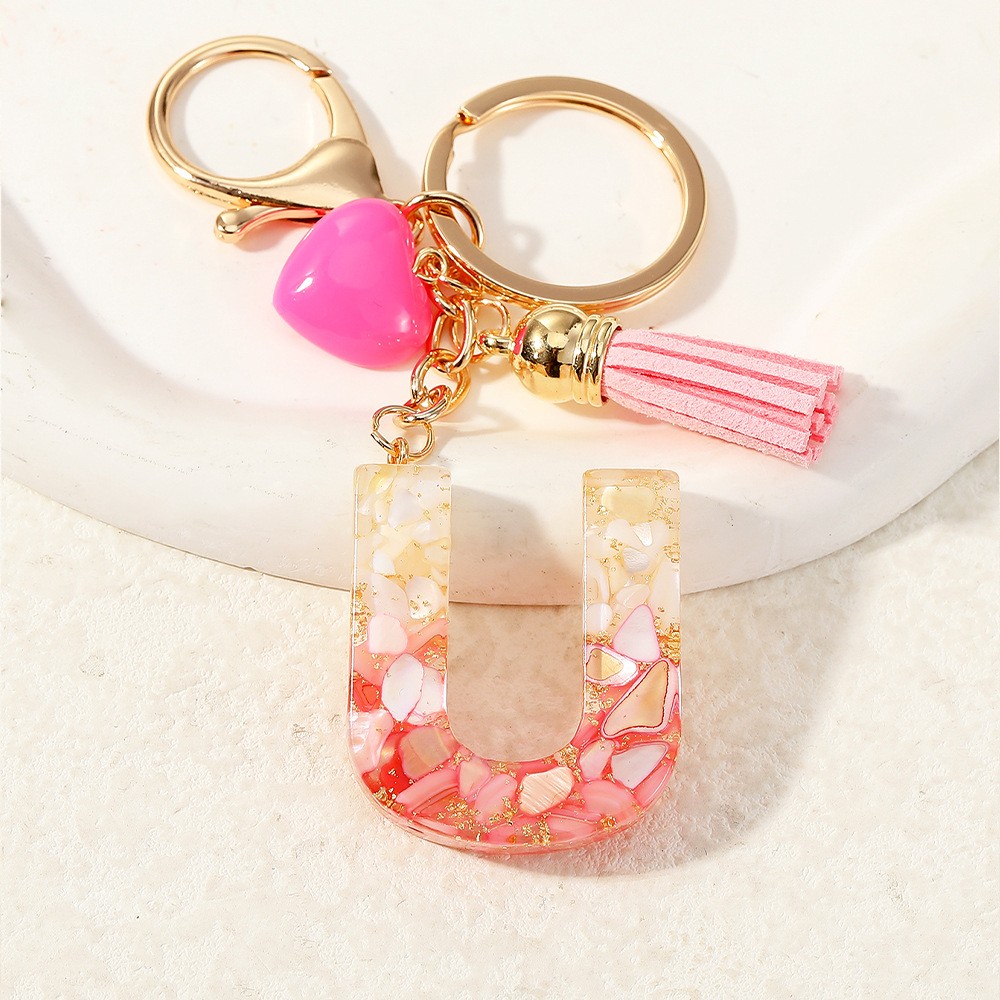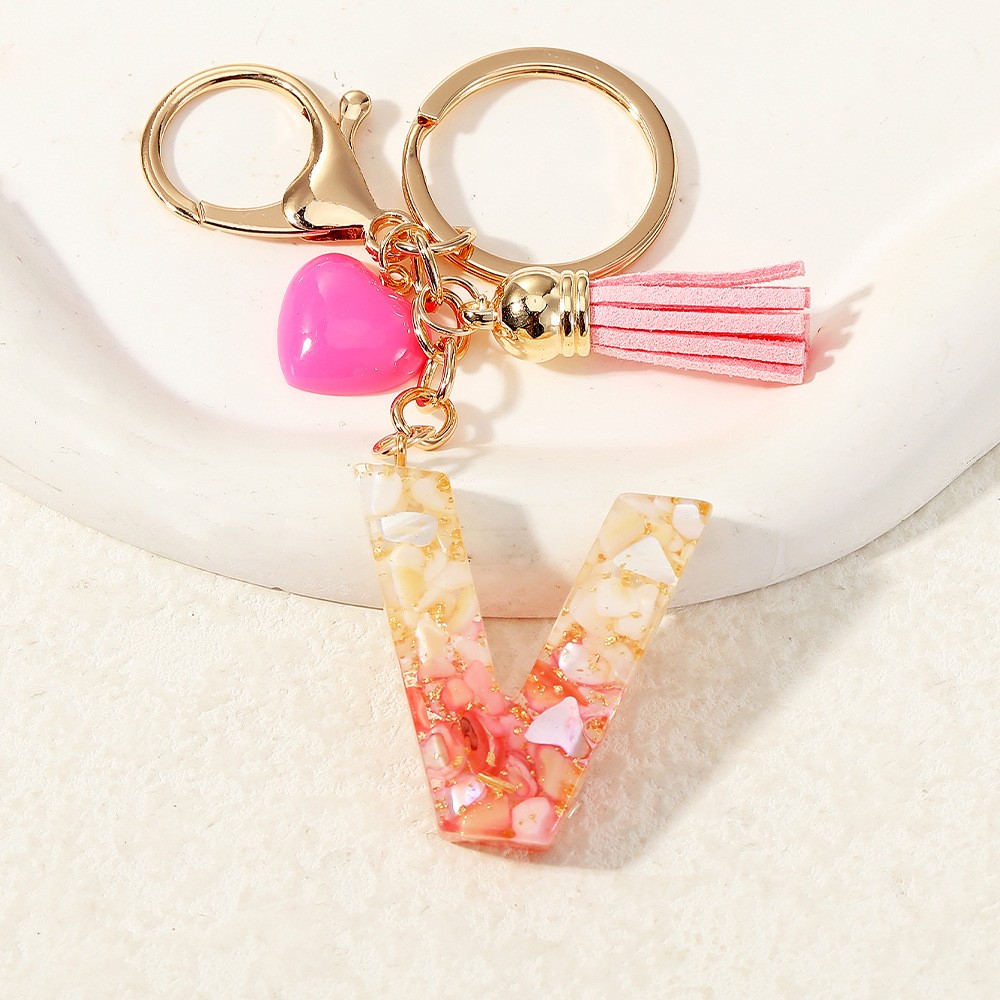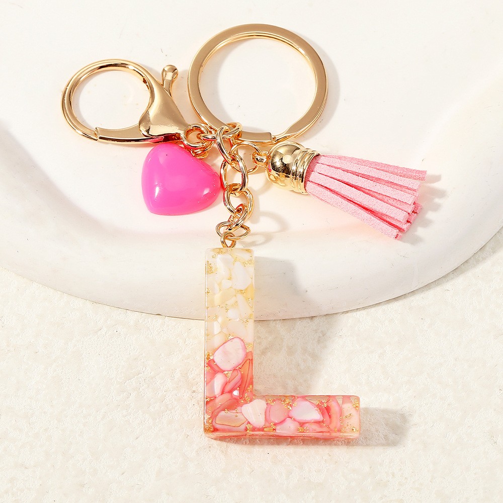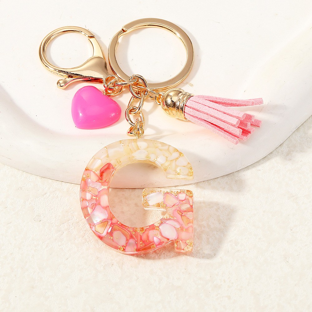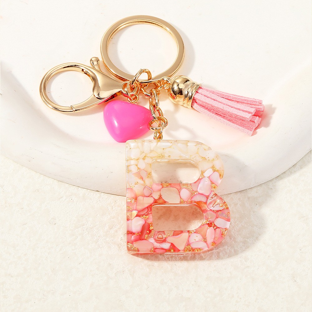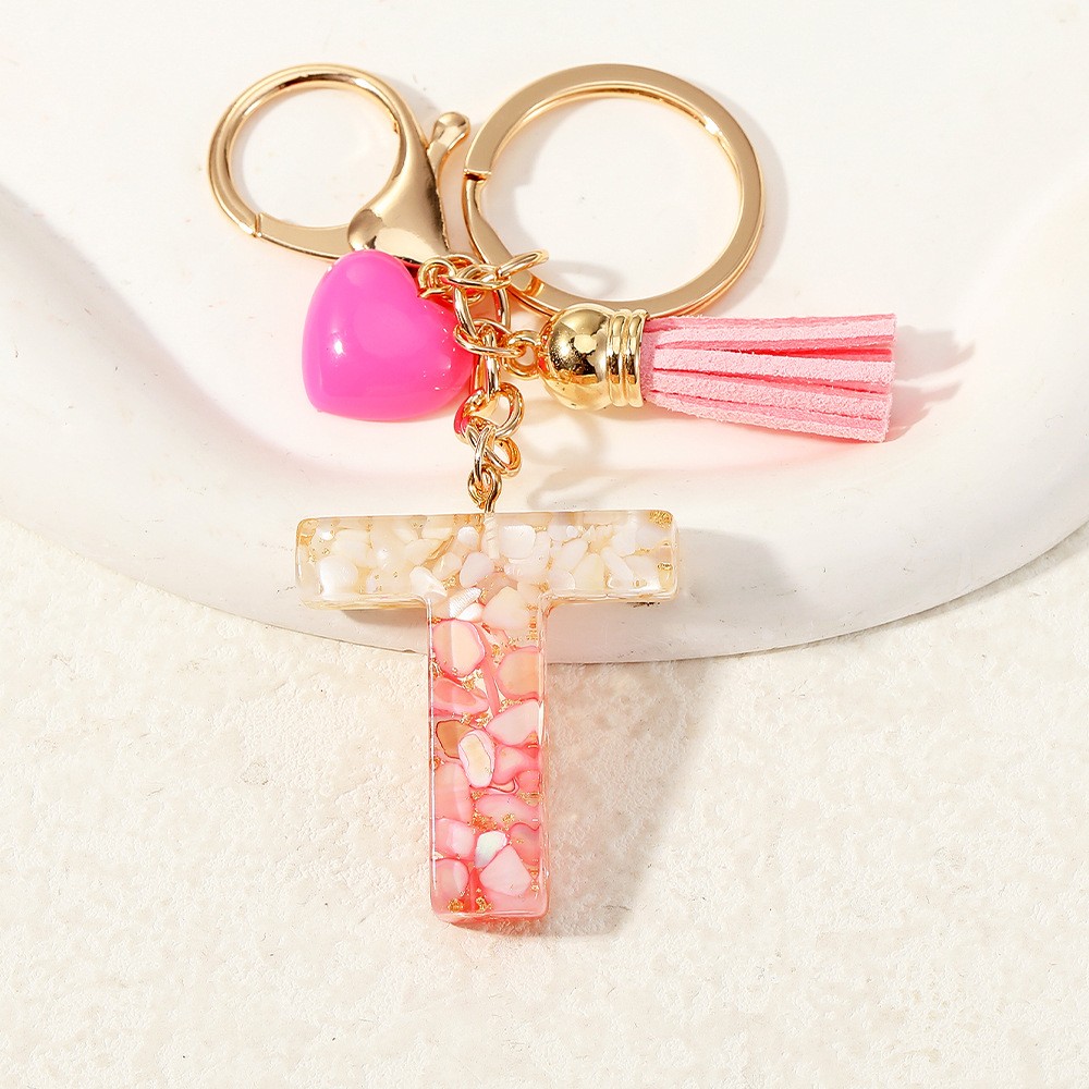 Porte-clés de résine, alliage de zinc, avec résine, Lettre d’alphabet, goutté d'époxy, multifonctionnel & unisexe & modèles différents pour le choix, rose, Vendu par PC