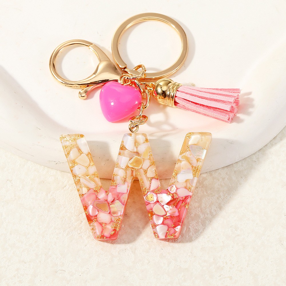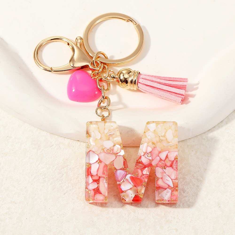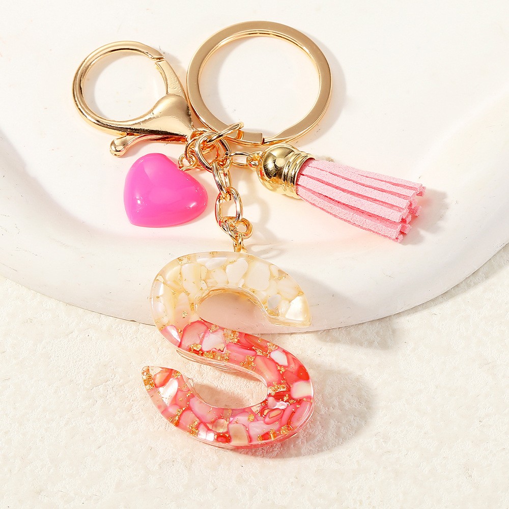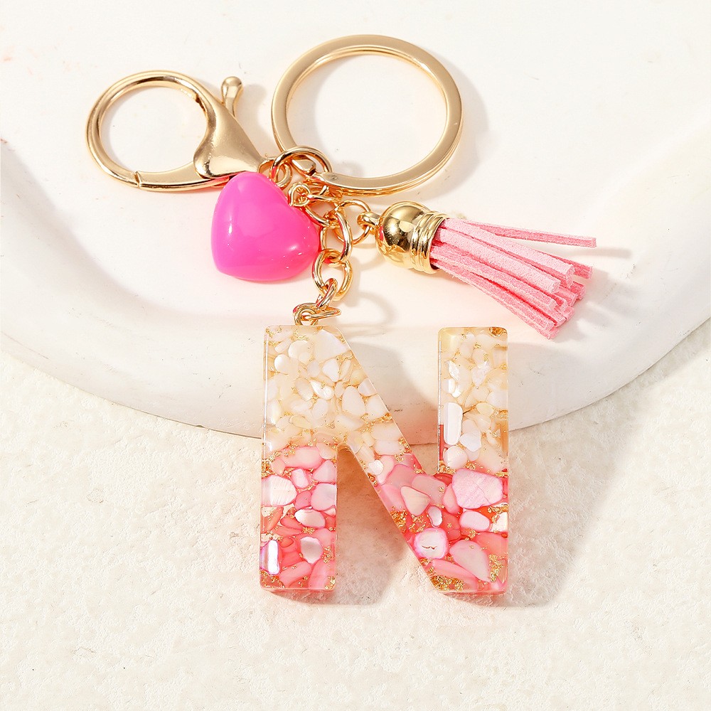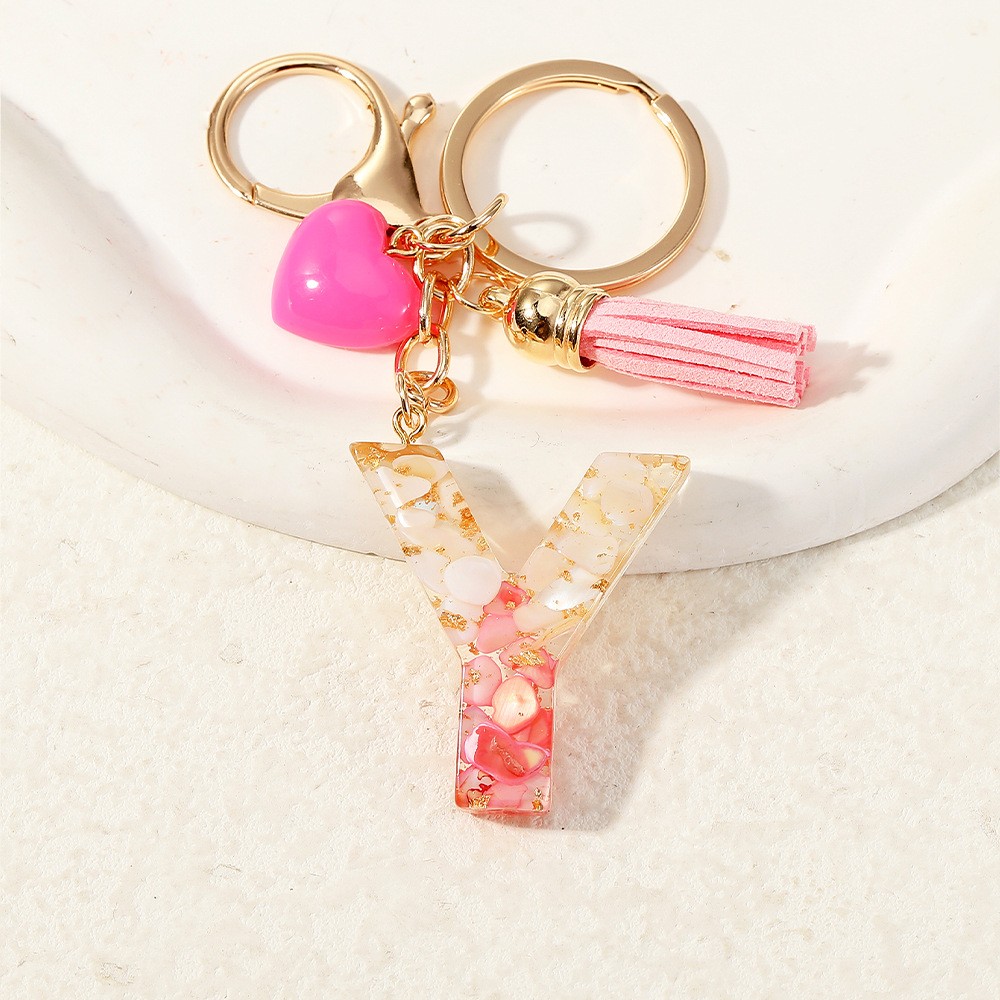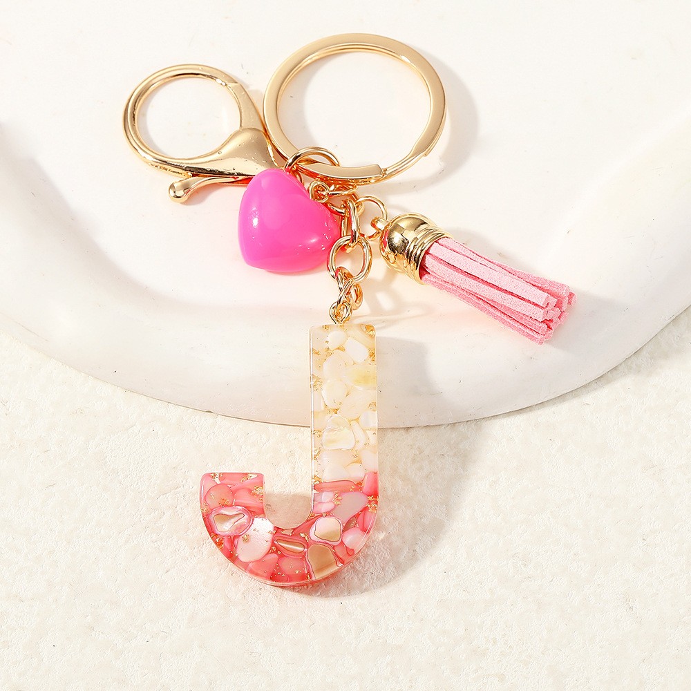 Porte-clés de résine, alliage de zinc, avec résine, Lettre d’alphabet, goutté d'époxy, multifonctionnel & unisexe & modèles différents pour le choix, rose, Vendu par PC