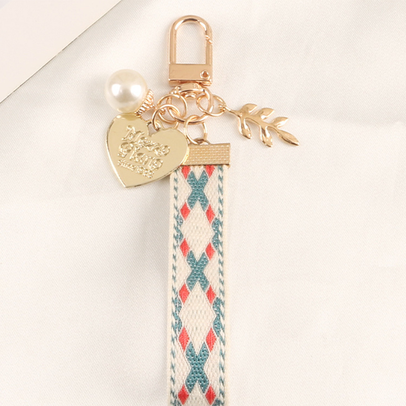 Porte-clés tissu, alliage de zinc, avec tissu & perle de plastique, unisexe & styles différents pour le choix, key clasp length 50-110mm, Vendu par PC