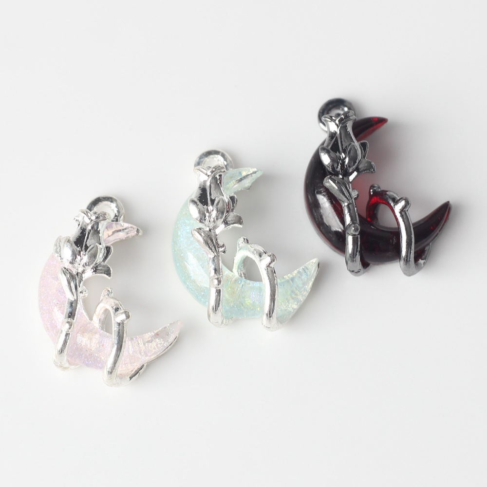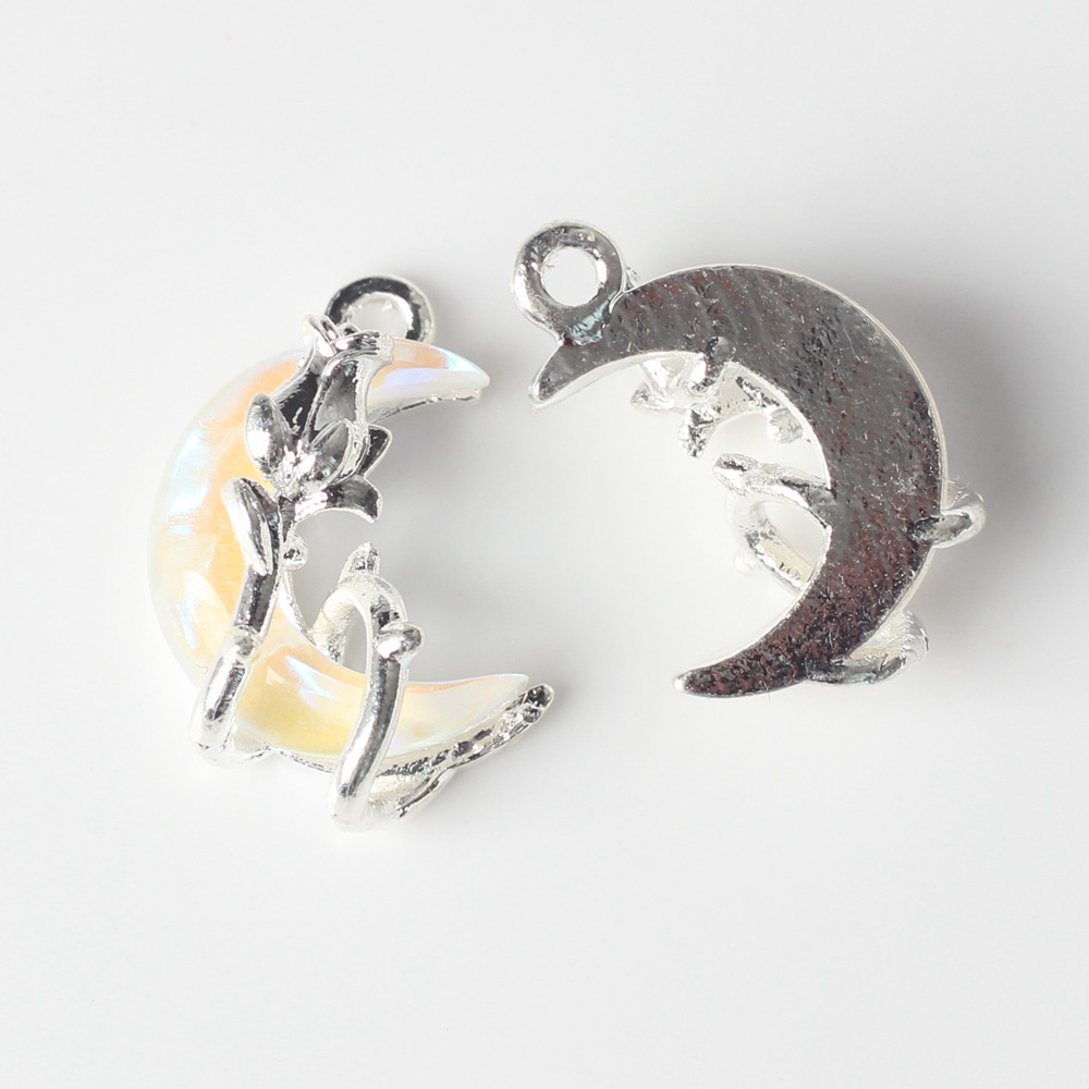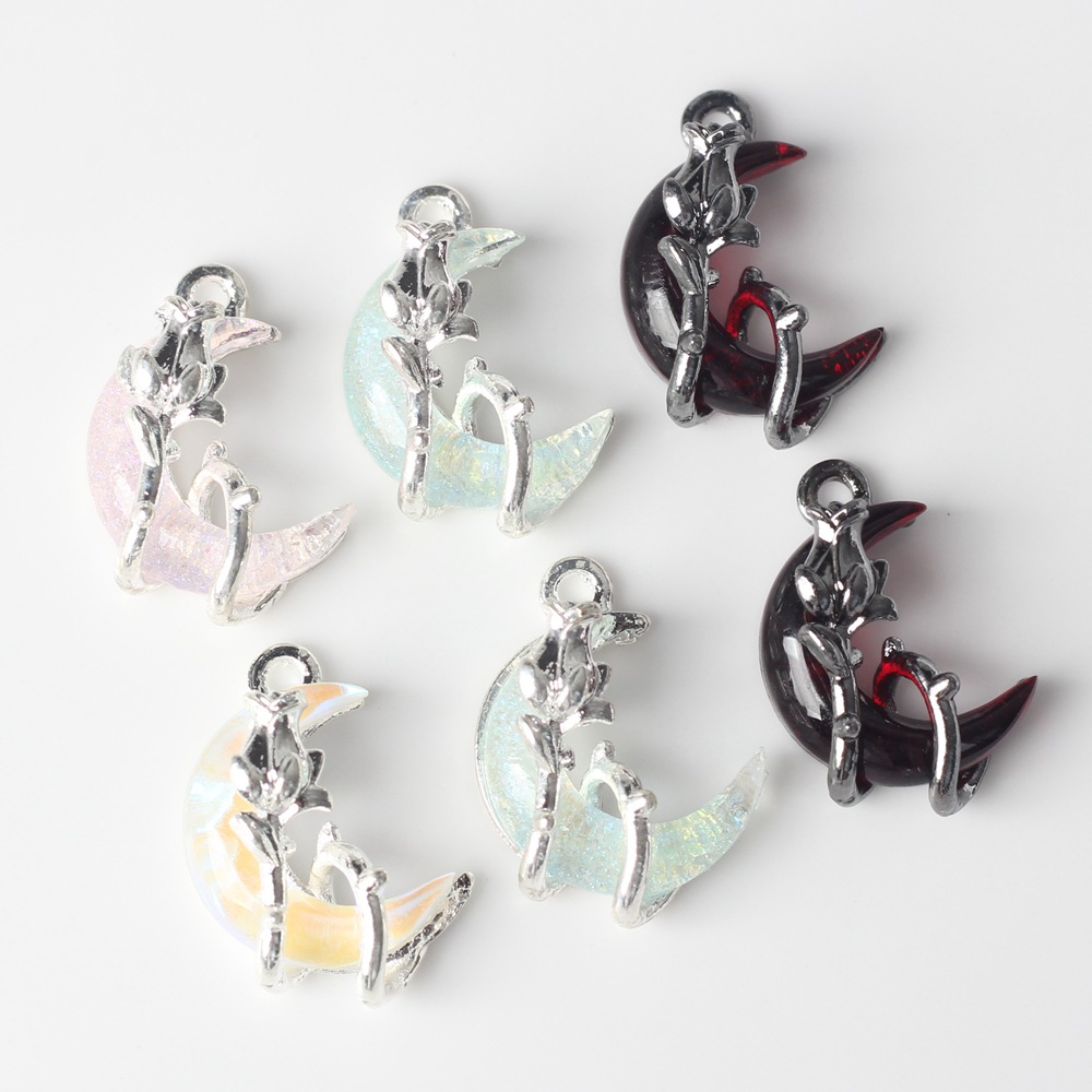 Résine Zinc Alloy pendentifs, alliage de zinc, avec résine, lune, Placage, DIY, plus de couleurs à choisir, 21x14mm, 100PC/sac, Vendu par sac