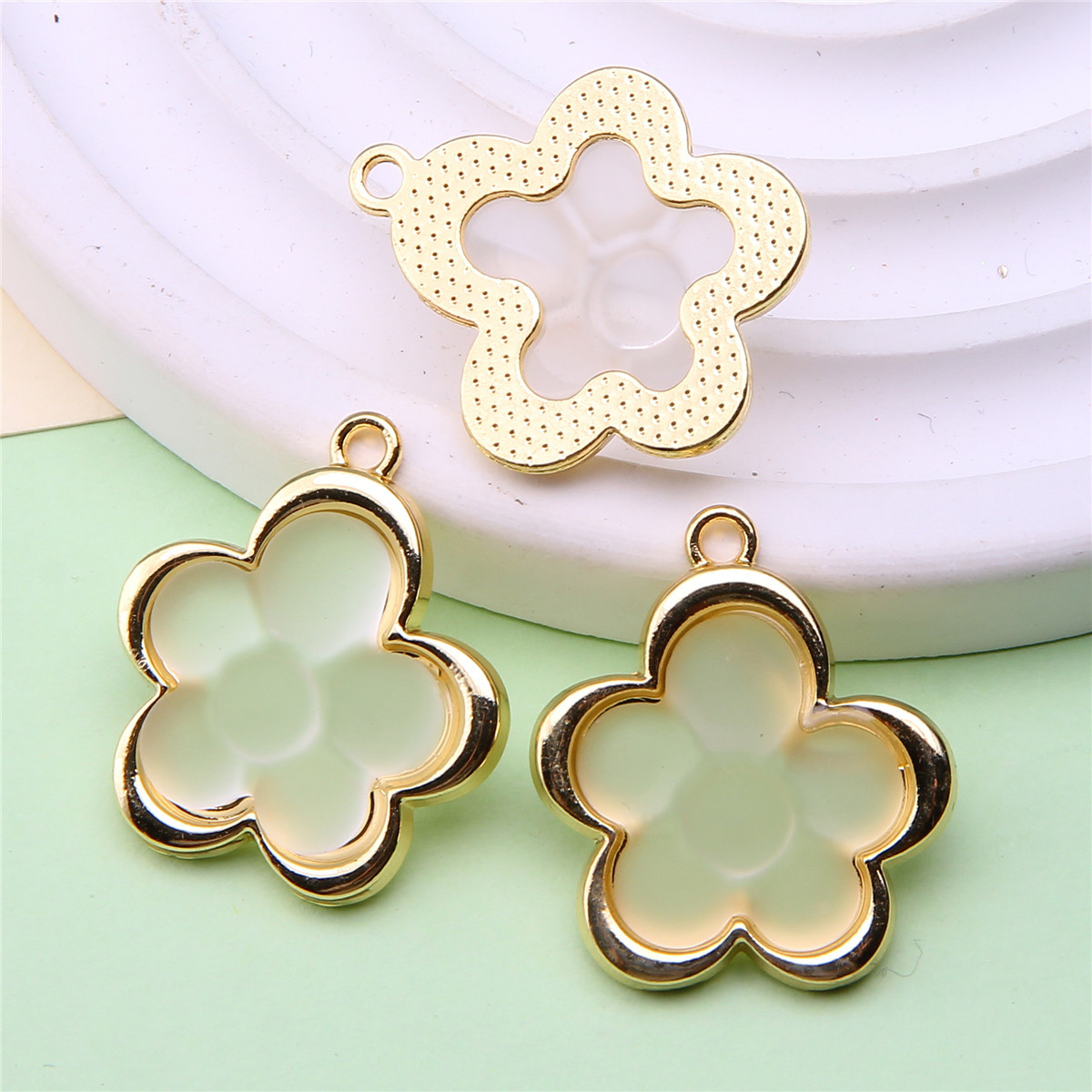 Résine Zinc Alloy pendentifs, alliage de zinc, avec résine, fleur, Placage de couleur d'or, sans plomb et cadmium Environ 1.5mm, Vendu par PC
