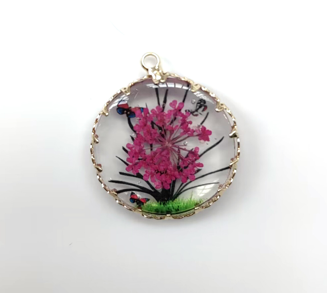 Résine Zinc Alloy pendentifs, alliage de zinc, avec résine, fleur, Placage de couleur d'or, sans plomb et cadmium Environ 1.5mm, Vendu par PC