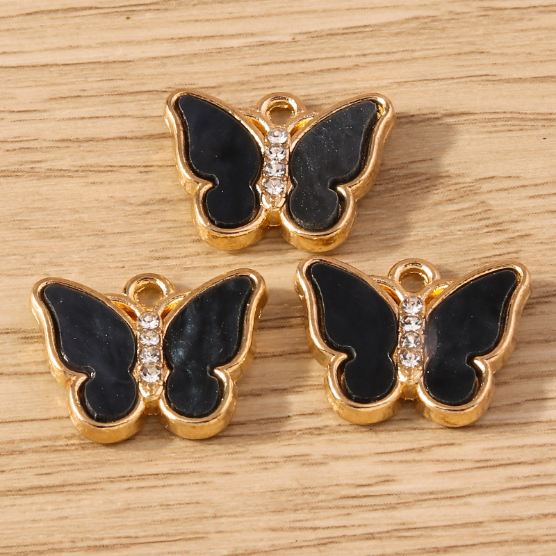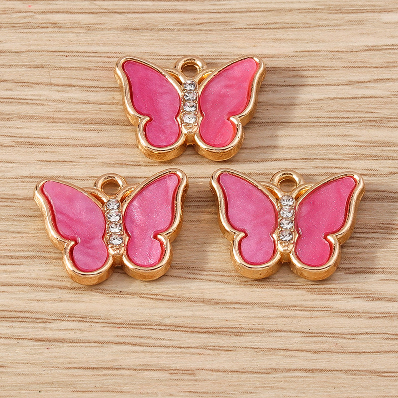 Résine Zinc Alloy pendentifs, avec alliage de zinc, papillon, Placage de couleur d'or, DIY & avec strass, plus de couleurs à choisir, 18x14mm, 10PC/sac, Vendu par sac