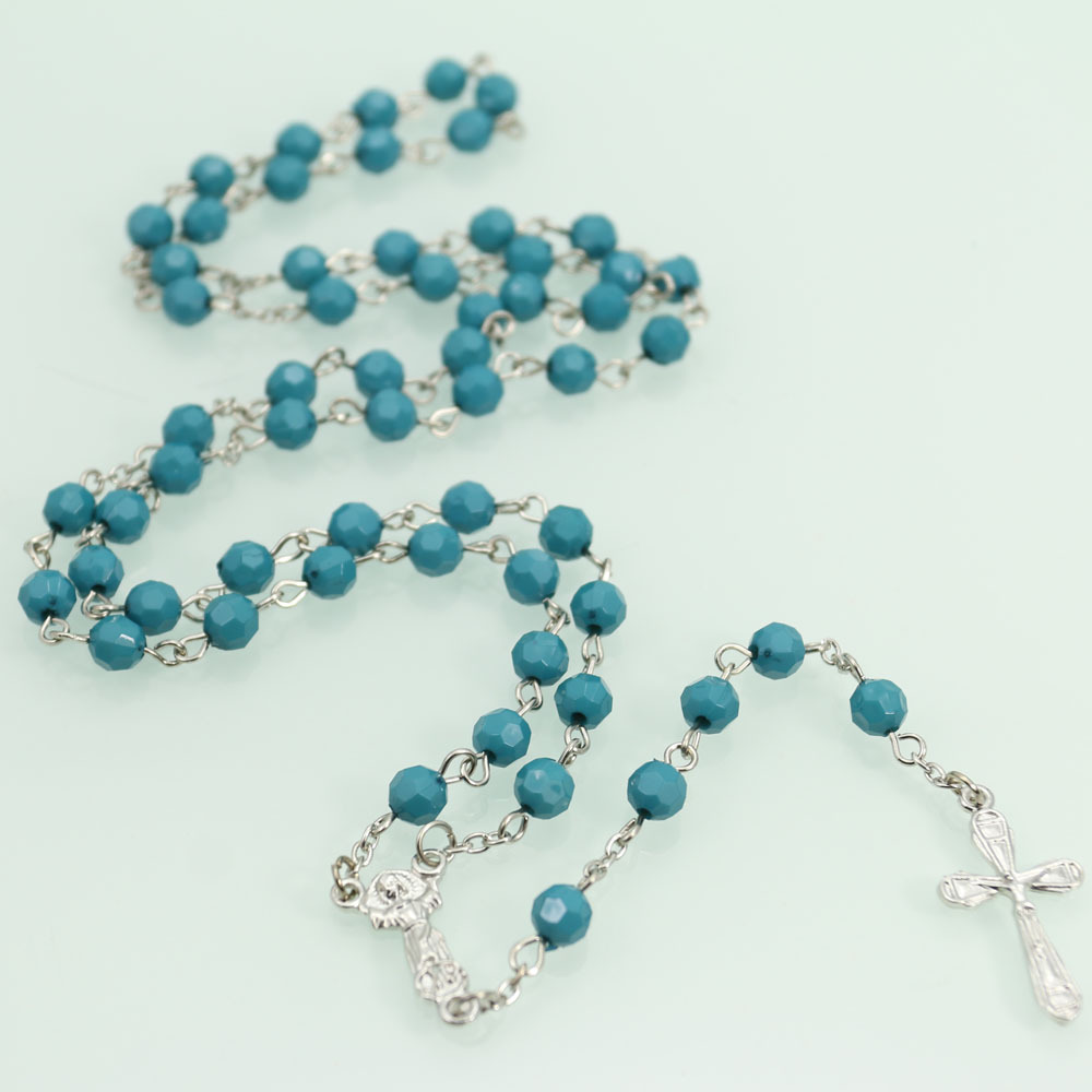 Rosary Necklace, perle de verre, avec alliage de zinc, croix, Plaqué de couleur d'argent, bijoux Christian & pour homme, protéger l'environnement, sans nickel, plomb et cadmium, 8mm Environ 27.6 pouce, Vendu par brin