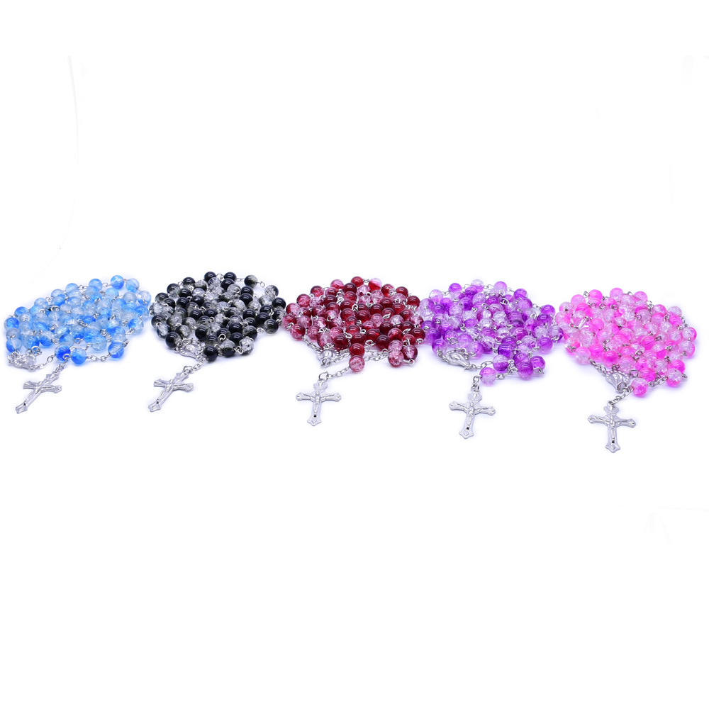 Rosary Necklace, alliage de zinc, avec verre, croix, Placage de couleur argentée, bijoux de mode, plus de couleurs à choisir, 8mm, Longueur:57 cm, Vendu par PC