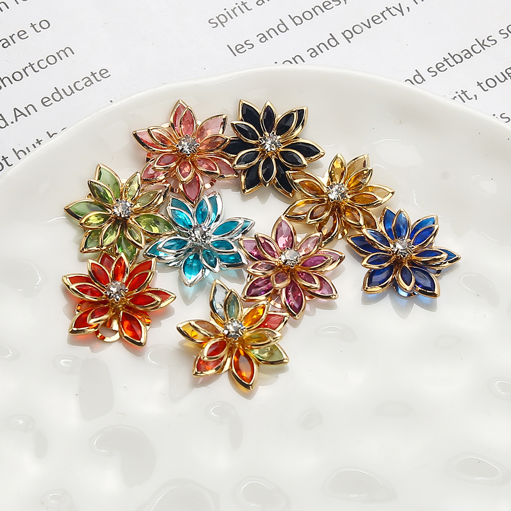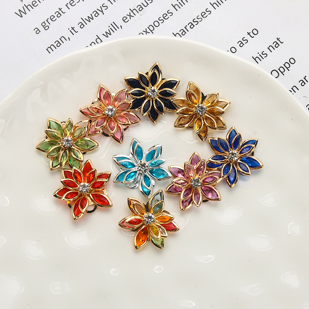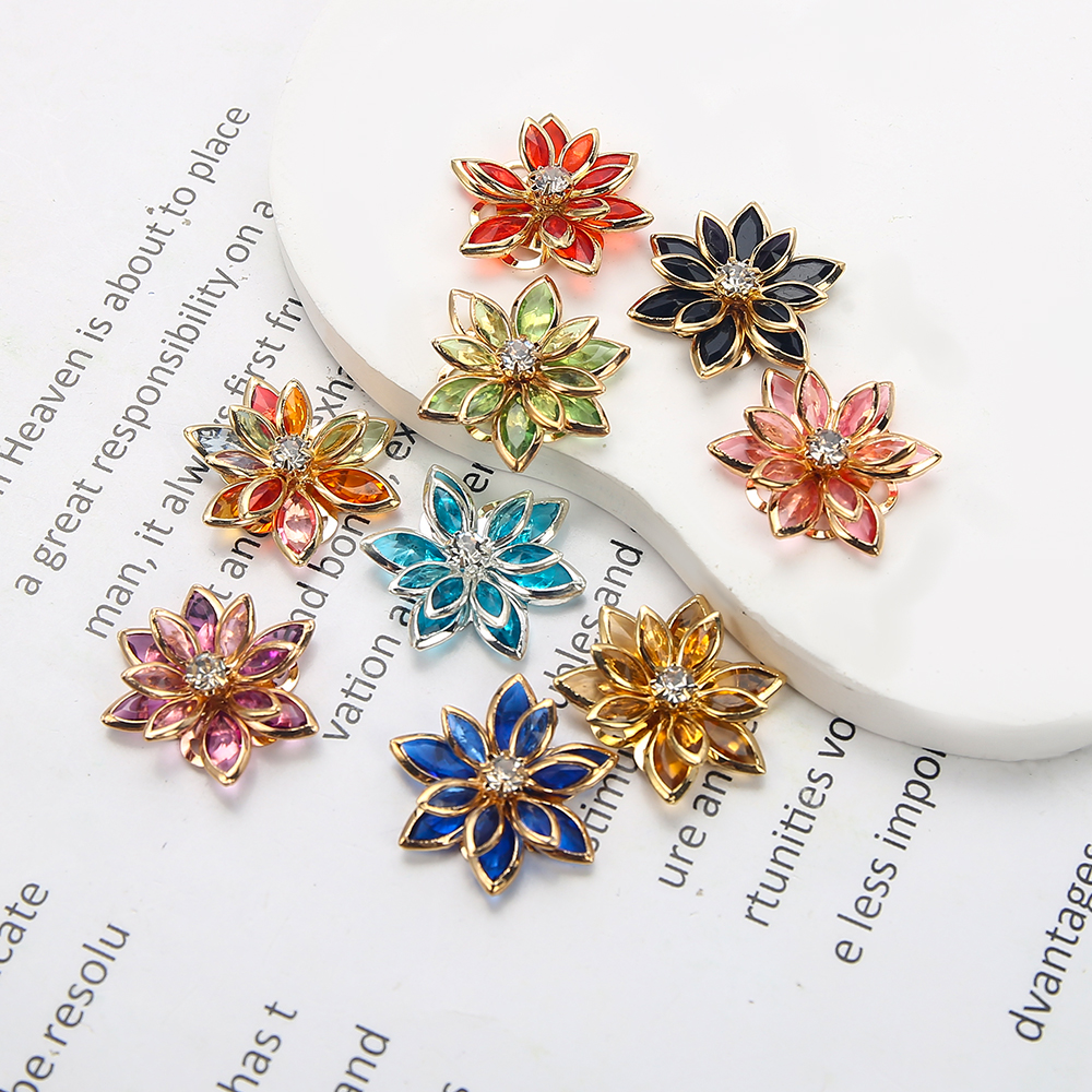 Strass boucle en laiton, fleur, Placage, avec strass, plus de couleurs à choisir Vendu par paire