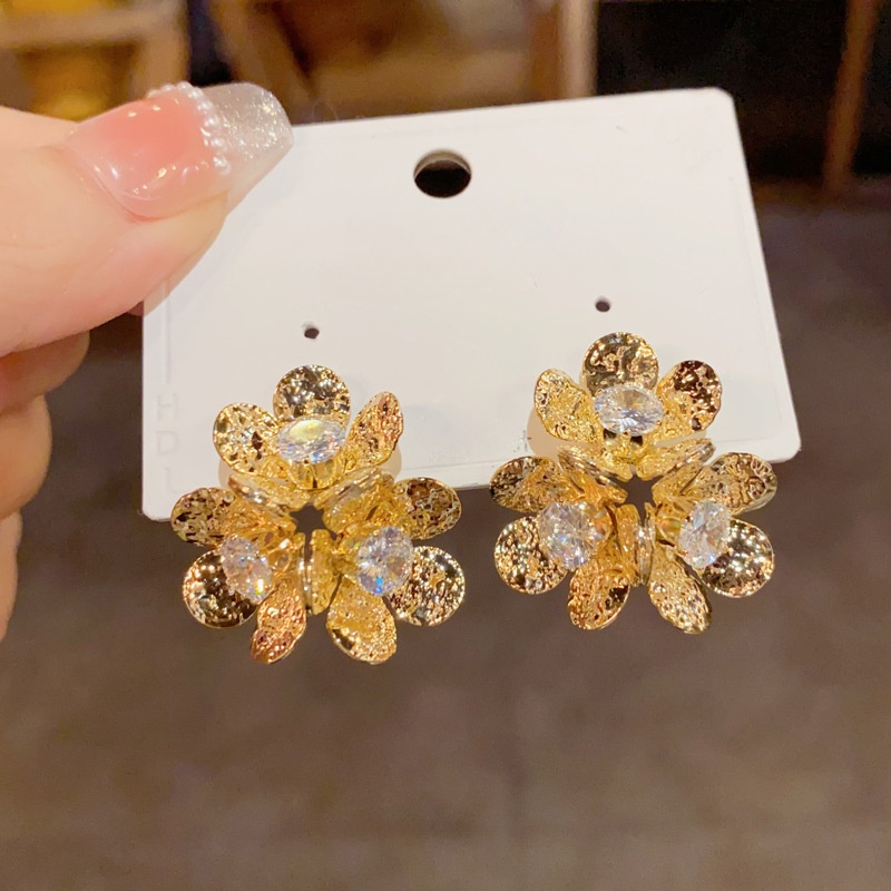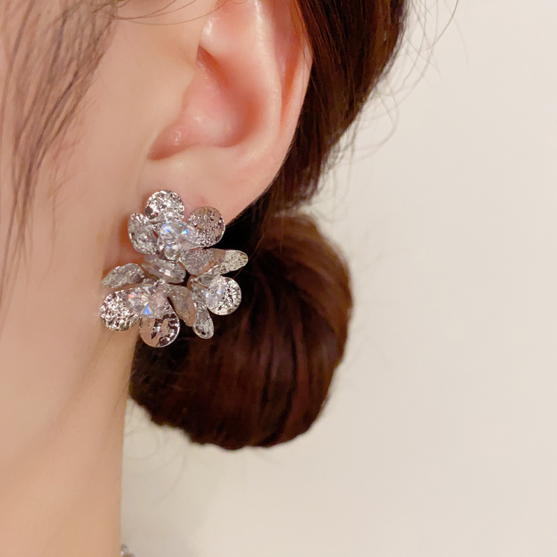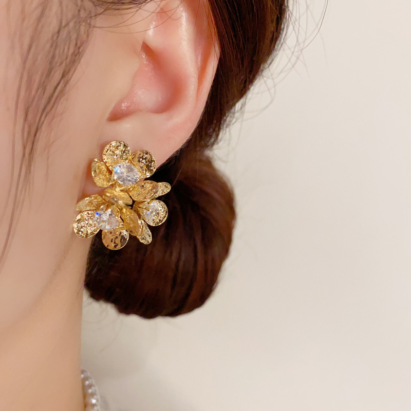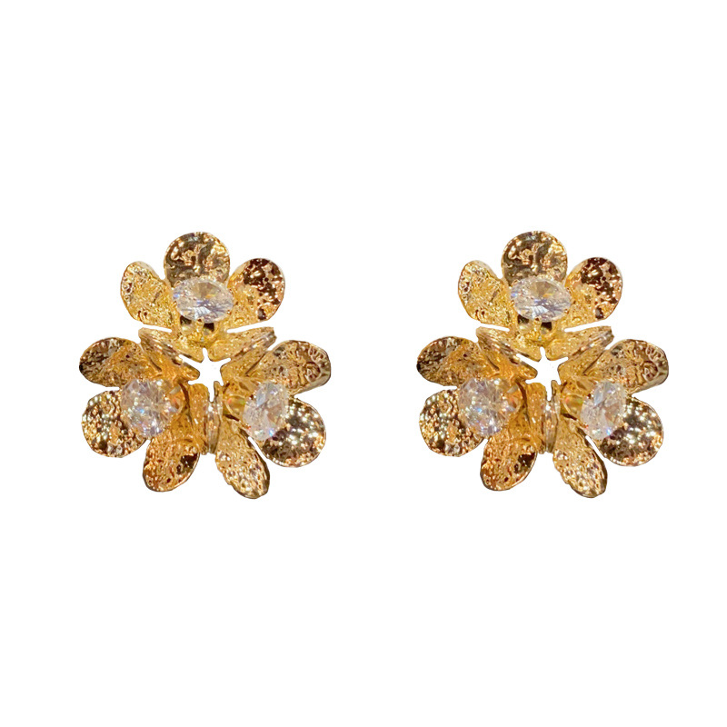 Strass boucle en laiton, Pétales, Placage, bijoux de mode & pour femme & avec strass, plus de couleurs à choisir, 26.6x25.4mm, Vendu par paire