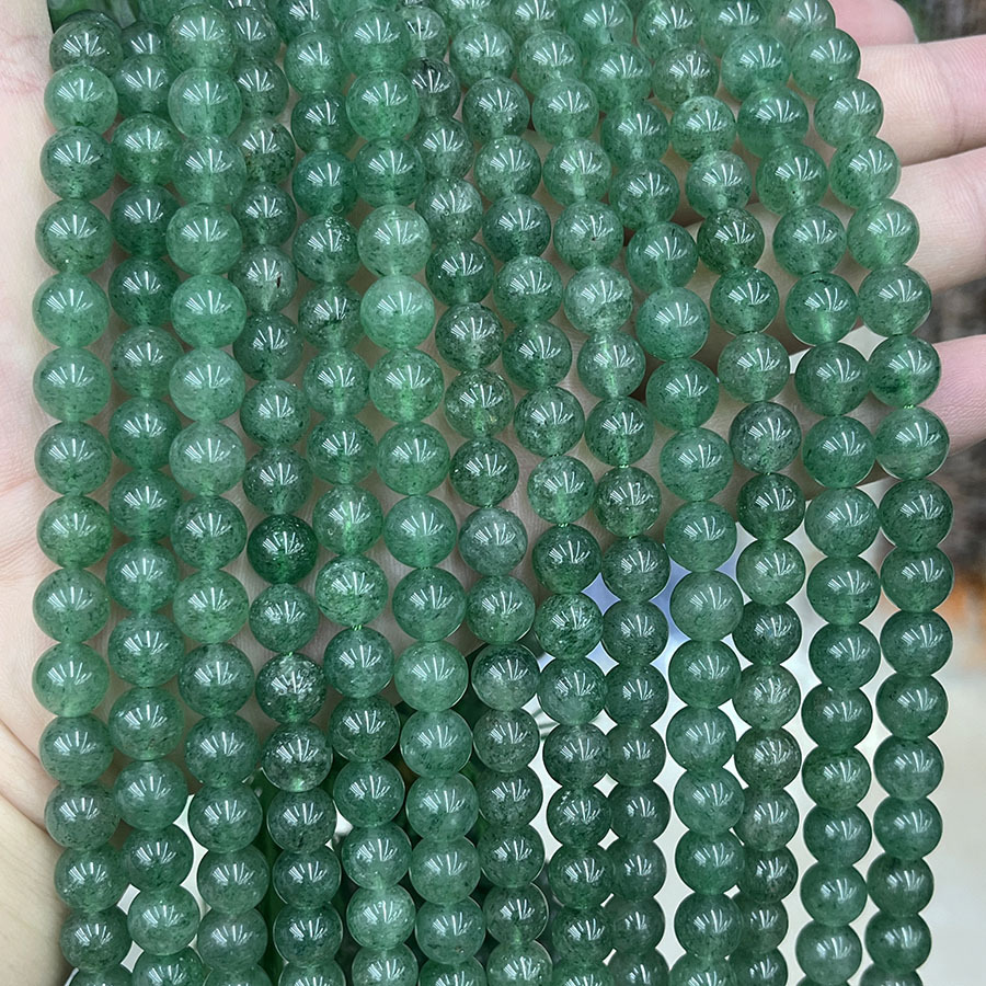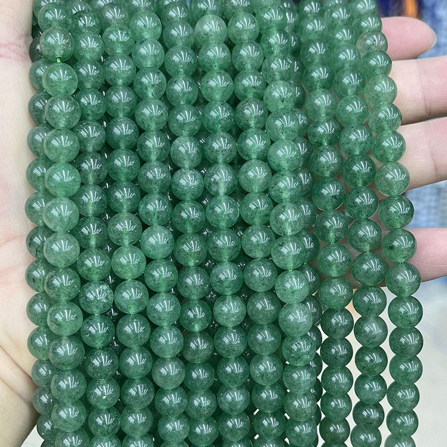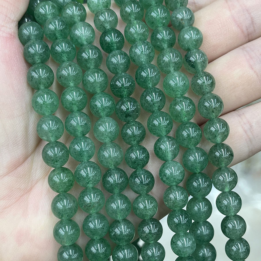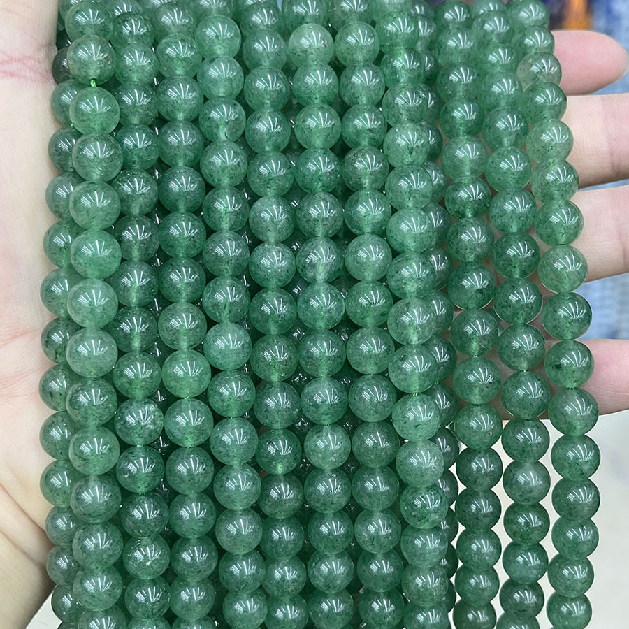 Strawberry Quartz goutte, Rond, DIY, vert, 8mm, Longueur:Environ 38 cm, Vendu par brin