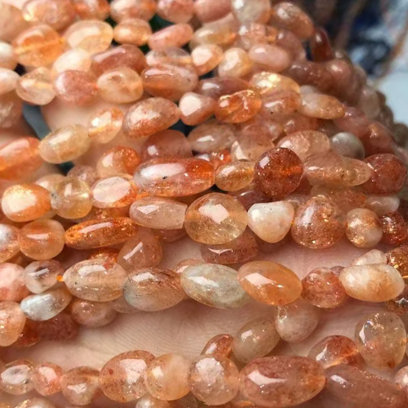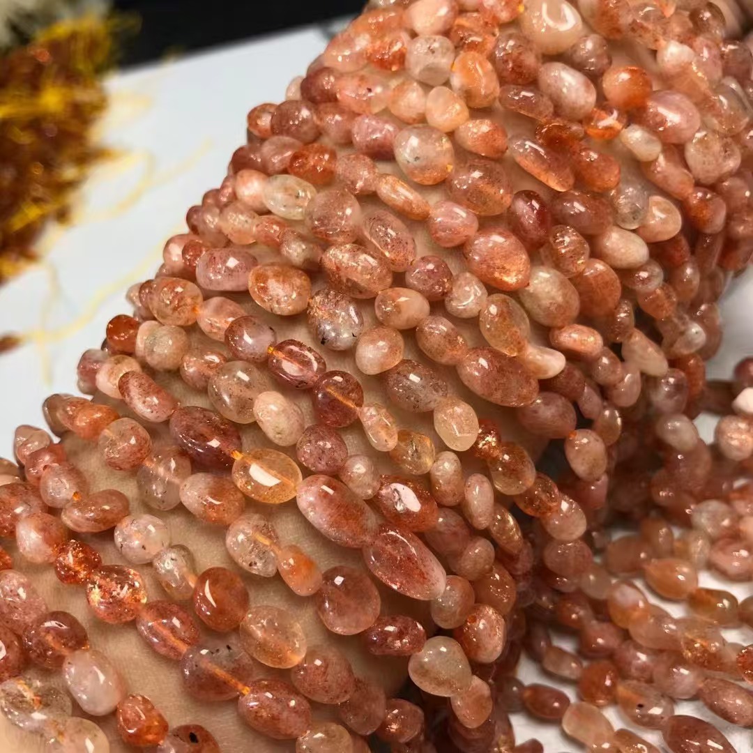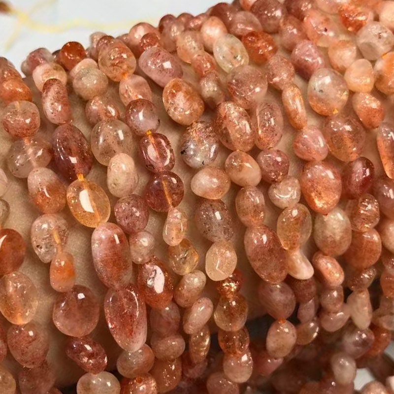 Strawberry Quartz goutte, pepite, naturel & DIY, Or, beads length 8-9mm, Longueur:Environ 35-40 cm, Vendu par brin