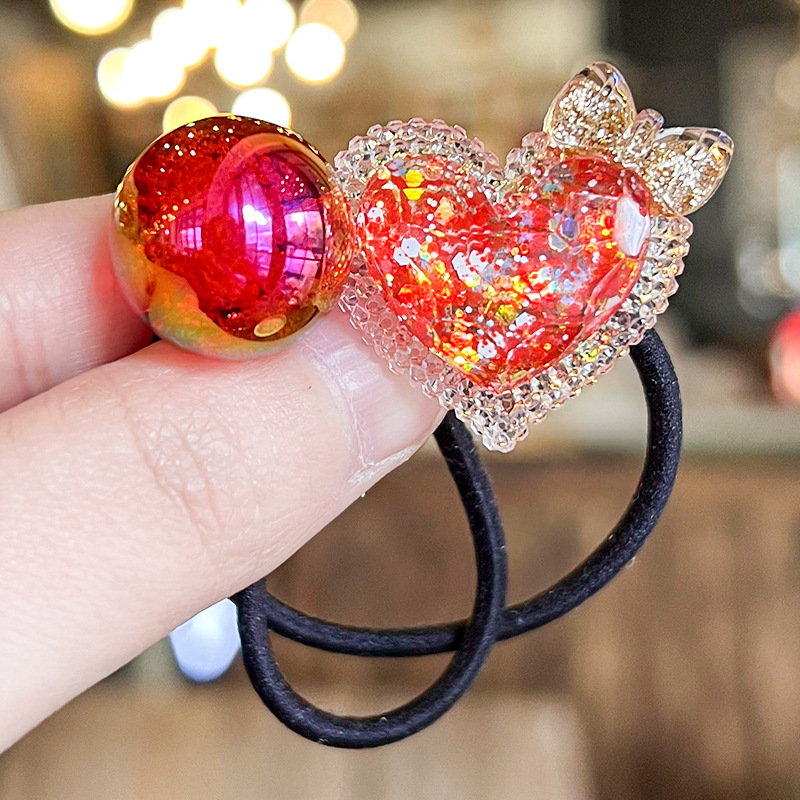 Support de queue de cheval, corde en nylon, avec alliage de zinc, coeur, Placage de couleur d'or, avec strass, couleurs mélangées 6mm Environ 6 pouce, Vendu par PC