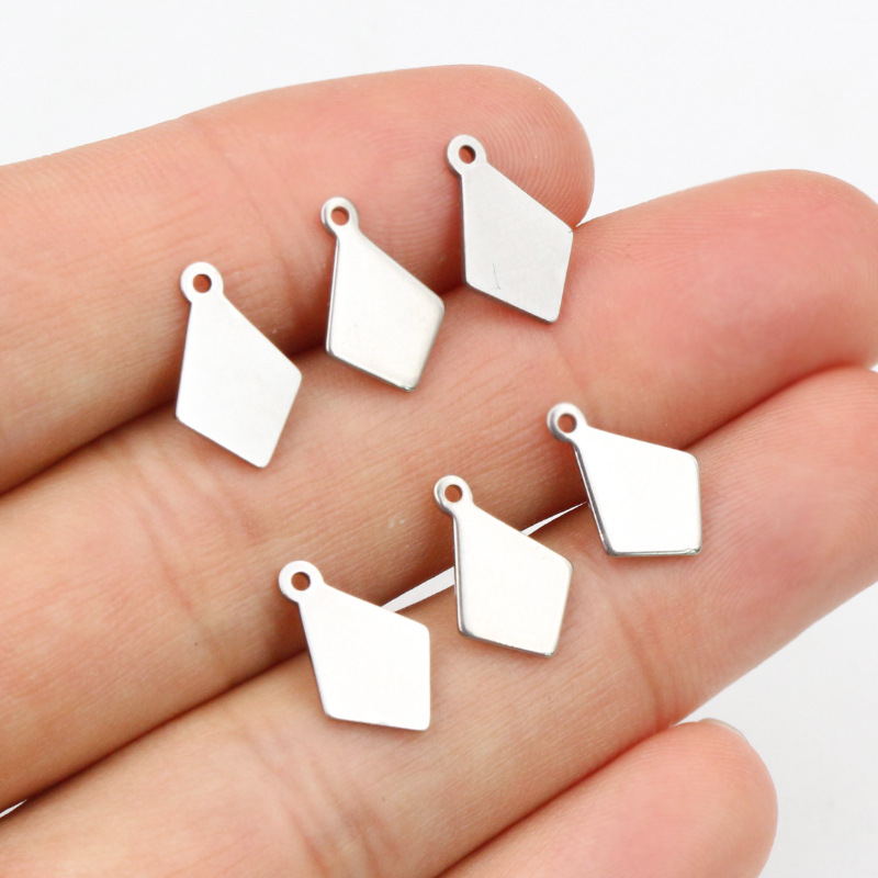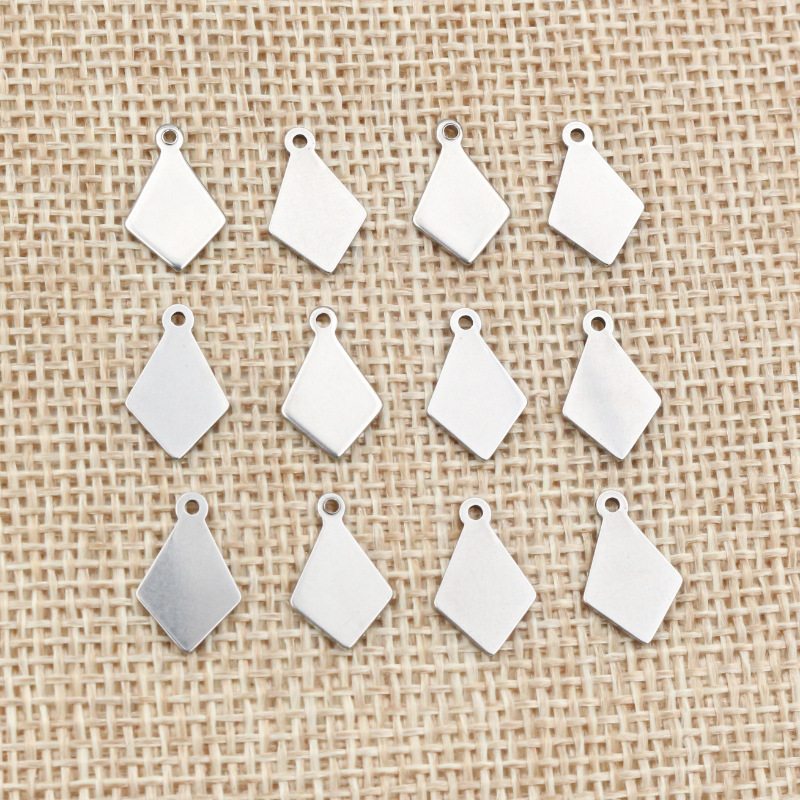 Tag en acier inoxydable, Acier inoxydable 304, Losange, Placage de couleur argentée, DIY, argent, 12x8mm, 100PC/sac, Vendu par sac