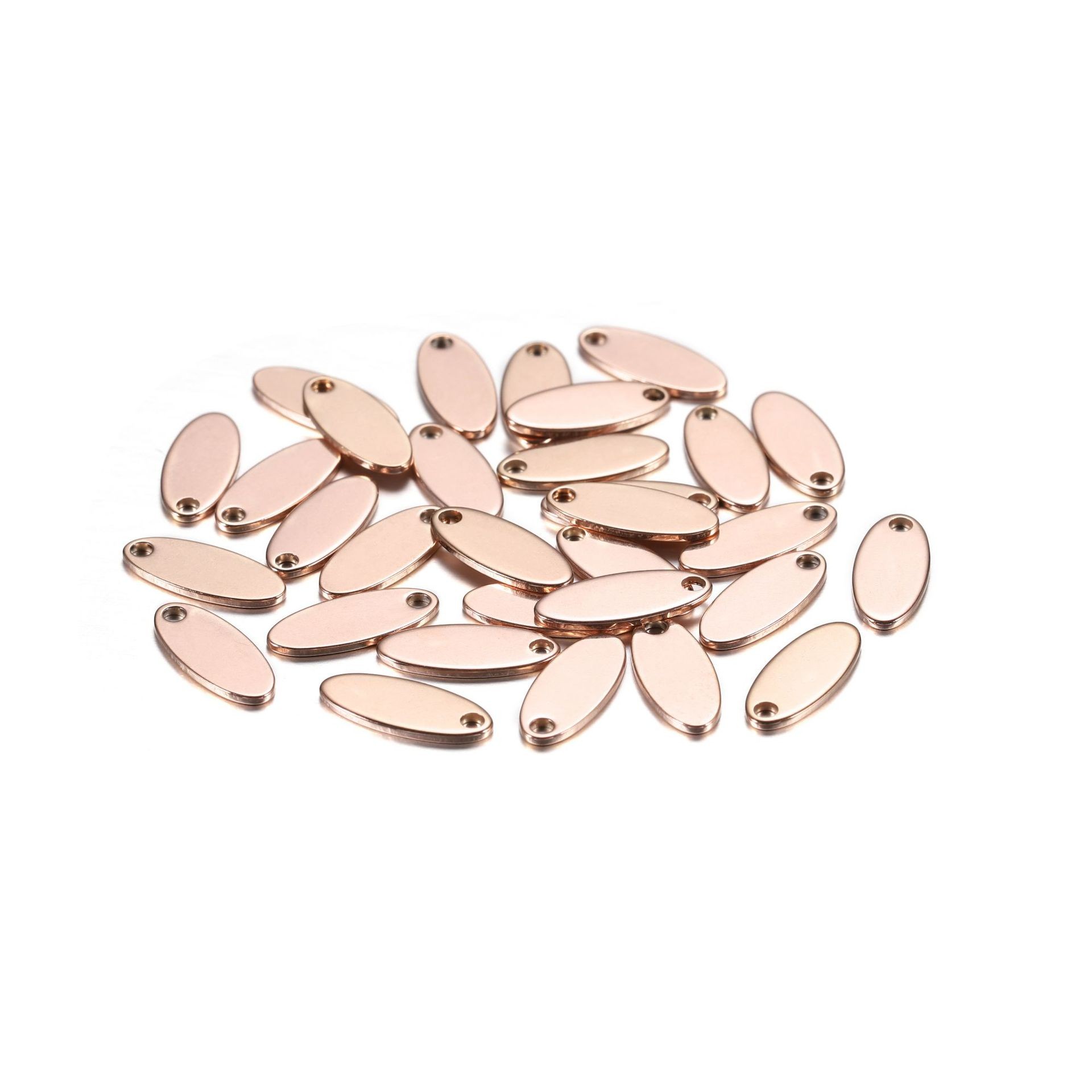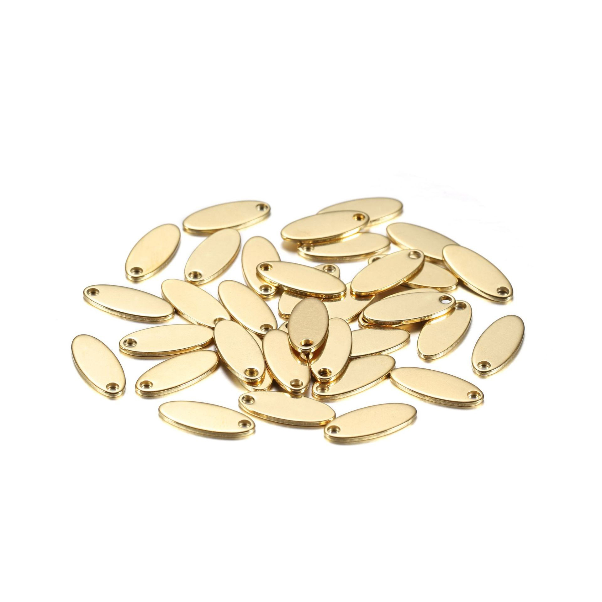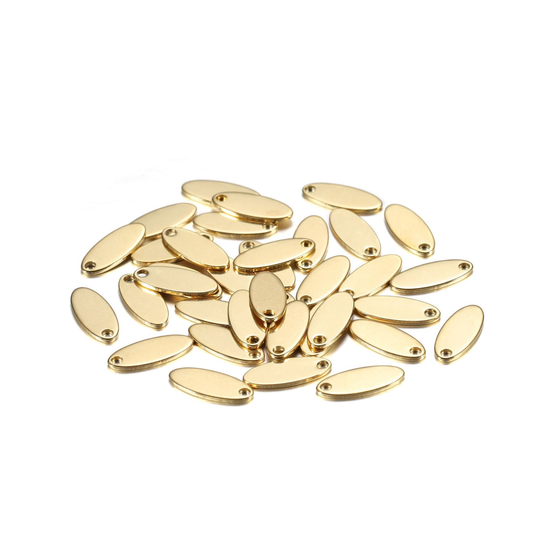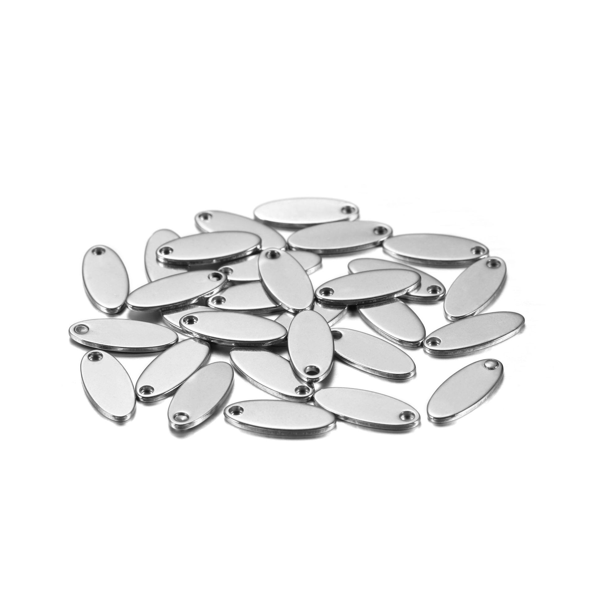 Tag en acier inoxydable, ovale plat, couleur originale Environ 2mm Vendu par sac