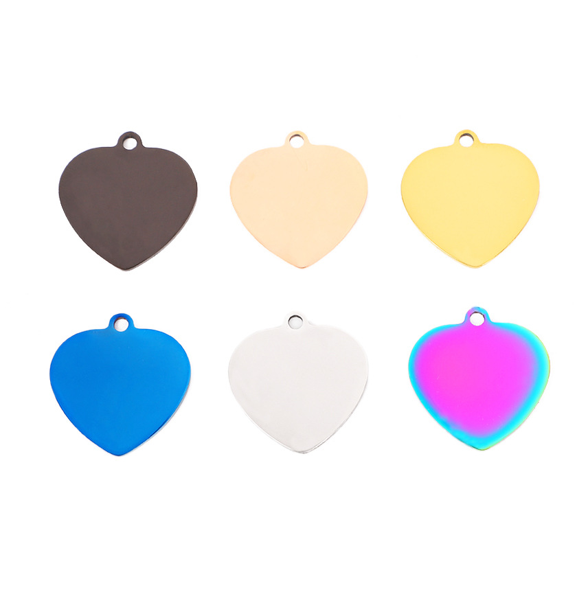 Tag en acier inoxydable, Acier inoxydable 304, coeur, Placage ionique sous vide, DIY, plus de couleurs à choisir, 25x26mm, Vendu par PC
